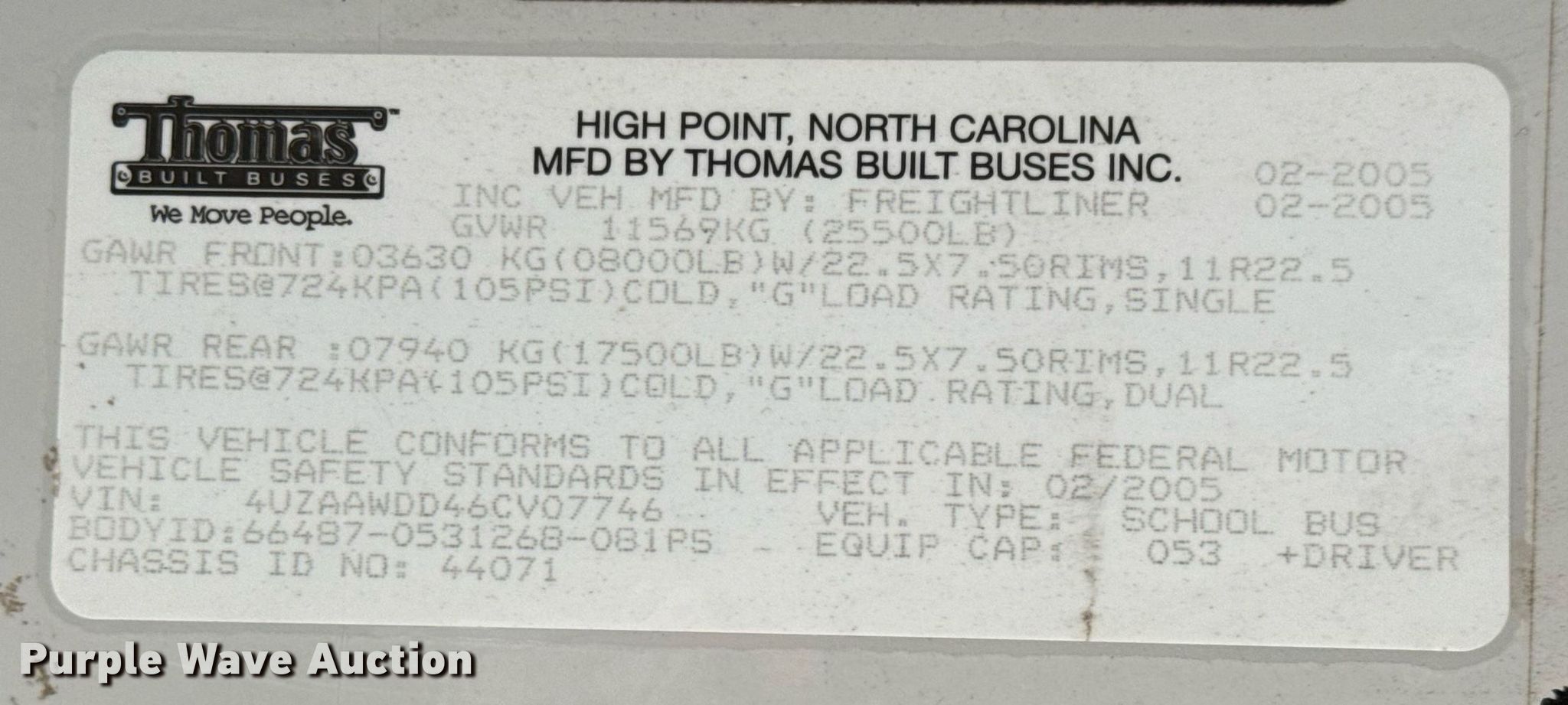 Take a look at this used 2006 Thomas Built school bus being sold on August 19th, 2025 in the SOLD! August 19 Government Auction made by Thomas Built. Take a look at all of the item information below or take a look at similar auctions for Transit Vehicles.