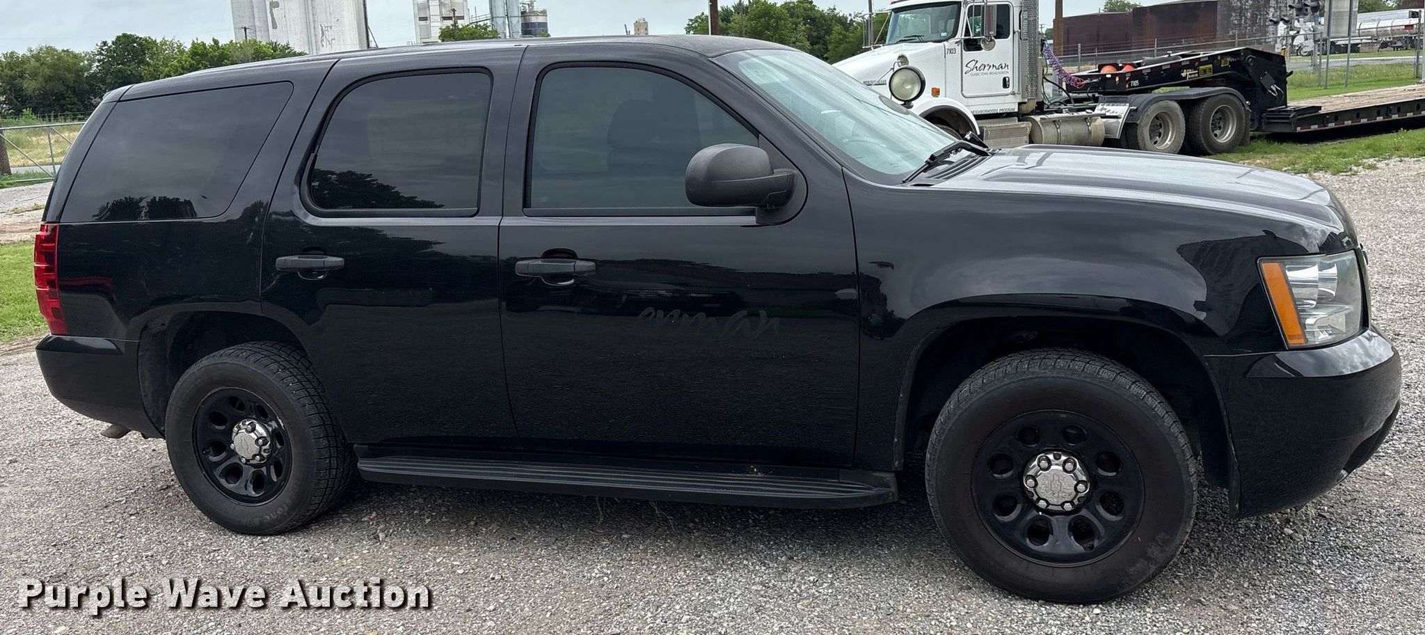 2013 Chevrolet Tahoe Police SUV. Miles: 123,777 on odometer, VIN: 1GNLC2E05DR214726, Unit #: 7100. Engine Displacement: 5.3L V8 OHV, Cylinders: 8, Fuel type: Gas. Transmission Automatic. Interior AC, Heat, Seat: Power driver, Power passenger, Power windows, Power locks, Cruise control. Tires Size: 265/60R17. Notes Drivers side mirror damaged. Texas title. Title distribution may be delayed up to 14 days from verification of funds. City Of Sherman. Sherman, TX 75090