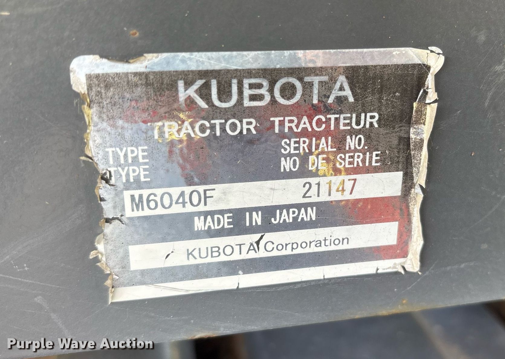 Purple Wave is selling a used Tractor in Texas. This item is a Kubota 6040F tractor with the following: Hours: 2,937 on meter, Actual hours unknown, Serial: 21147