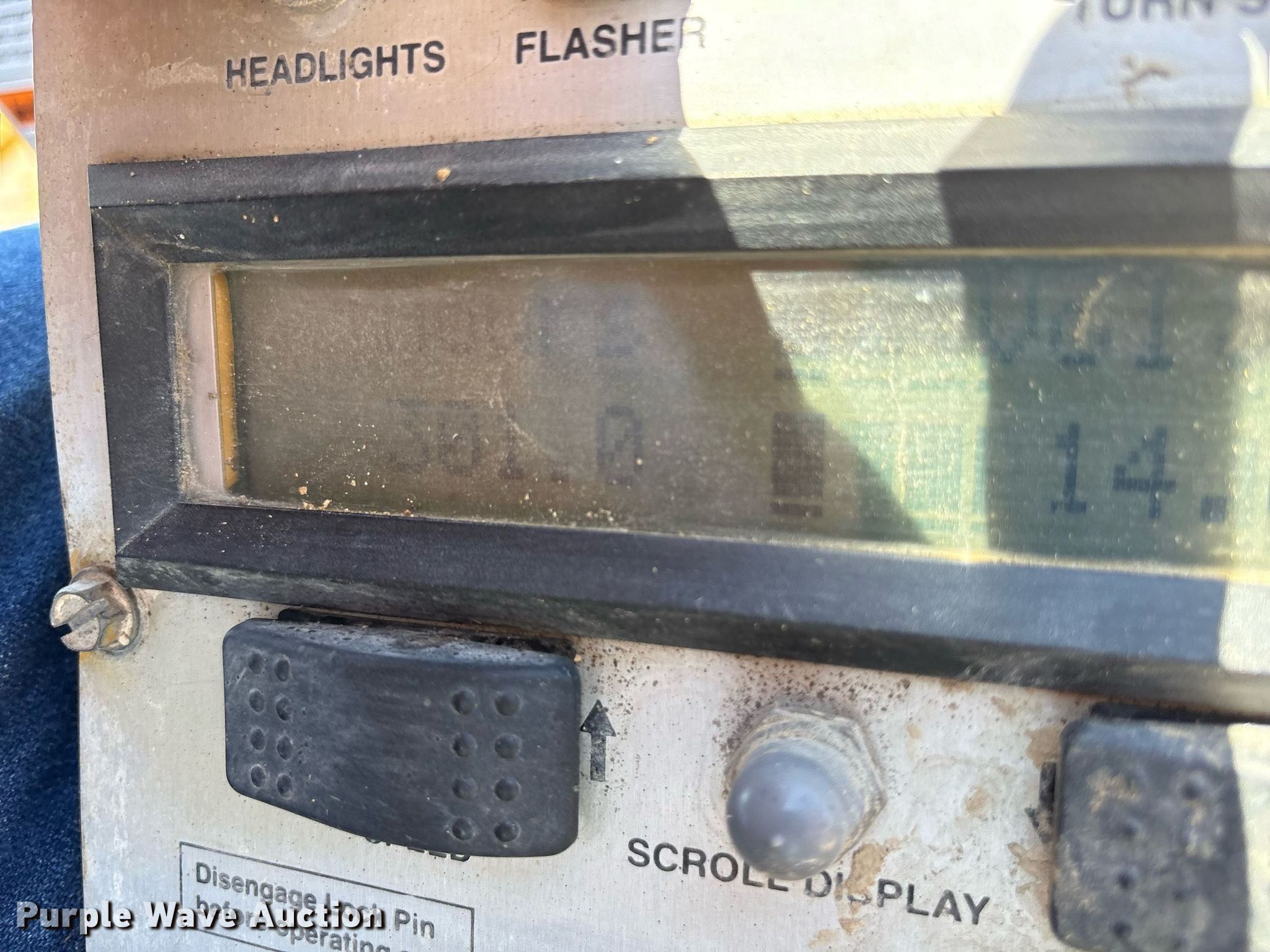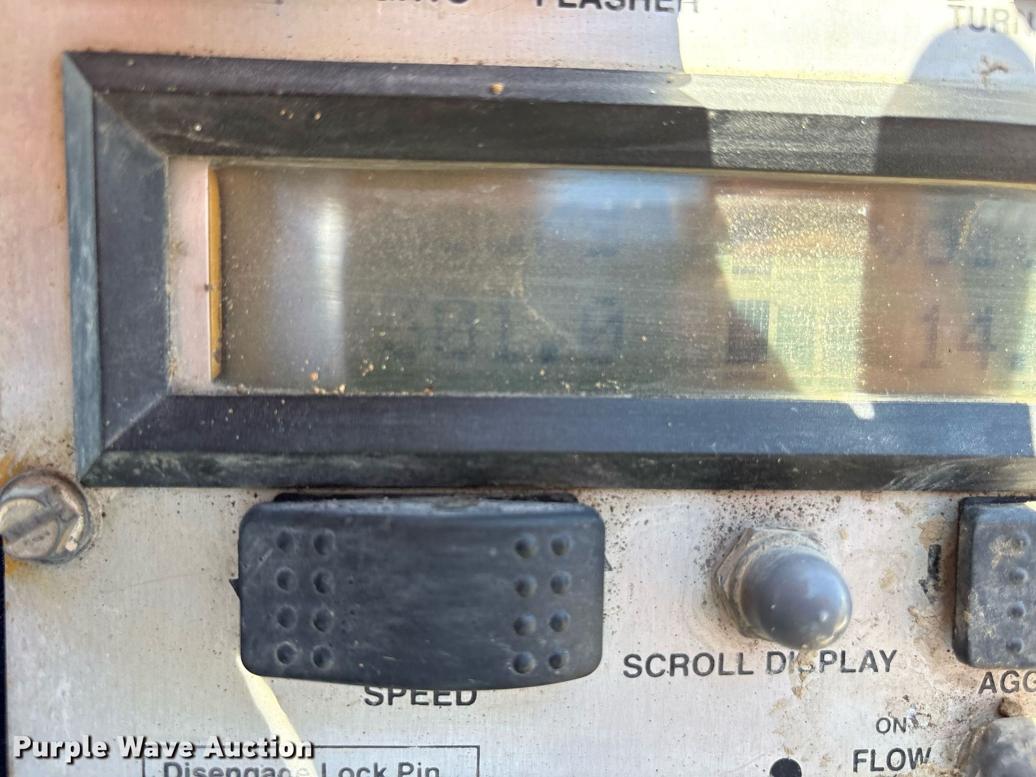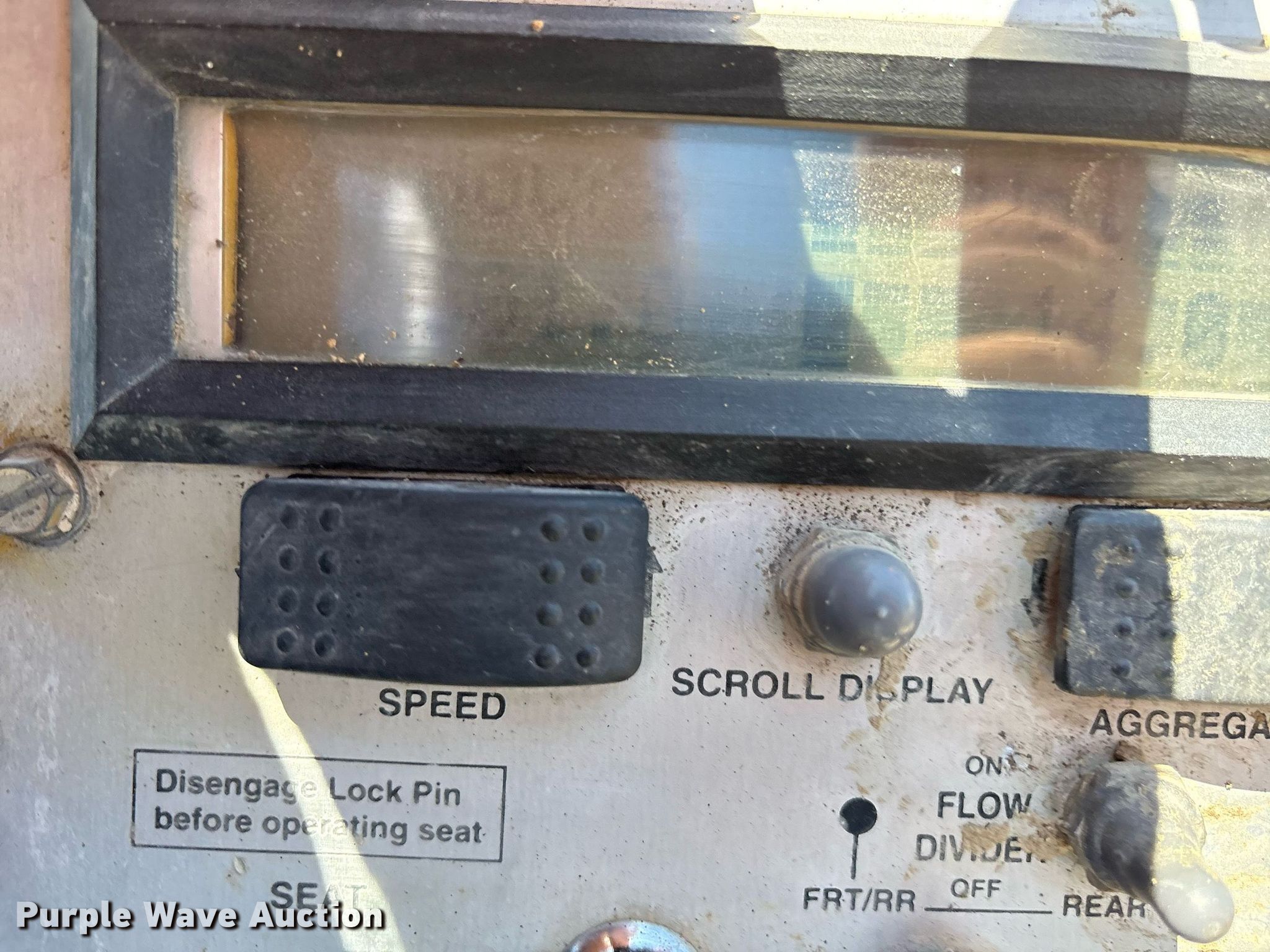 Etnyre chip spreader. Hours: 301 on meter, Serial: K5638, Unit #: D2325-2. Engine Cummins, Displacement: 5.9L, Cylinders: 6, Fuel type: Diesel. Transmission Hydrostatic. Features Paving width: to 14', Front spread hopper width: 14', Material conveyor Width: 16", Truck hitch. Tires Size: 385/65R22.5. Murray County, OK. 1993 Buel Green Road. Sulphur, OK 73086