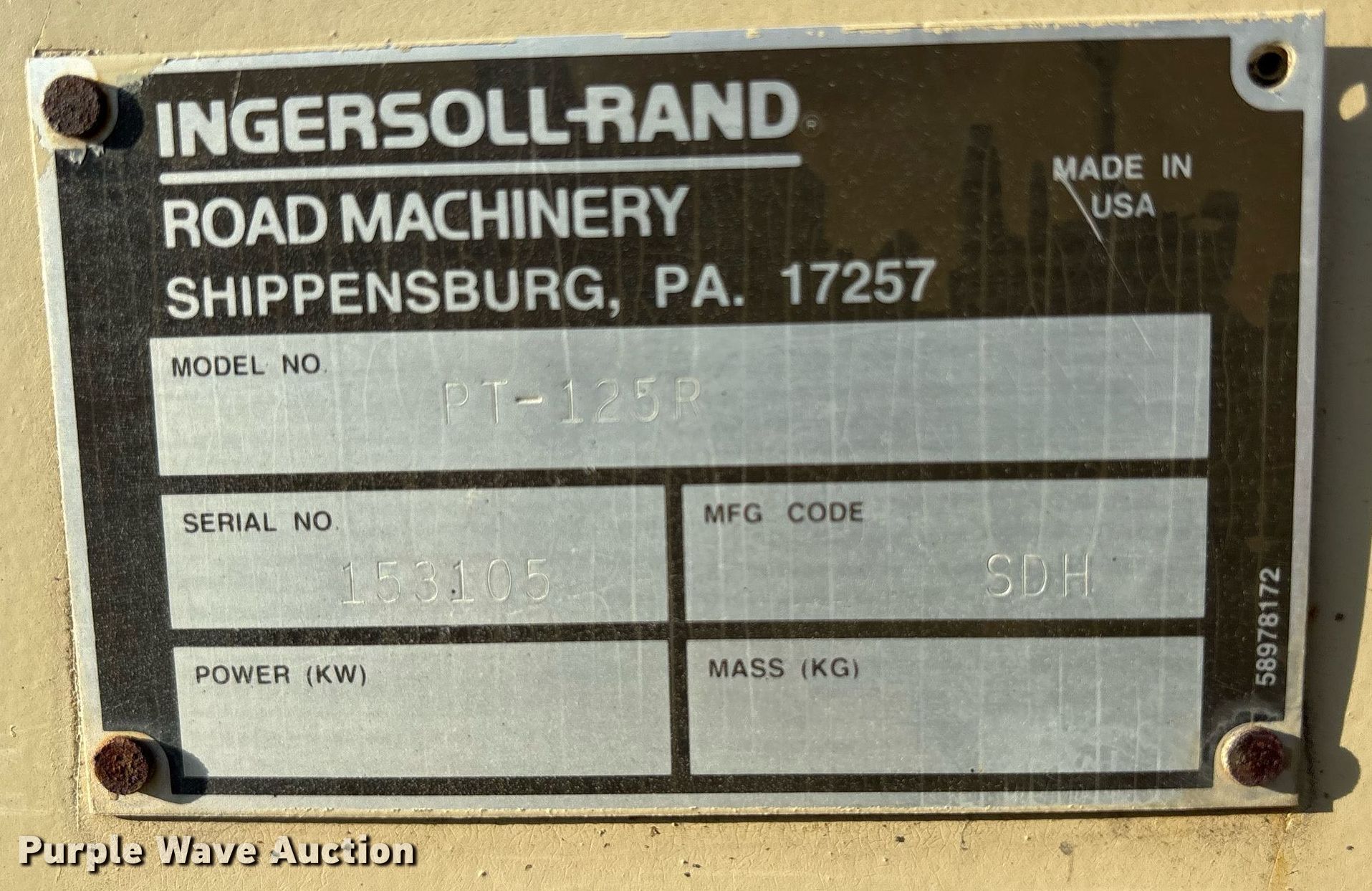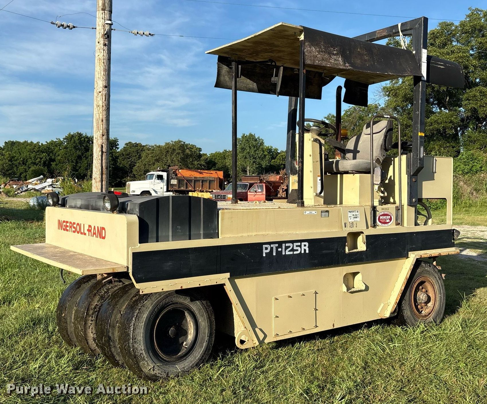 Purple Wave is selling a used Pneumatic Roller in Oklahoma. This item is a 1998 Ingersoll Rand PT-125R pneumatic roller with the following: Hours: 2,327 on meter, Serial: 153105, Unit #: D1-320-3