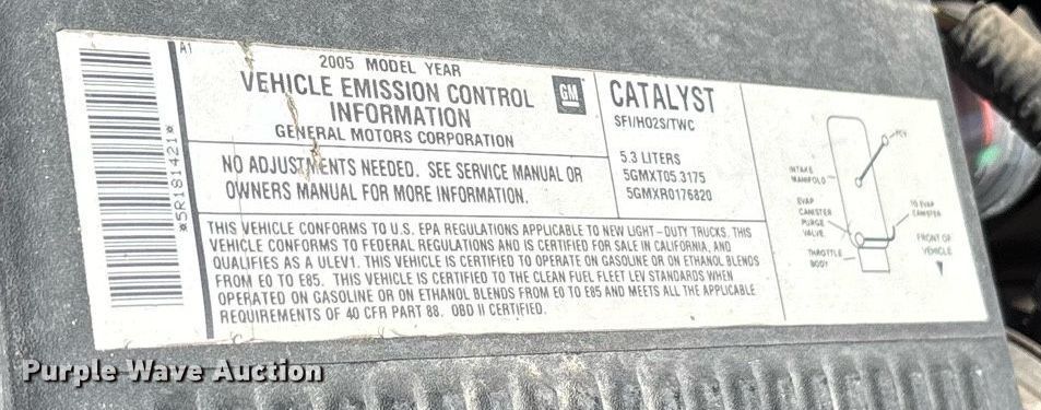 2005 Chevrolet Tahoe SUV. Miles: 188,181 on odometer, Hours: 5,741 on meter, VIN: 1GNEK13Z25R181421. Engine Displacement: 5.3L V8 OHV, Cylinders: 8, Fuel type: Gas. Transmission Automatic, Four wheel drive. Interior AC, Heat, Seat: Power driver, Power windows, Power locks, Cruise control. Tires Size: 265/75R16. Notes Dash warning indicator: TPMS, ABS, Jump start required during on-site data collection. Oklahoma title. Title distribution may be delayed up to 30 days from verification of funds. Murray County, OK. 700 West 10th Street. Sulphur, OK 73086