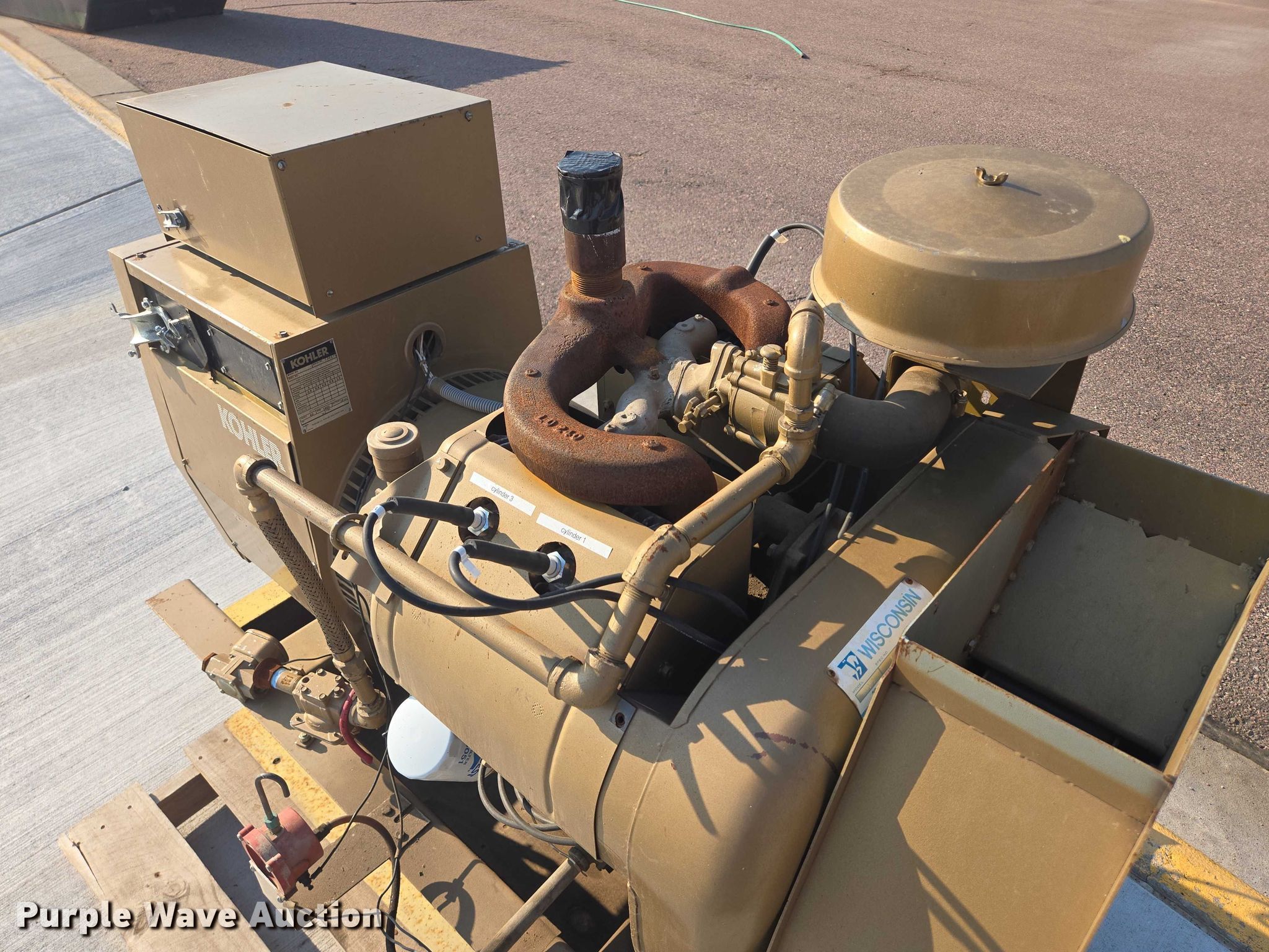 Kohler R Series generator. Hours: 1,234 on meter, Serial: 136575. Engine Wisconsin VG4D, Serial: 6073473, Cylinders: 4, Fuel type: LPG. Features Generator Phase: Three, Electric start, Skid mounted. Mitchell Technical College. Mitchell, SD 57301