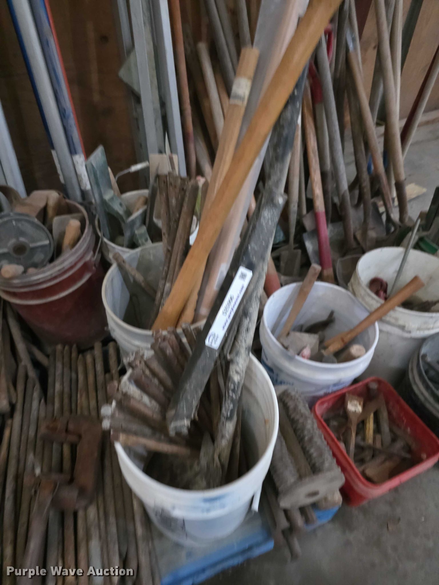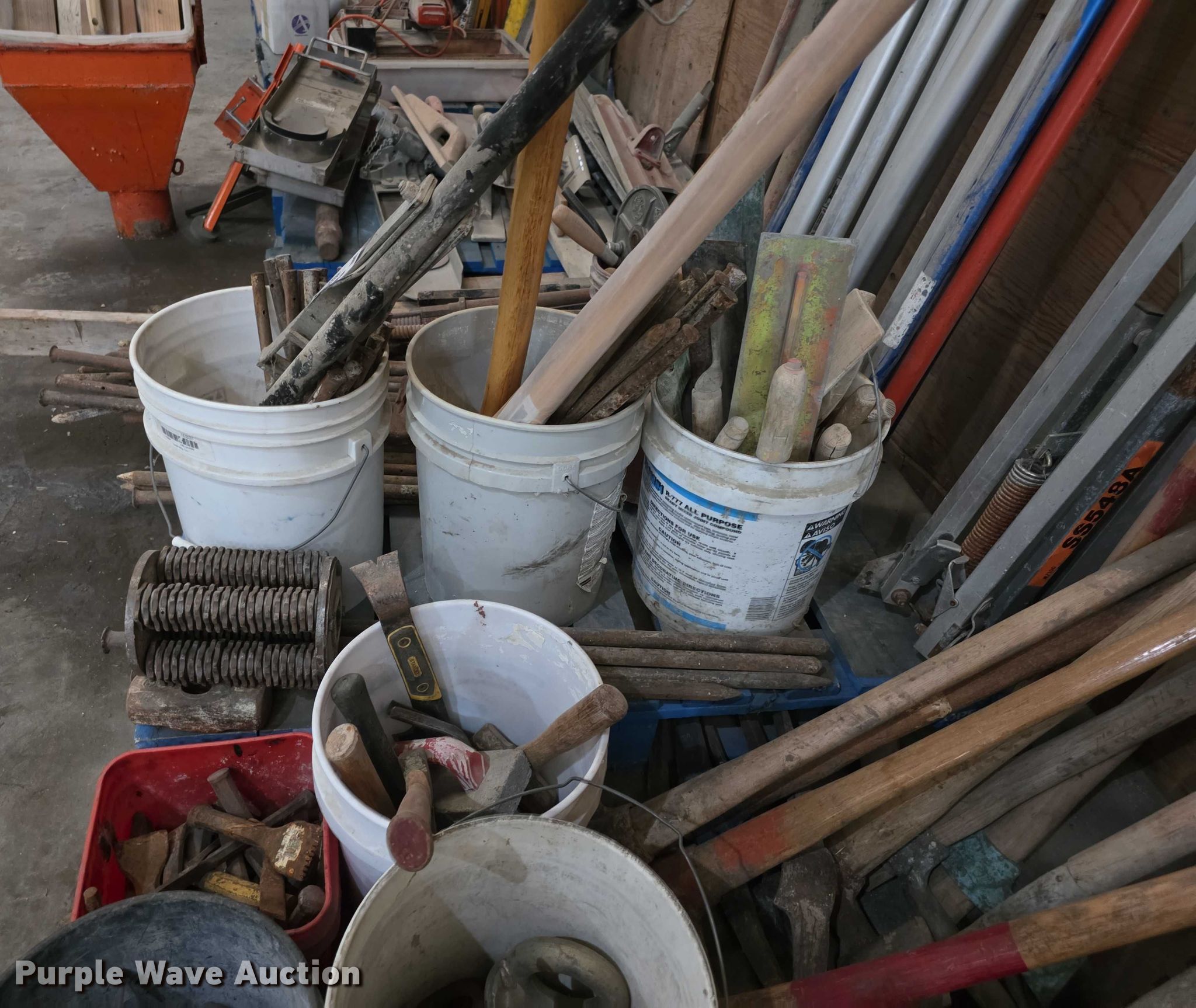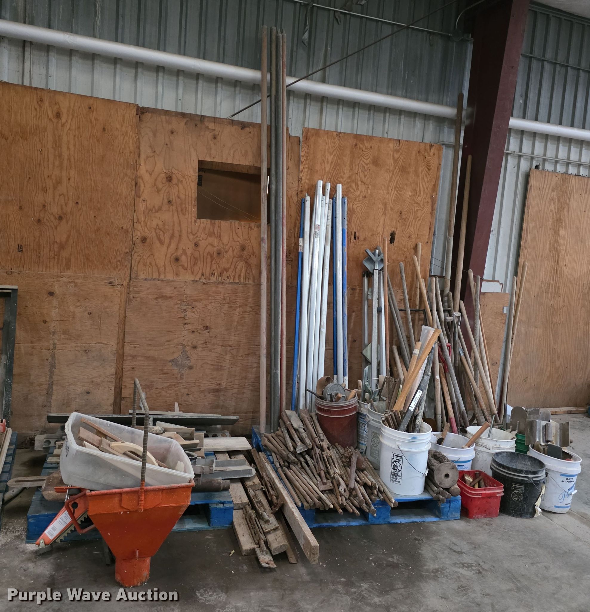 Purple Wave is selling a used Concrete Equip. or Acces. in Kansas. This item is a Concrete tools with the following: Shovels, Paddles, Spikes, Jackhammer bits, Axe handles, Screed blades, Screed handles, Chute and more