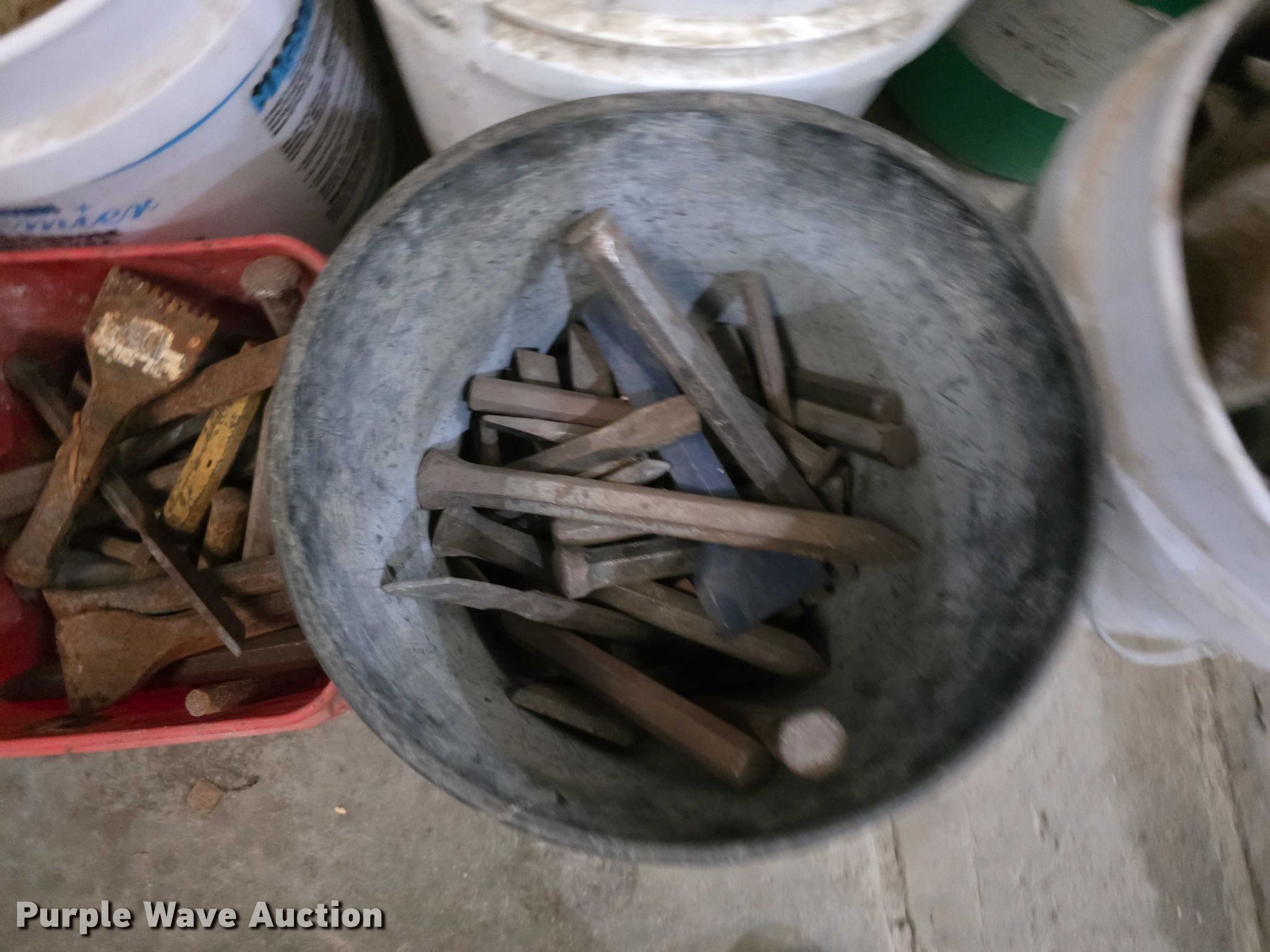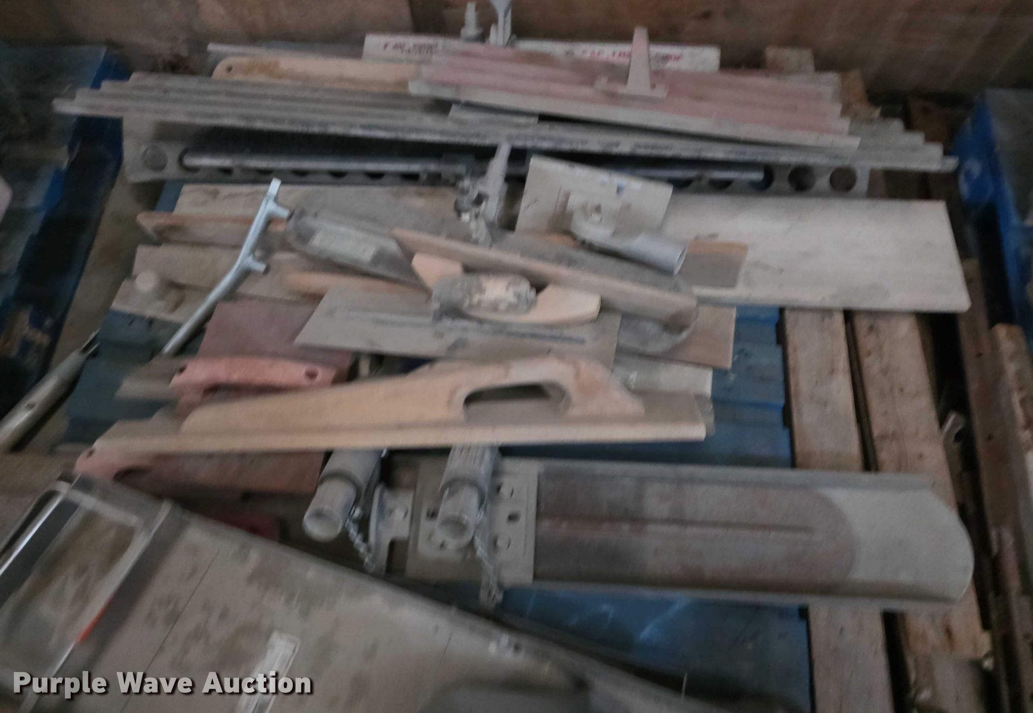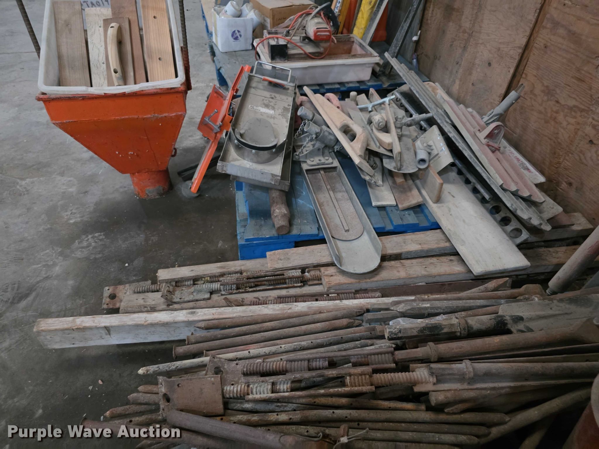 Purple Wave is selling a used Concrete Equip. or Acces. in Kansas. This item is a Concrete tools with the following: Shovels, Paddles, Spikes, Jackhammer bits, Axe handles, Screed blades, Screed handles, Chute and more