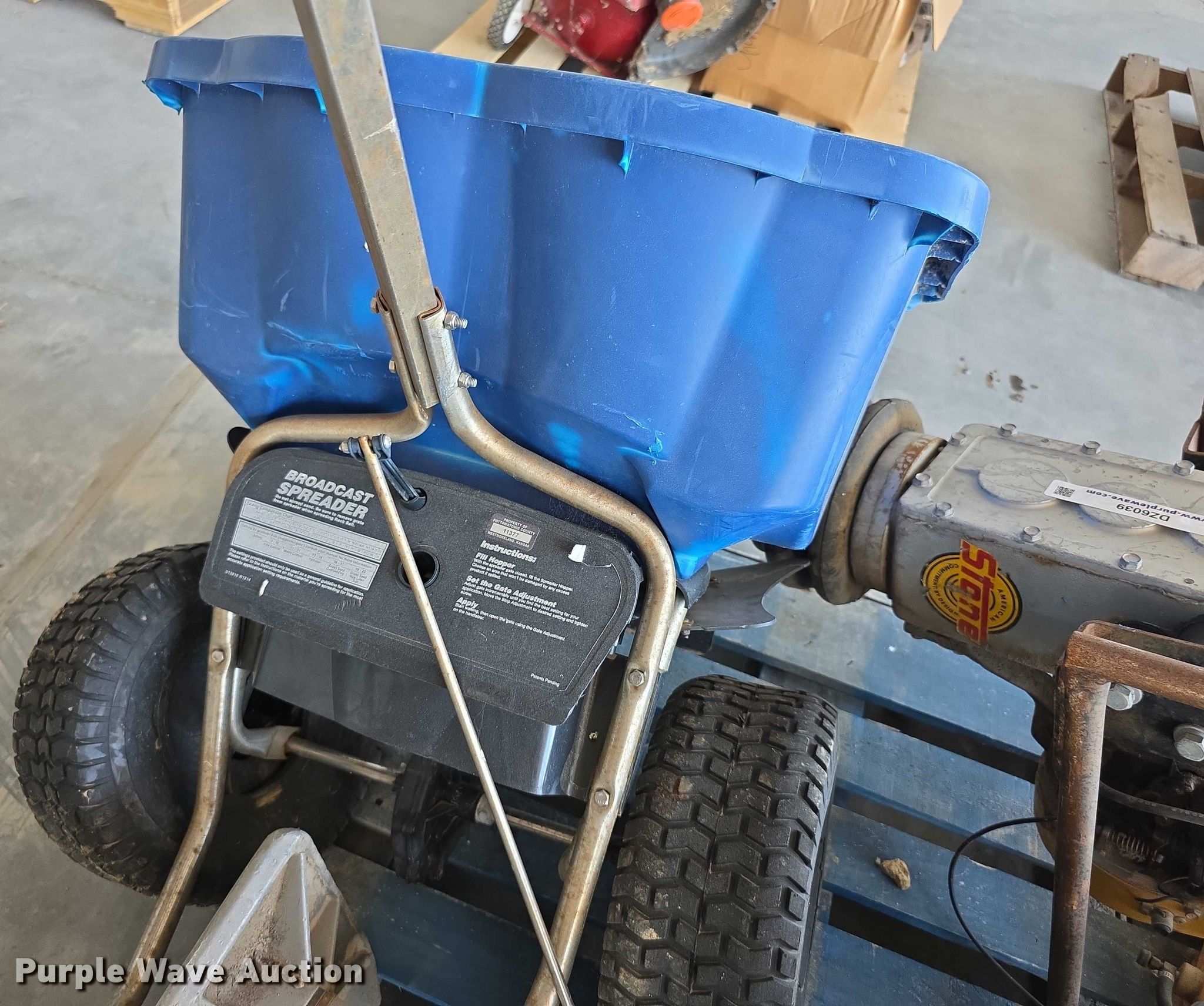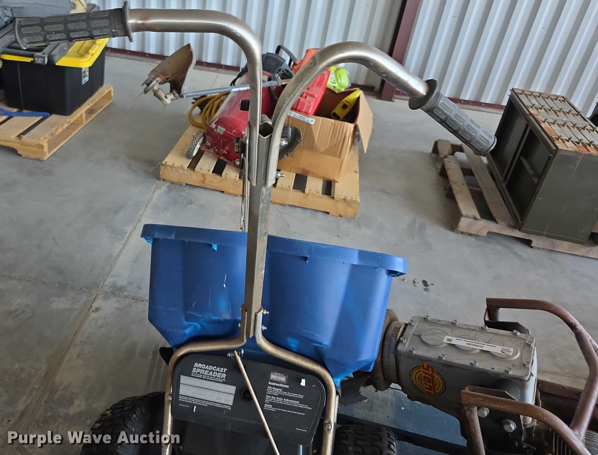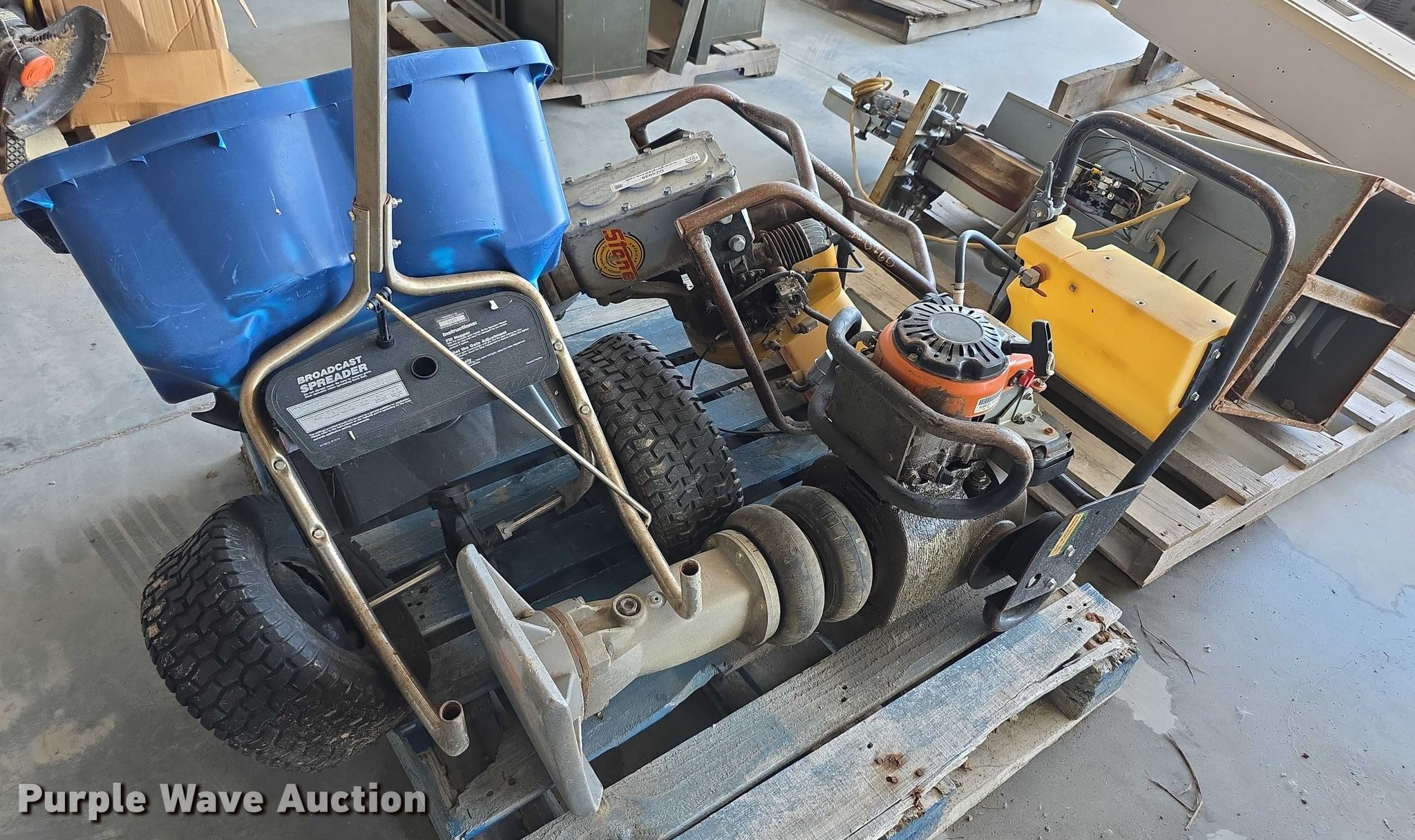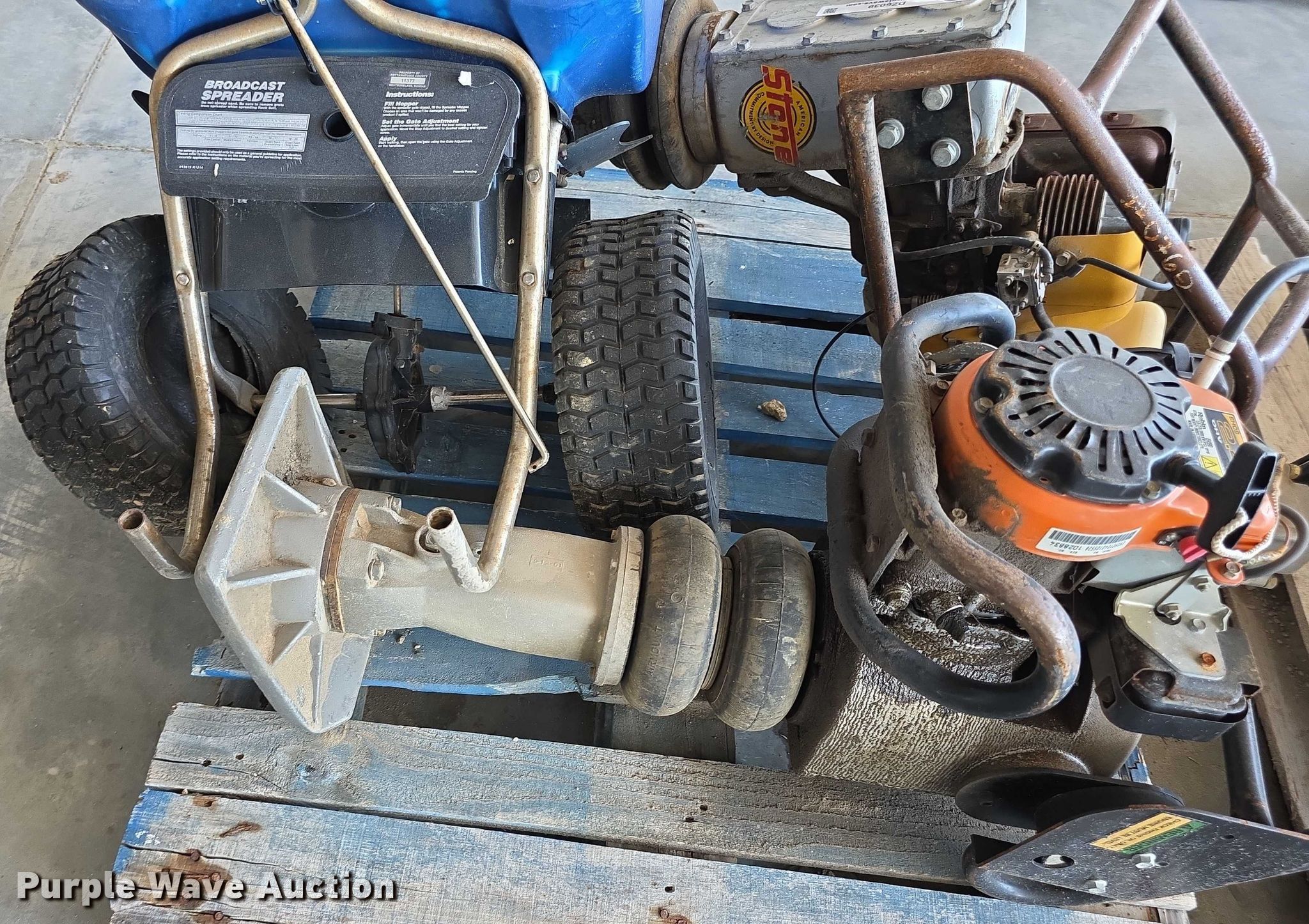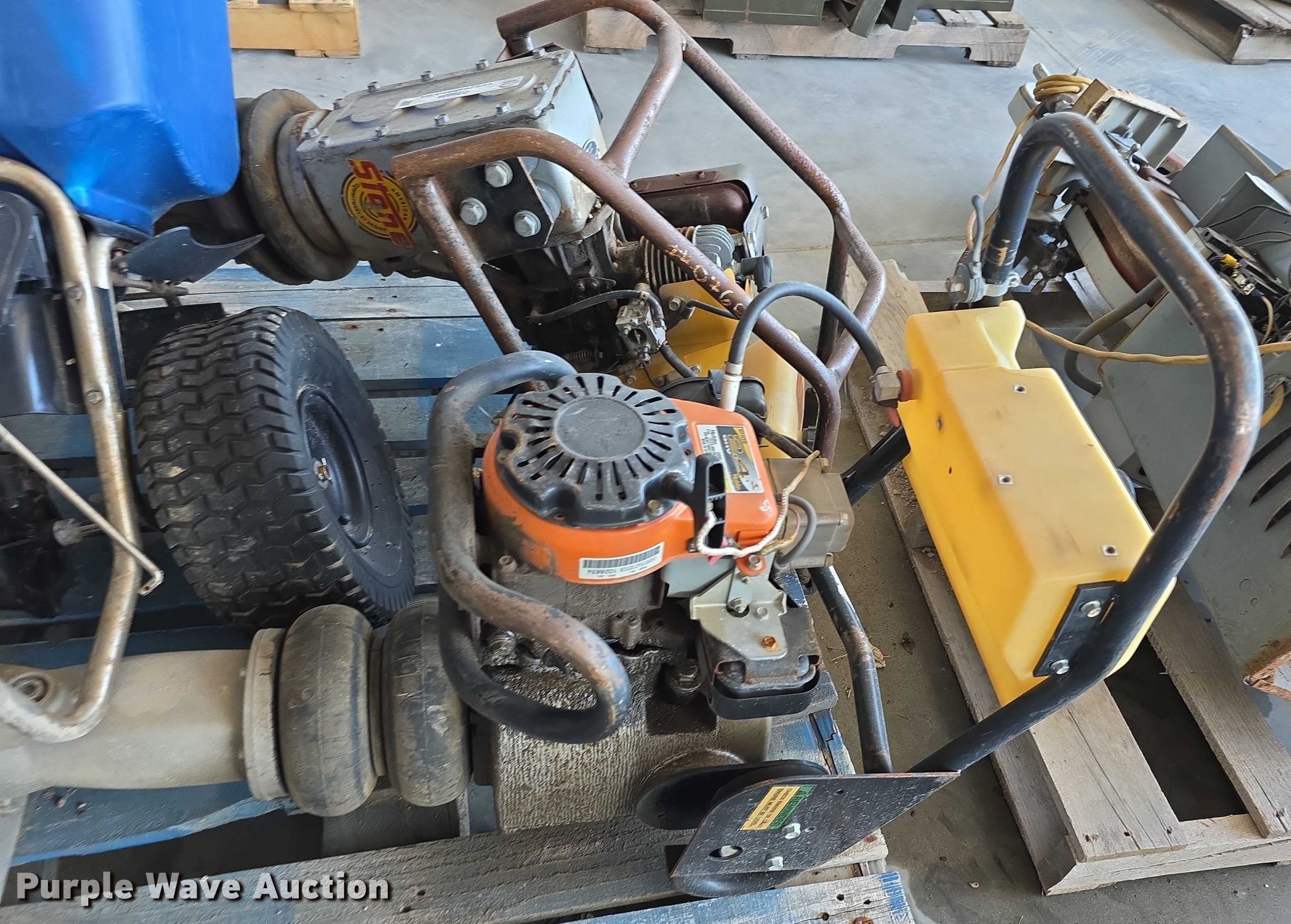 Purple Wave is selling a used Tools in Kansas. This item is a Tools with the following: Spreader, (2) plate compactors, Tornado damage, Unknown operating conditions