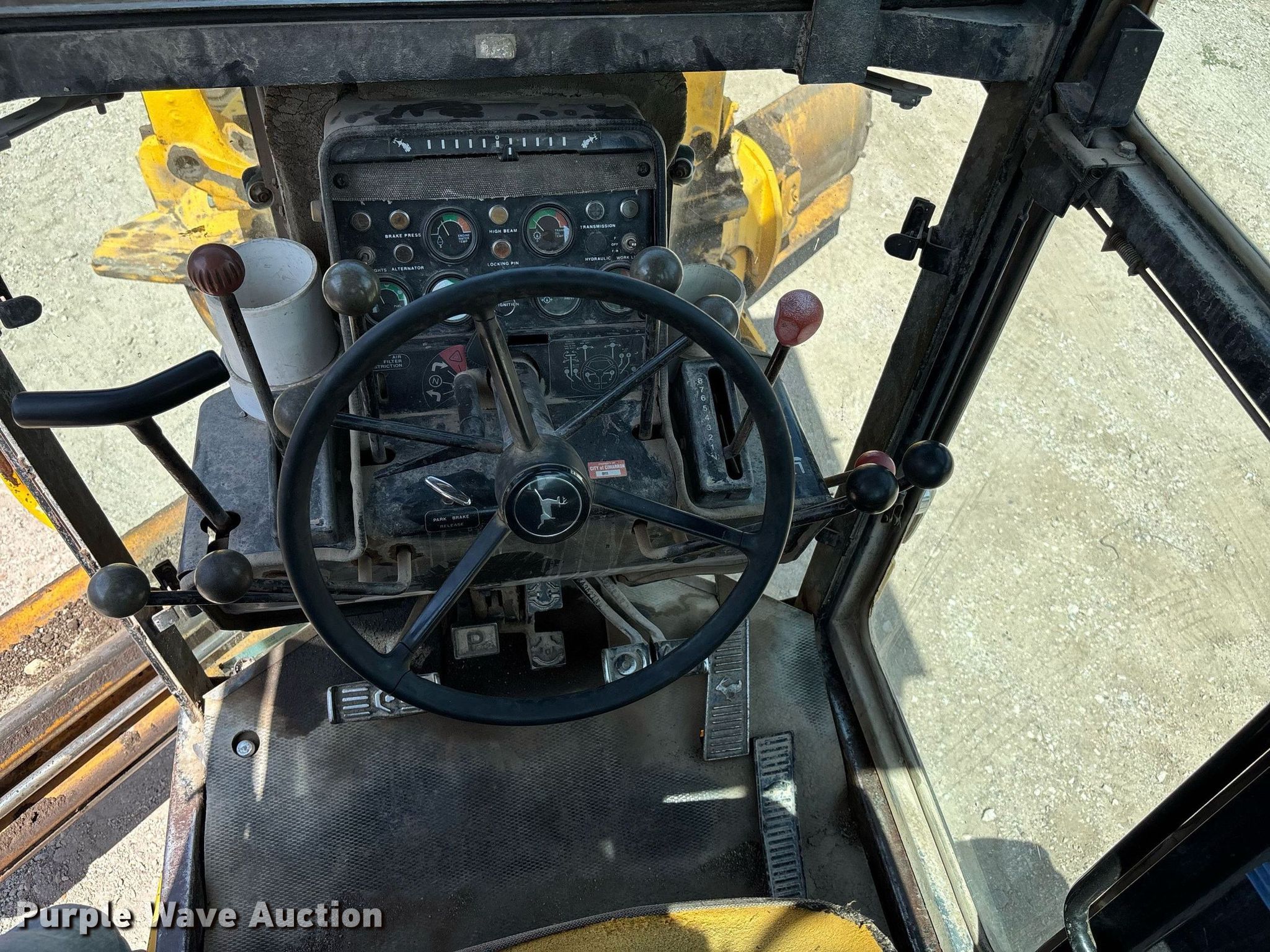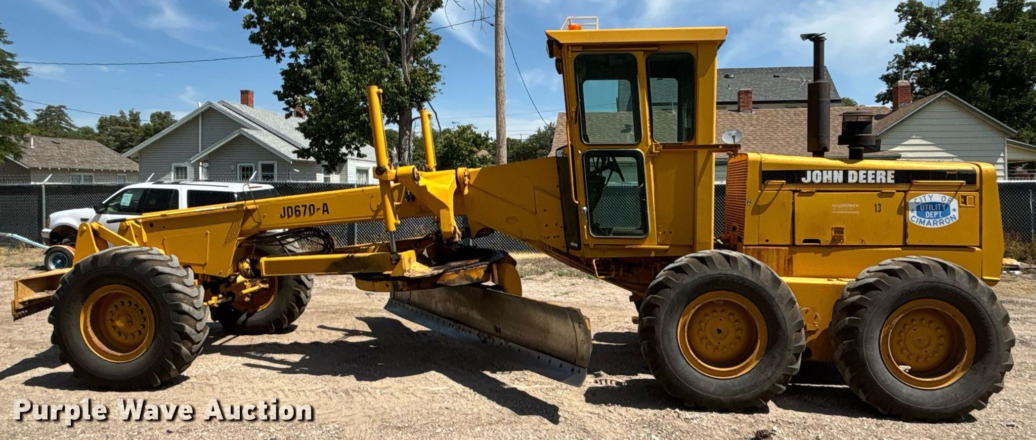 1980 John Deere 670A motor grader. Hours: 3,547 on meter, Serial: 08136T. Engine John Deere, Cylinders: 6, Fuel type: Diesel. Transmission Powershift, 8F - 8R. Chassis Differential lock. Operators station Enclosed cab, Heat, Hydraulic control valves: 9. Features Moldboard: Tip control, Side shift, Moldboard total width: 14', Scarifier Scarifier type: Front-mounted. Tires Size: 14.00-24TG. City of Cimarron, KS. Cimarron, KS 67835