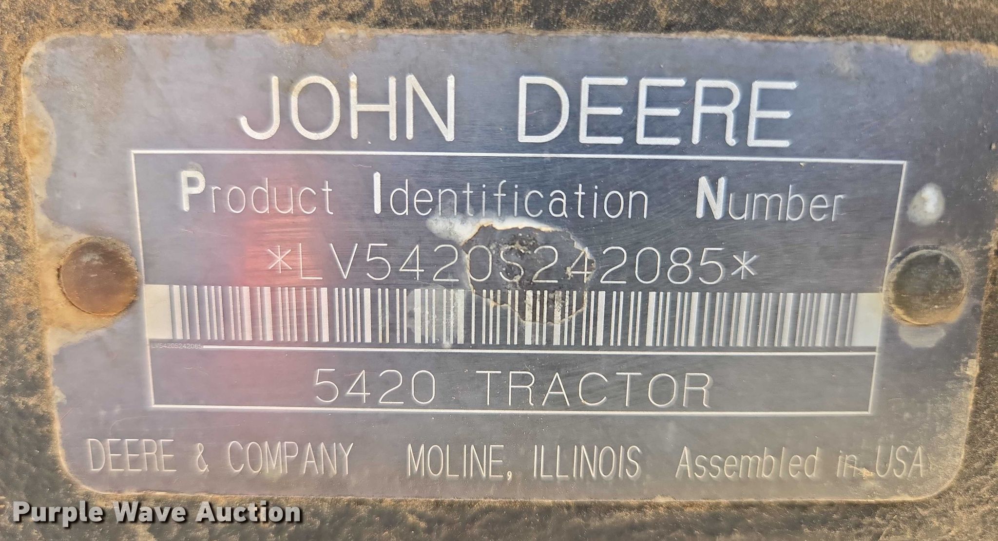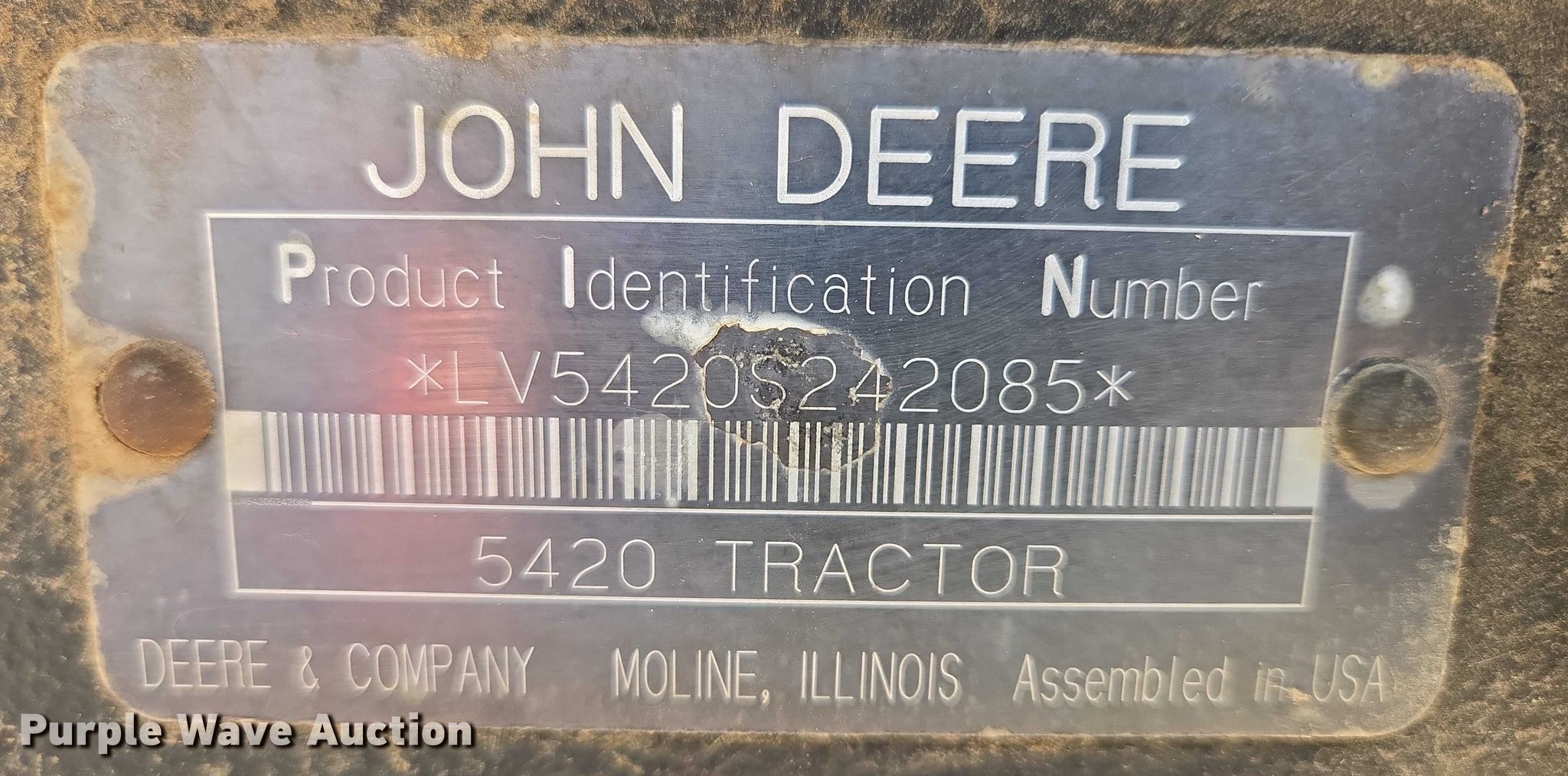 Purple Wave is selling a used Tractor in South Dakota. This item is a 2002 John Deere 5420 tractor with the following: Hours: 6,384 on meter, Serial: LV5420S242085, Unit #: SD35639