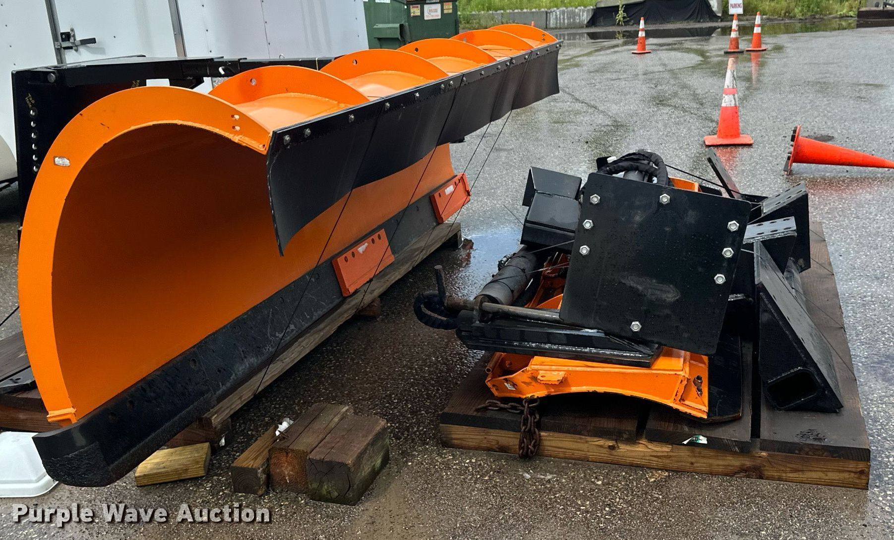 Purple Wave is selling a used Ag Tractor Loader or Attach. in Minnesota. This item is a Monroe snow plow with the following: Plow width: 11', Wing plow: 8', Unused
