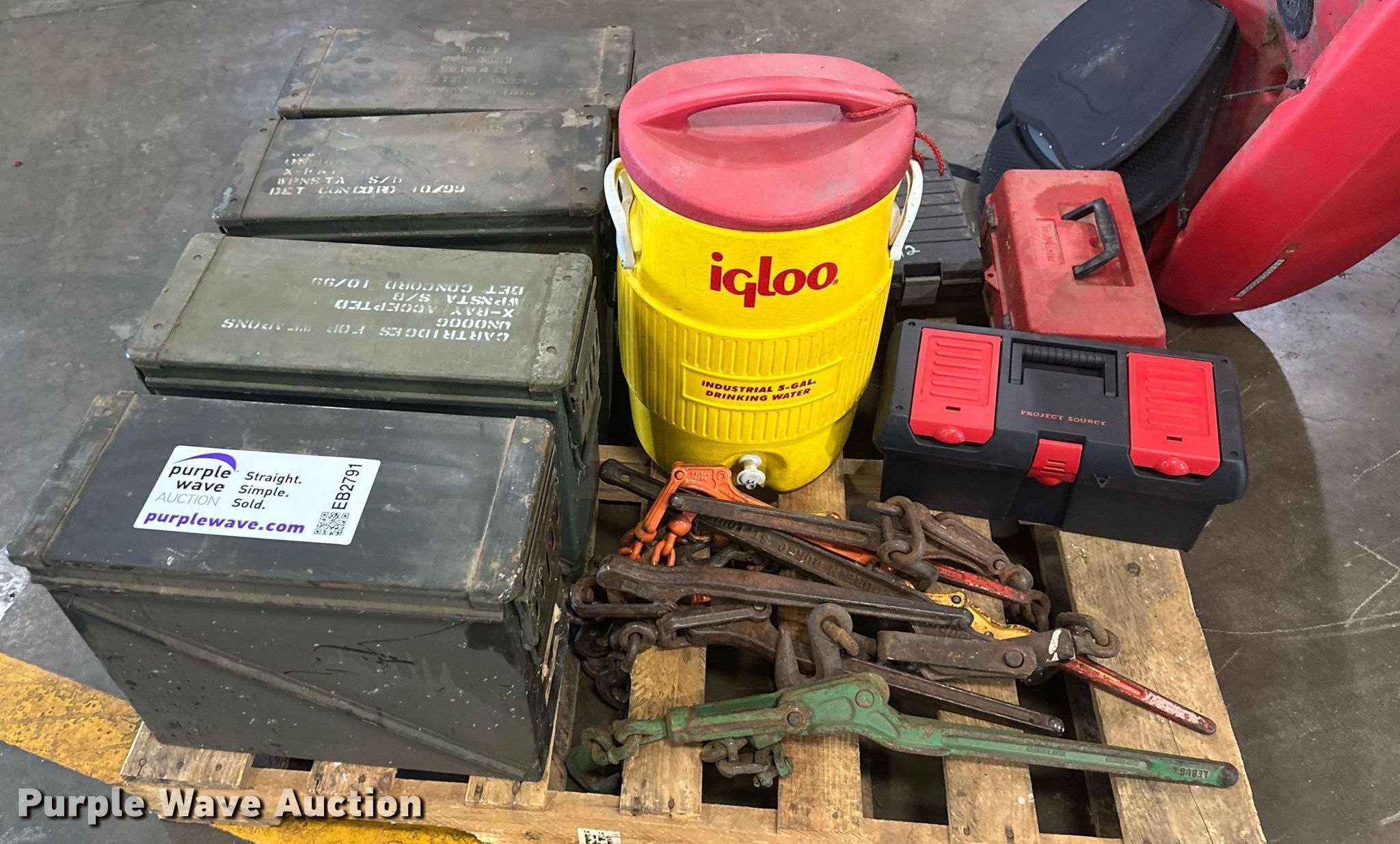 Purple Wave is selling a used Tools in Minnesota. This item is a Tools with the following: Ammo cans, Storage totes, Binders, Pelican kayak