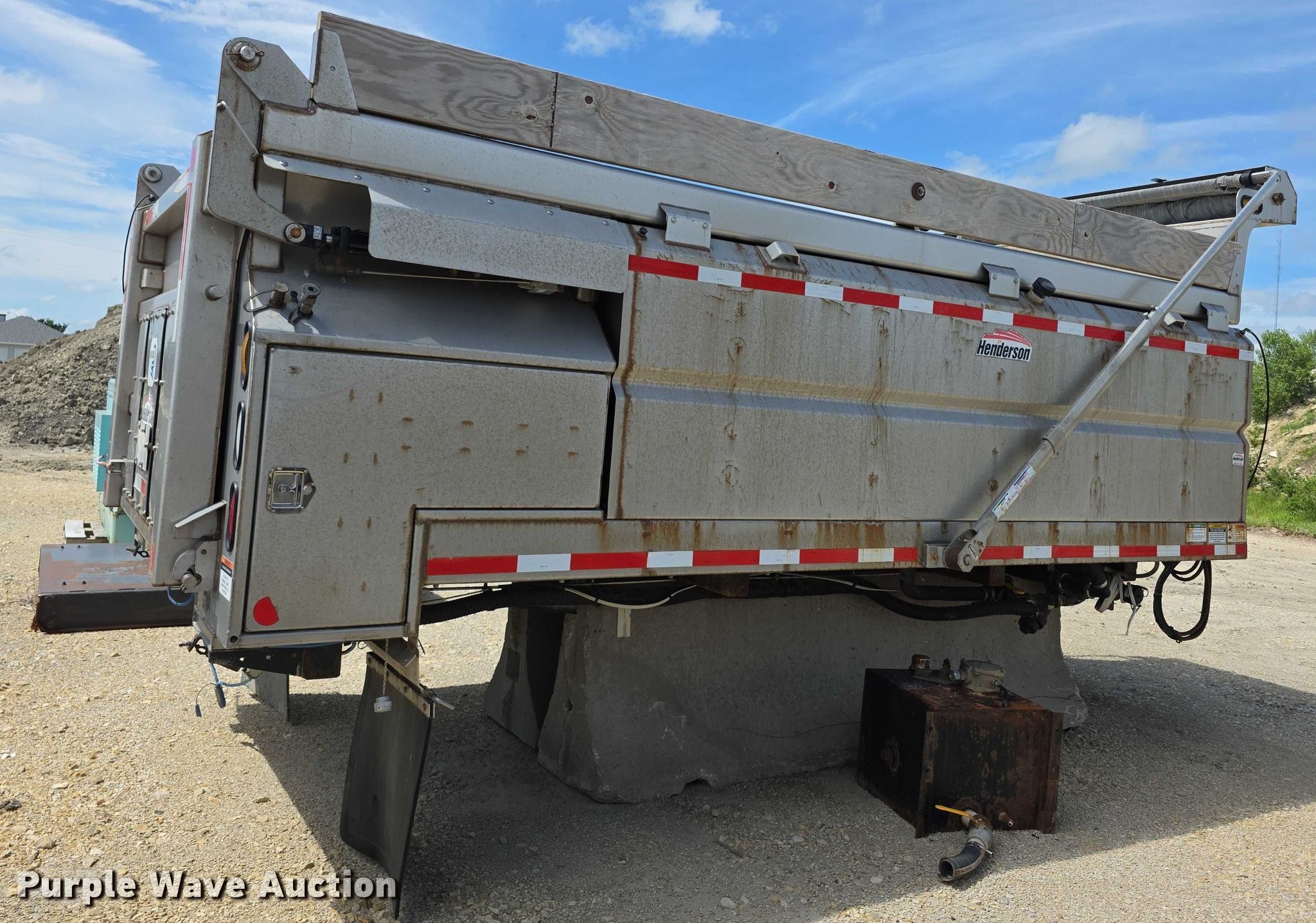 Purple Wave is selling a used Truck Part and Attach. in Kansas. This item is a Henderson salt spreader with the following: Dimensions: 16' L x 8' 3" W, Side height: 46", Side board height: 18", Belt width: 4', Roll tarp, Controls, Hydraulic tank