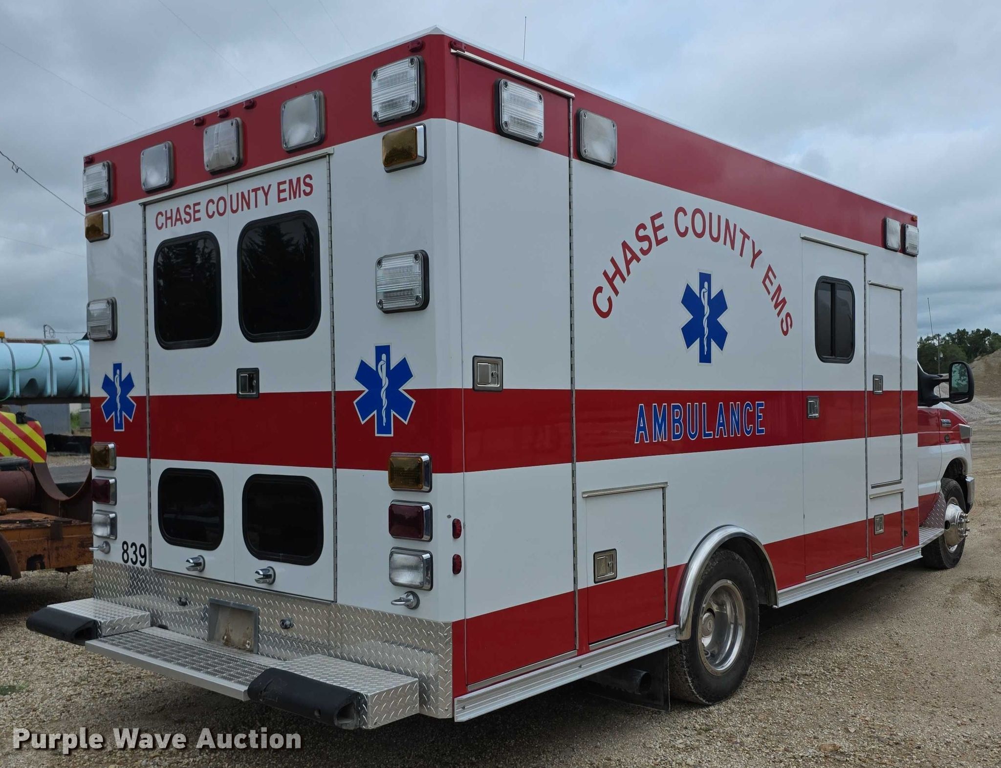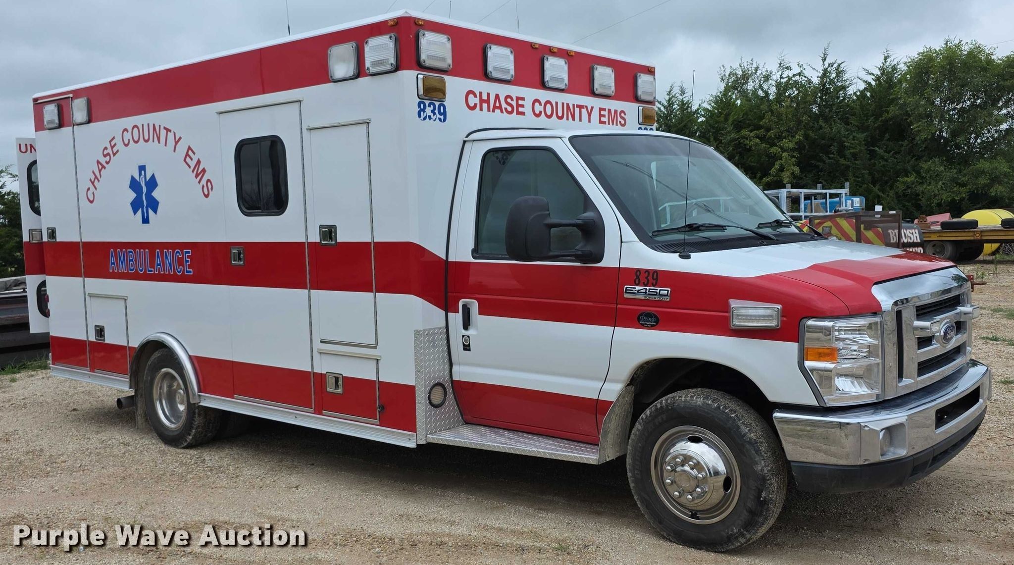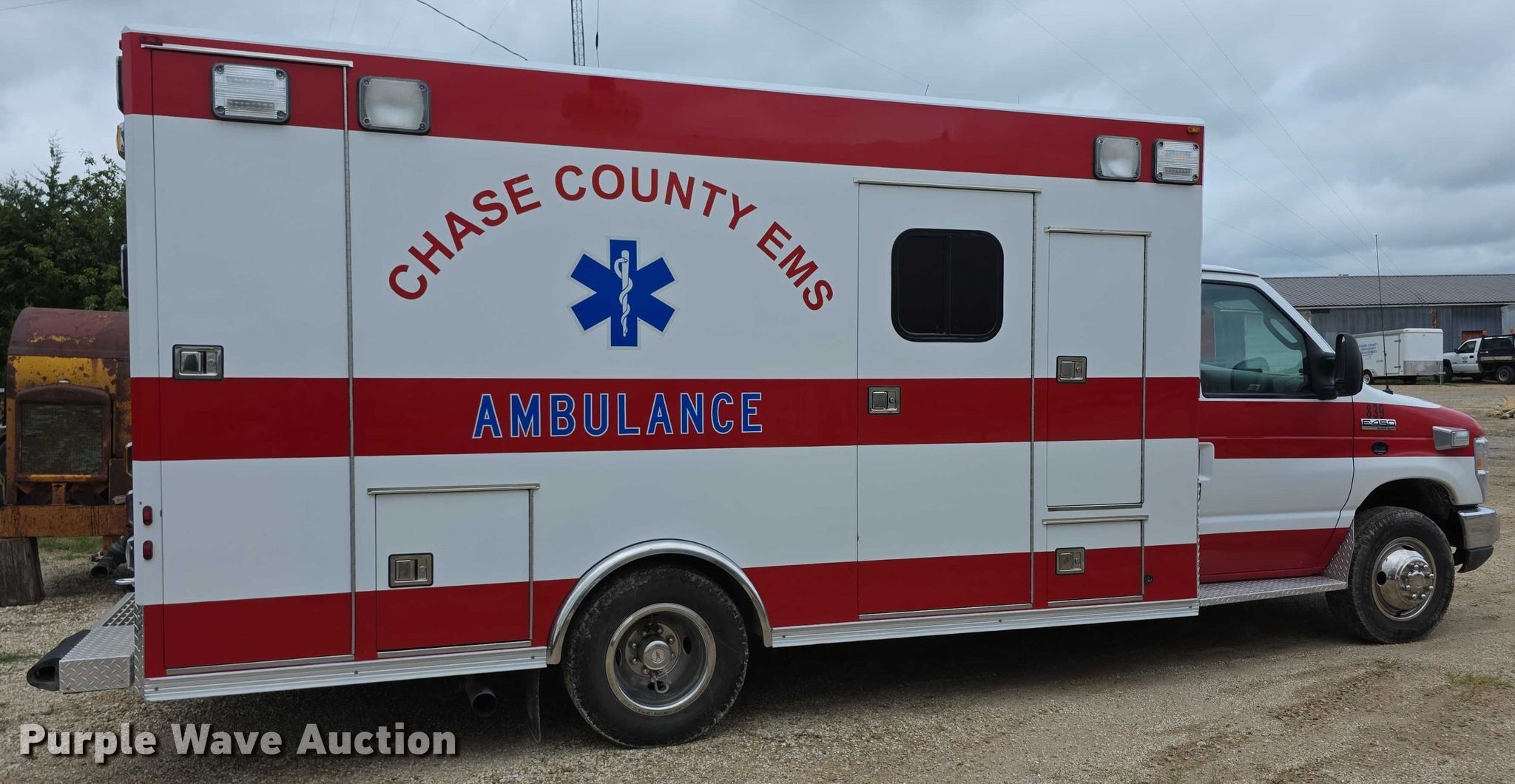 Purple Wave is selling a used Fire Truck or Emergency Vehicle in Kansas. This item is a 2008 Ford E450 Super Duty ambulance with the following: Miles: 73,059 on odometer, VIN: 1FDXE45P98DA51025, Unit #: EMS839