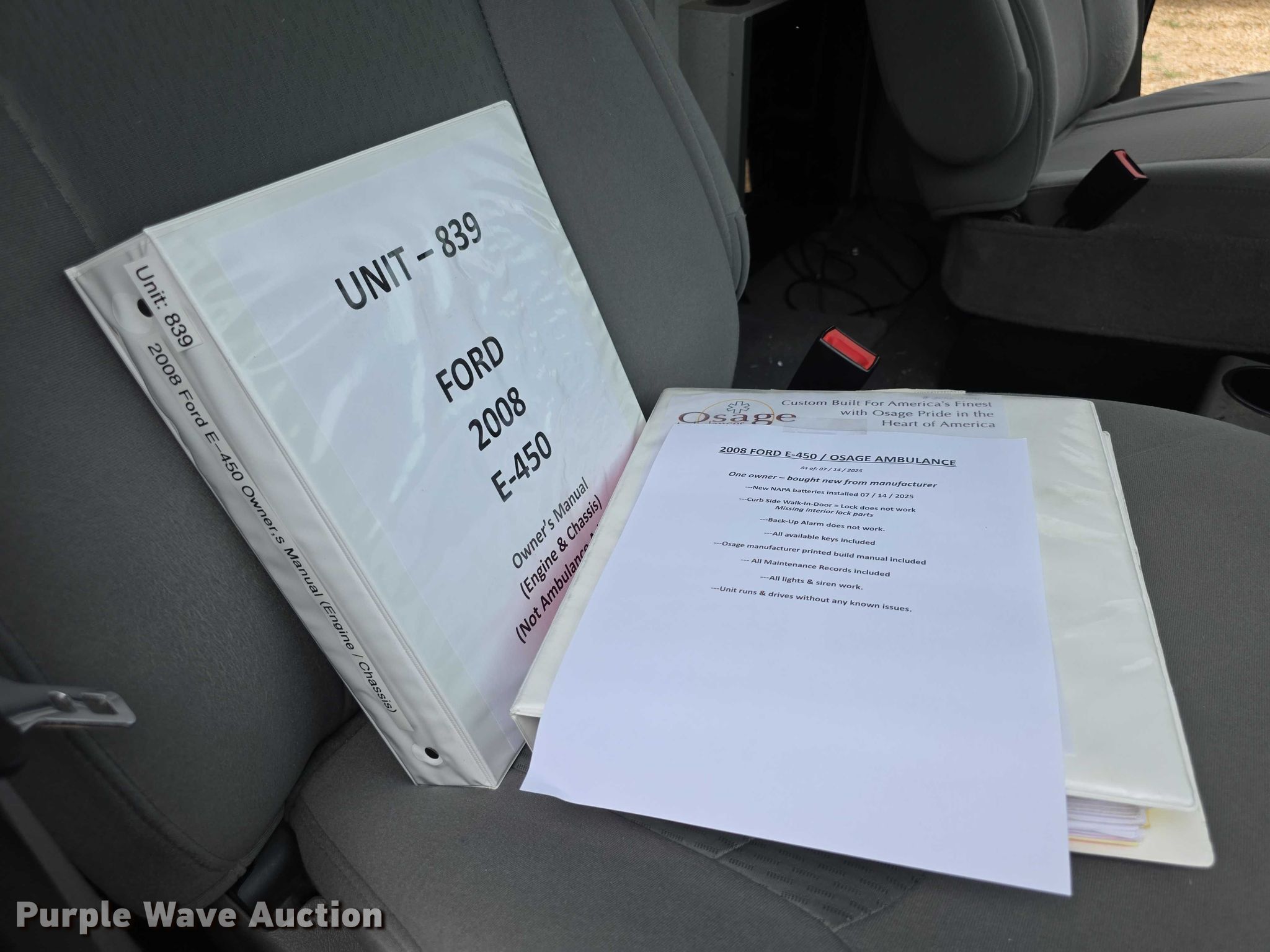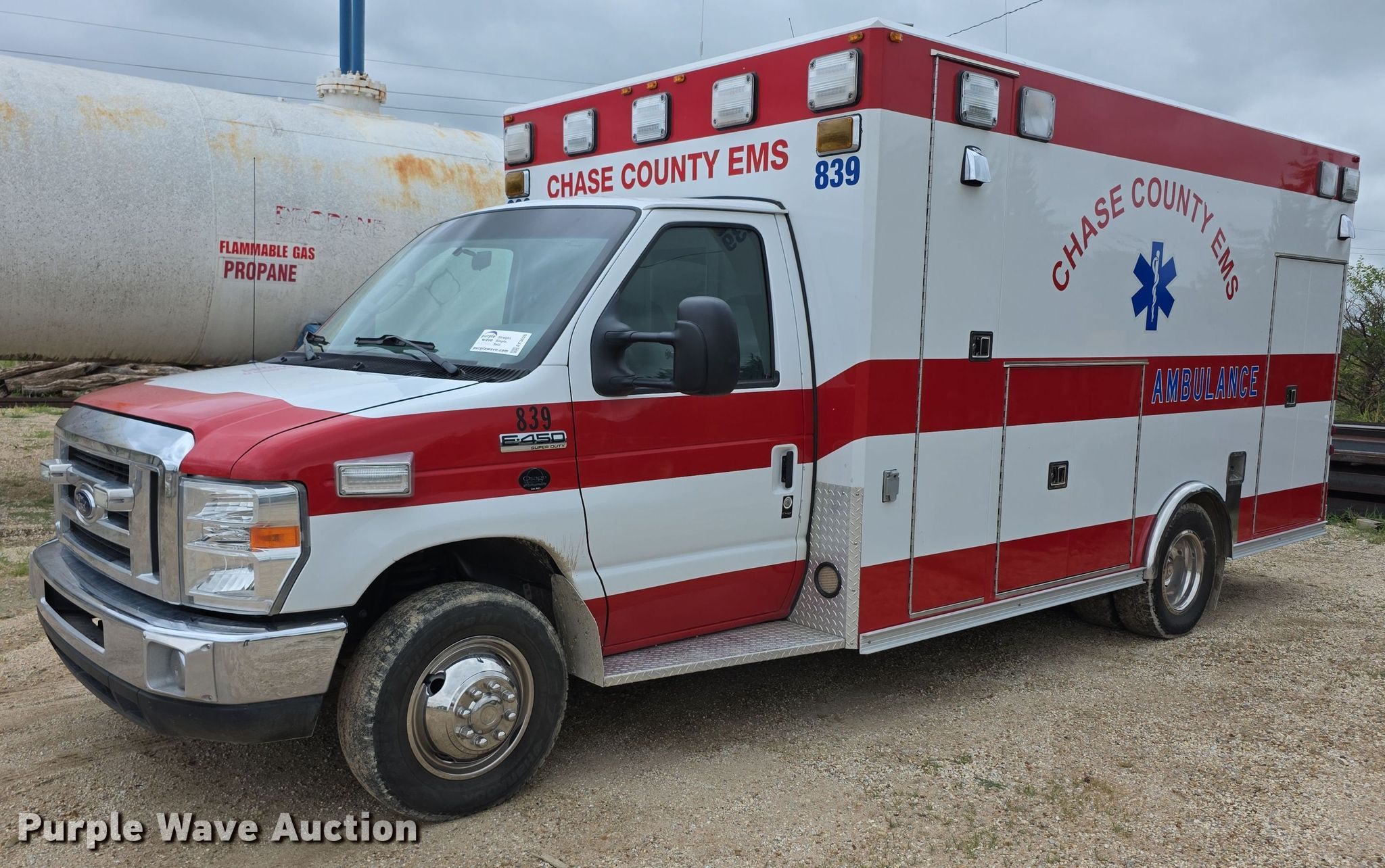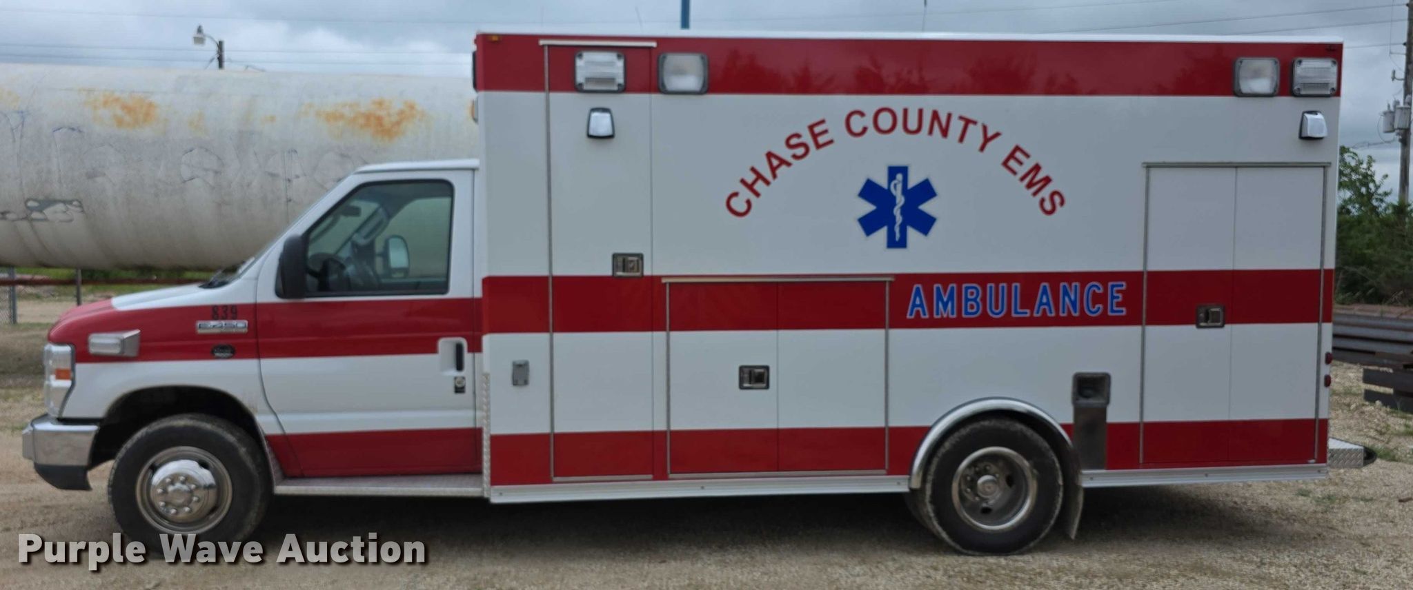 Purple Wave is selling a used Fire Truck or Emergency Vehicle in Kansas. This item is a 2008 Ford E450 Super Duty ambulance with the following: Miles: 73,059 on odometer, VIN: 1FDXE45P98DA51025, Unit #: EMS839