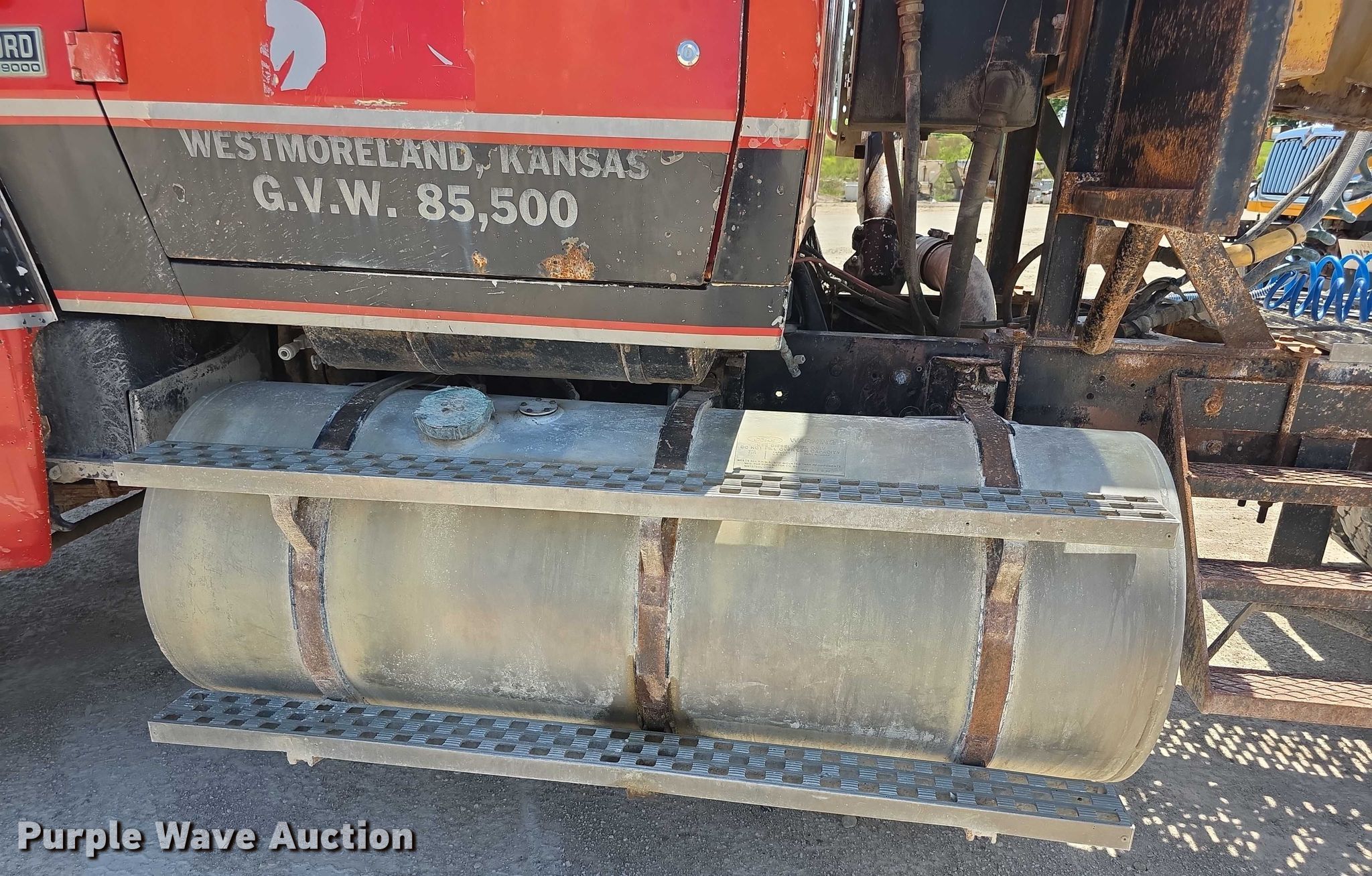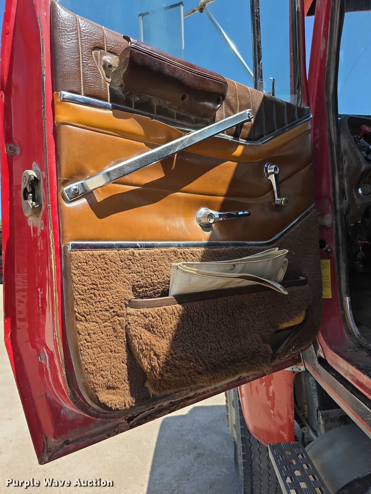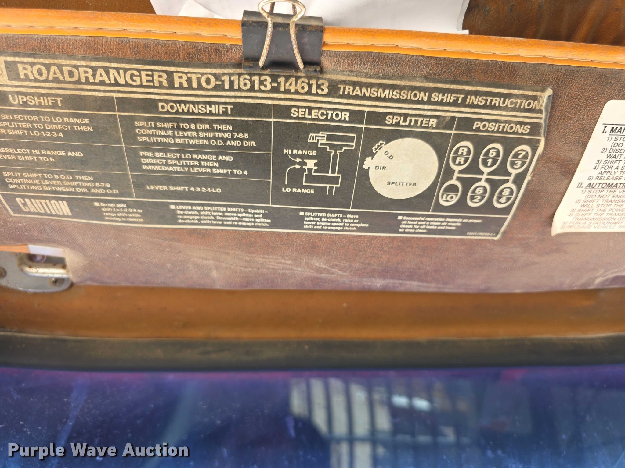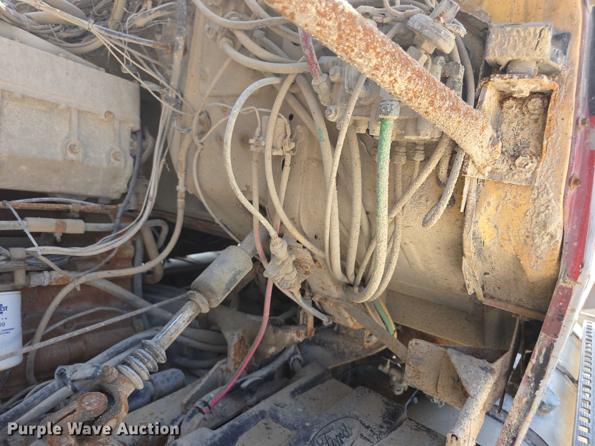 1984 ford LTL9000 semi truck. Miles: 43,030 on odometer, VIN: 1FDYA90WXEVA17449, Unit #: 32. Engine Cummins, Serial: 60505950, Displacement: 14.0L, Cylinders: 6, Fuel type: Diesel. Transmission Eaton Fuller Roadranger, Manual, Speed: 8. Chassis Axles: Tandem, Suspension: Spring, Brakes: Air, Wet kit, Truck chassis: 15', GVWR: 46,000 lbs FAWR: 12,000 lbs, RAWR: 19,000 lbs, Wheelbase: 206". Interior Heat. Features Deck plate: Steel, Fifth wheel type: Air operated, Sliding, Fuel tank: Dual. Tires Size: 11R24.5. Notes Side mirrors damaged, cracked, Fifth wheel air line issues, needs replaced. Kansas title. Title distribution may be delayed up to 14 days from verification of funds. Pottawatomie County Public Works. Westmoreland, KS 66549
