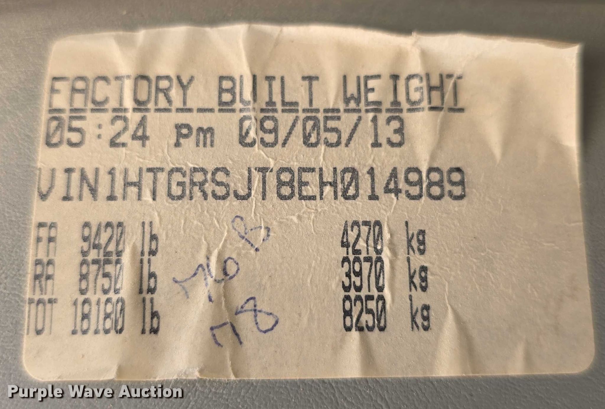 • VIN: 1HTGRSJT8EHO14989