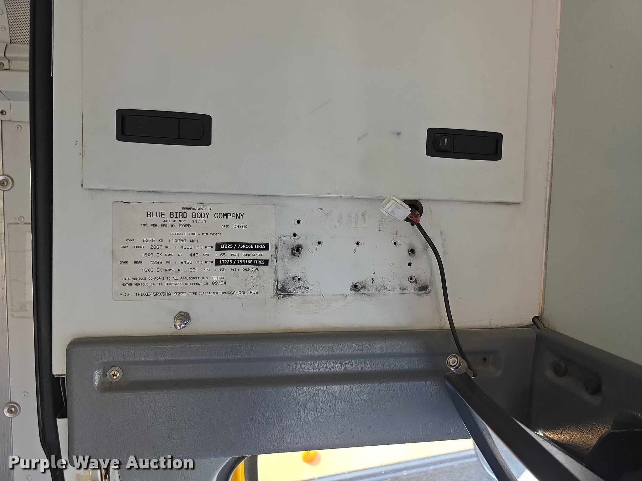 Purple Wave is selling a used Bus in Kansas. This item is a 2005 Ford E450 Super Duty school bus with the following: Miles: Unknown, VIN: 1FDXE45PX5HA19222, Unit #: 05-1