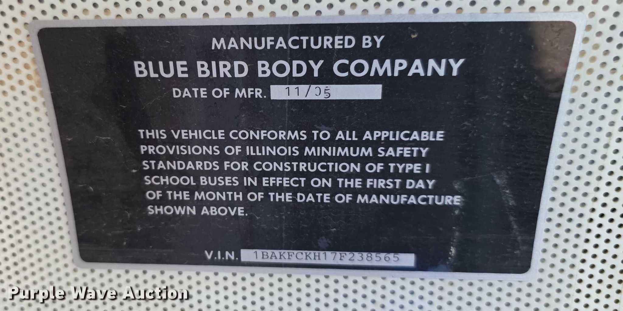 Purple Wave is selling a used Bus in Kansas. This item is a 2007 Blue Bird Vision school bus with the following: Miles: Unknown, VIN: 1BAKFCKH17F238565, Unit #: 08-1