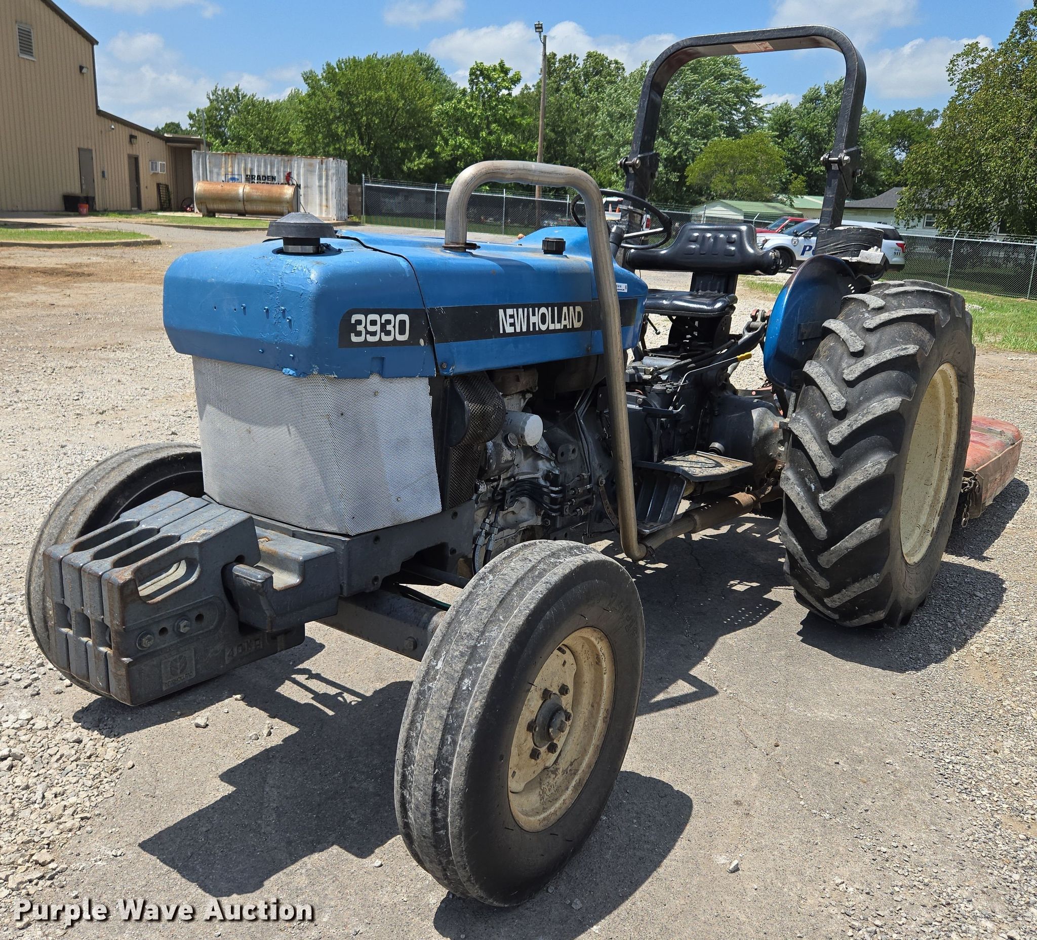 New Holland 3930 tractor. Hours: 11 on meter, Hours: Unknown. Engine New Holland, Cylinders: 3, Fuel type: Diesel. Transmission Manual, 8F - 2R, Differential lock. Features Three point, Hydraulic remote sets Rear: 1, Suitcase weights: 4. Tires Front: 7.5-16, Rear: 14.9-28. Notes Rotary mower, Width: 77", Hitch: Three point. City of Haskell. Haskell, OK 74436