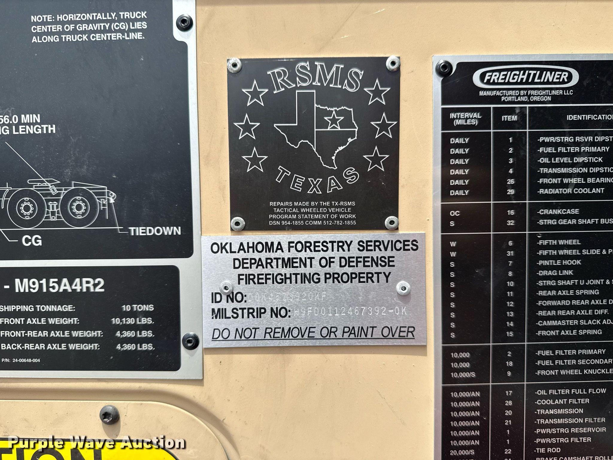 2007 Freightliner FLD120 semi truck. Miles: 17,541 on odometer, VIN: 1FVXAU0037PZ41838. Engine Cummins NTC-400, Cylinders: 6, Fuel type: Diesel, Engine brake. Transmission Allison 4500 SP, Automatic. Chassis Axles: Tandem, Differential lock: Inter-axle, Suspension: Spring over walking beam, Brakes: Air. Interior AC, Heat. Features Deck plate: Aluminum, Fifth wheel type: Air operated, Fixed, Fuel tank: Single. Tires Front: 12R22.5, Rear: 11R22.5. Oklahoma title. Title distribution may be delayed up to 14 days from verification of funds. City of Fort Gibson. 200 West Poplar Street. Fort Gibson, OK 74434