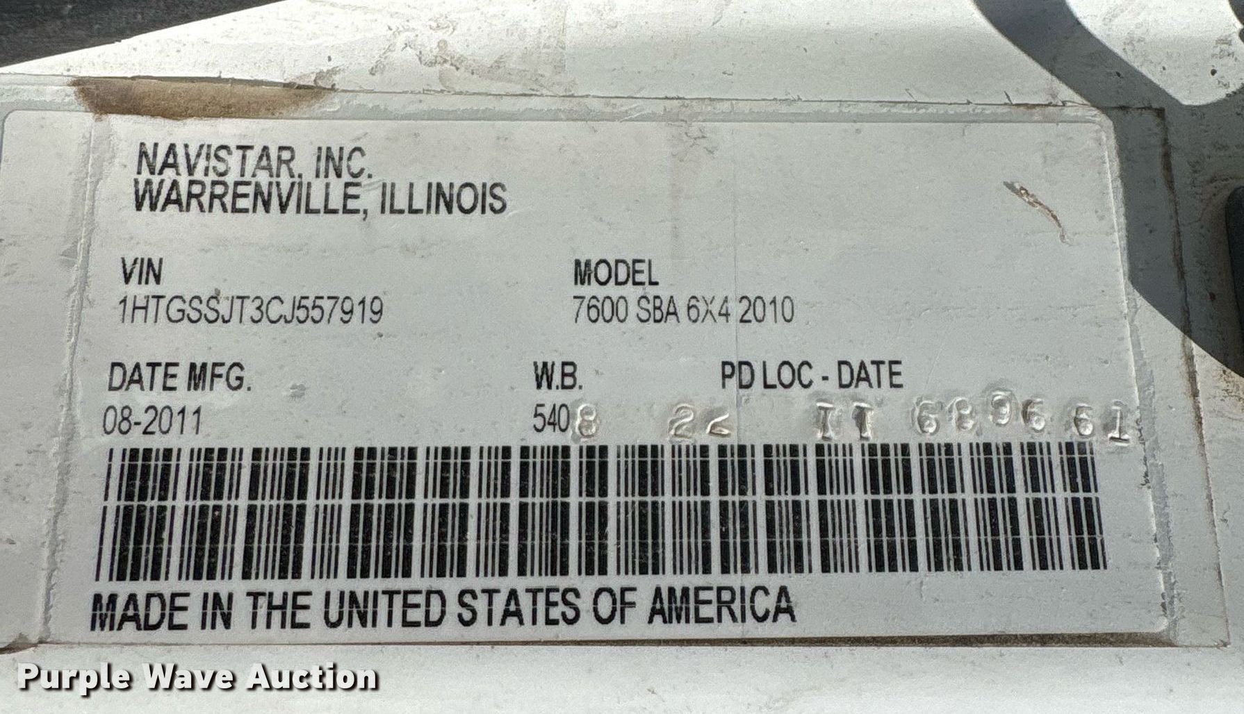 Purple Wave is selling a used Construction Dump Truck in Oklahoma. This item is a 2012 International 7600 dump truck with the following: Miles: Unknown, VIN: 1HTGSSJT3CJ557919, Unit #: 201