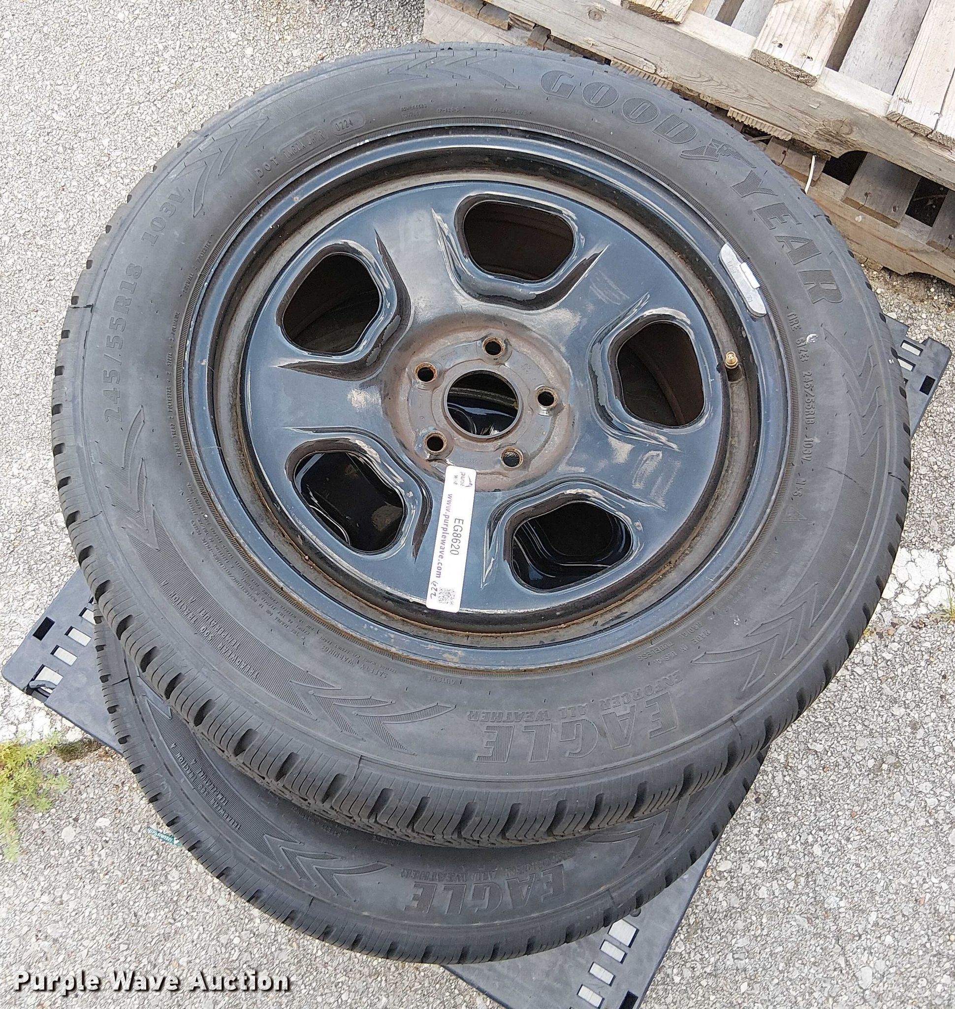 Take a look at this used (2) Goodyear eagle 245/55R18 tires and wheels being sold on August 19th, 2025 in the SOLD! August 19 Government Auction. Take a look at all of the item information below or take a look at similar auctions for Tires and Tracks.