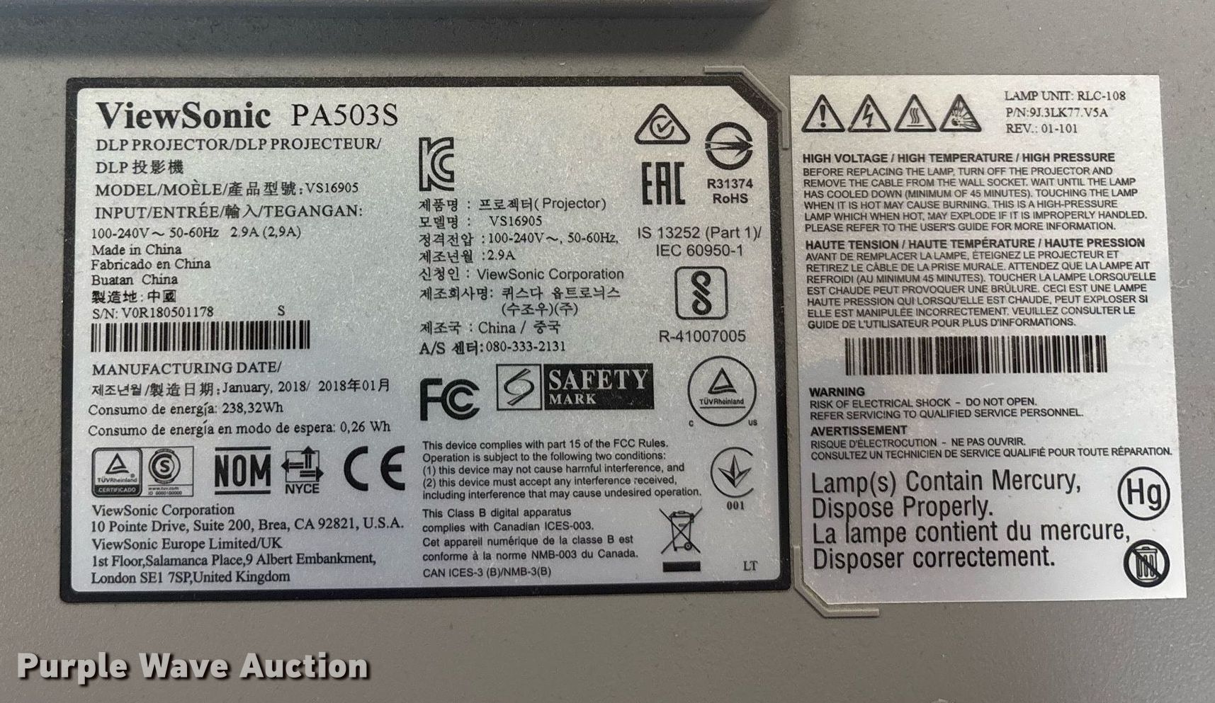 Purple Wave is selling a used Electronics in Missouri. This item is a Approximately 27 projectors with the following: Approx. 5 Acer X1220H DLP, Approx. 13 ViewSonic PJD5153 DLP, Approx. 4 ViewSonic PA502S DLP, Approx. 3 Epson VS250 DLP, Approx. 2 Epson Home Cinema 660 DLP