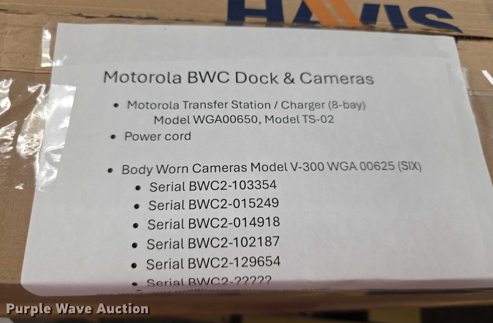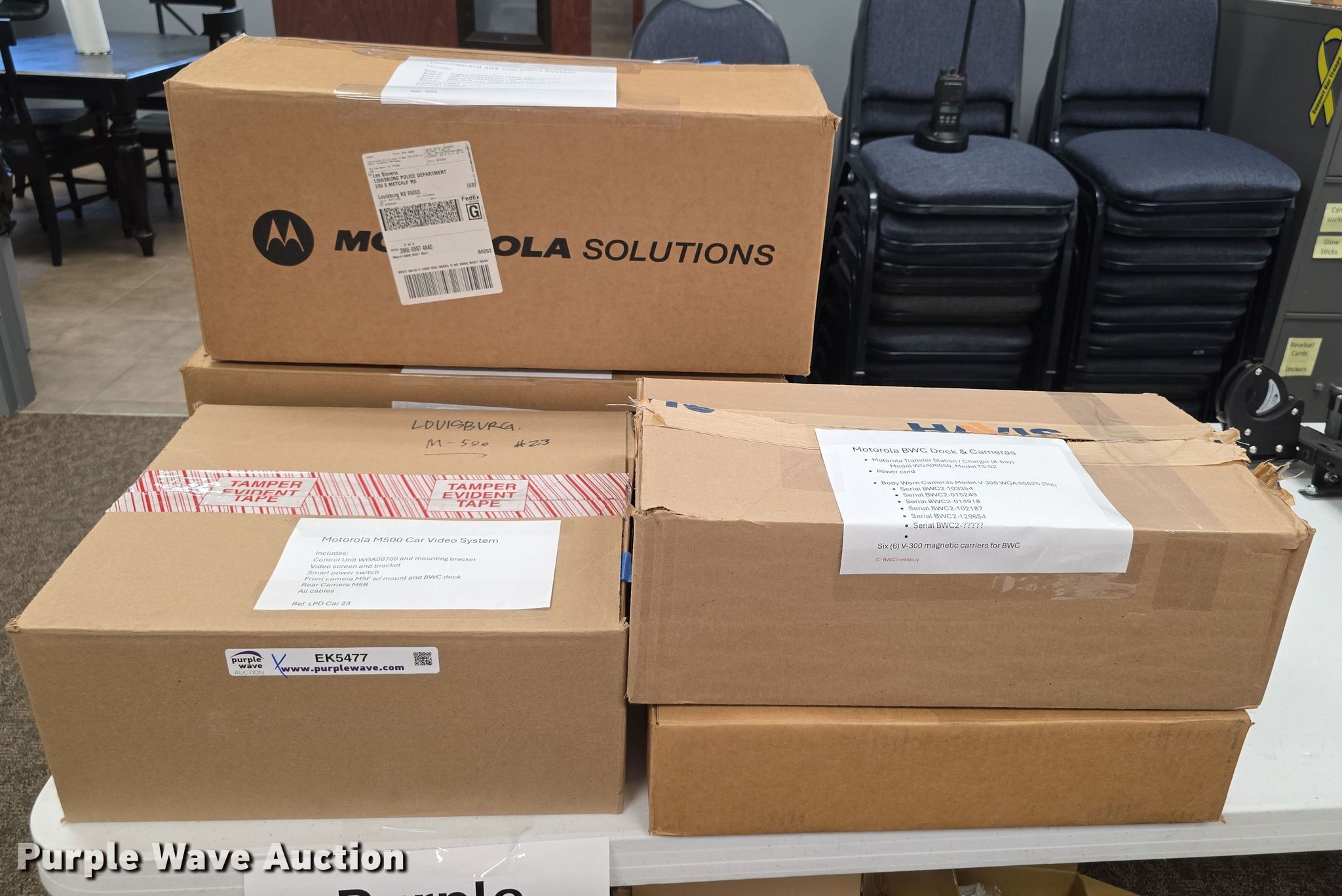 Purple Wave is selling a used Automotive Parts or Acces. in Kansas. This item is a Police equipment with the following: Radar, Dash cameras, Motorola, Watch Guard, BWC dock, BWC cameras, Additional cables