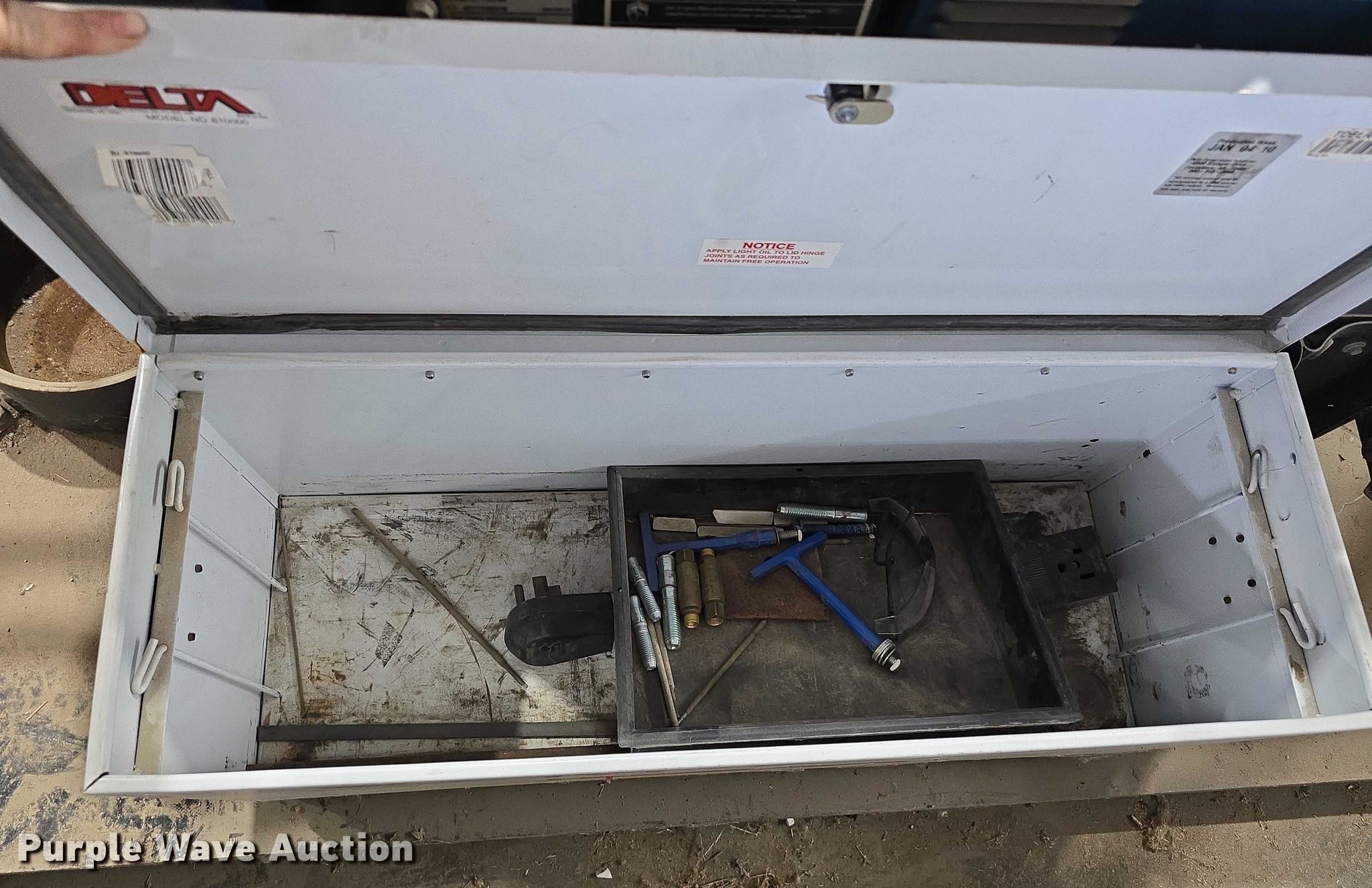 Miller Bobcat 235 welder/generator. Hours: 201 on meter, Serial: LB064894. Engine Onan Performer P216G-U, Serial: A017192378, Cylinders: 2, Fuel type: Gas. Features Welder Capabilities: CC, CV, DC, AC, Wire, TIG, Stick, Leads, Fuel tank, Skid mounted, Generator kW: 8.5, Phase: Single, 240V outlets: 1, 120V outlets: 4. Notes Skid: 78"L x 48" W, Torch bottle rack, (2) Delta toolboxes, Miller Millermatic S-32SC8 welder, *Serial: JJ421937, *Capabilities: Mig, Wire, Unknown operating condition. LTU Solid Waste. Lincoln, NE 68504