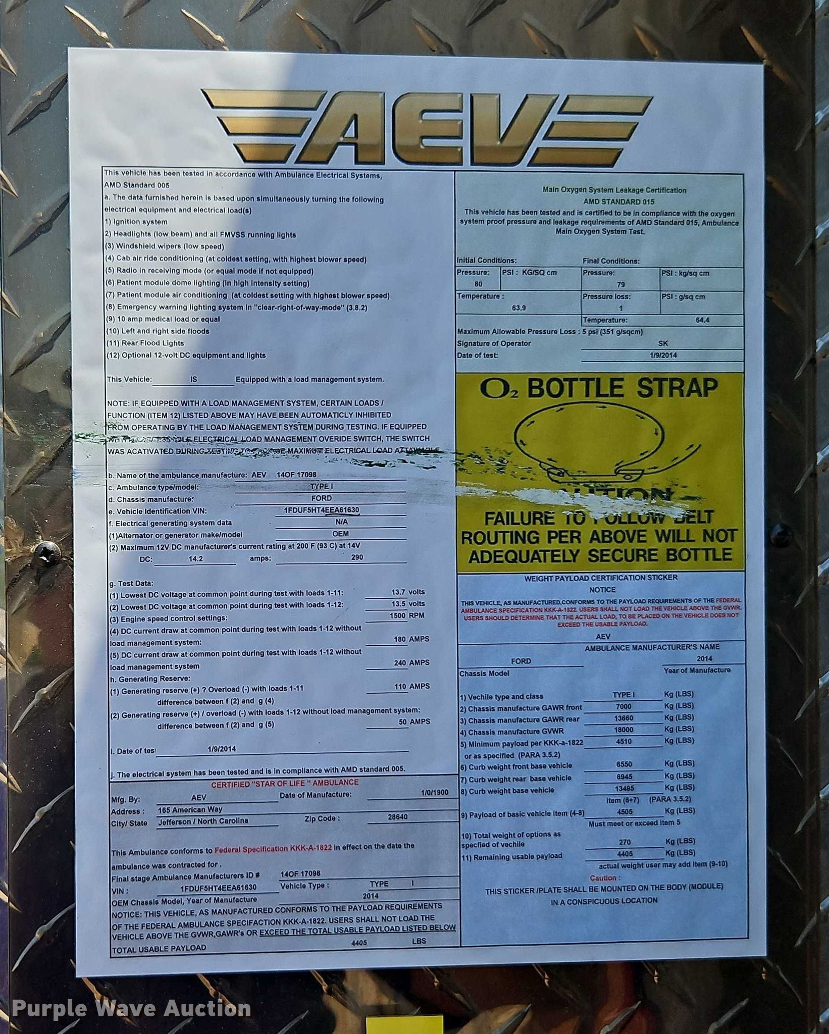 Purple Wave is selling a used Fire Truck or Emergency Vehicle in Missouri. This item is a 2014 Ford F550 ambulance with the following: Miles: 289,974 on odometer, Hours: 8,589 on meter, VIN: 1FDUF5HT4EEA61630