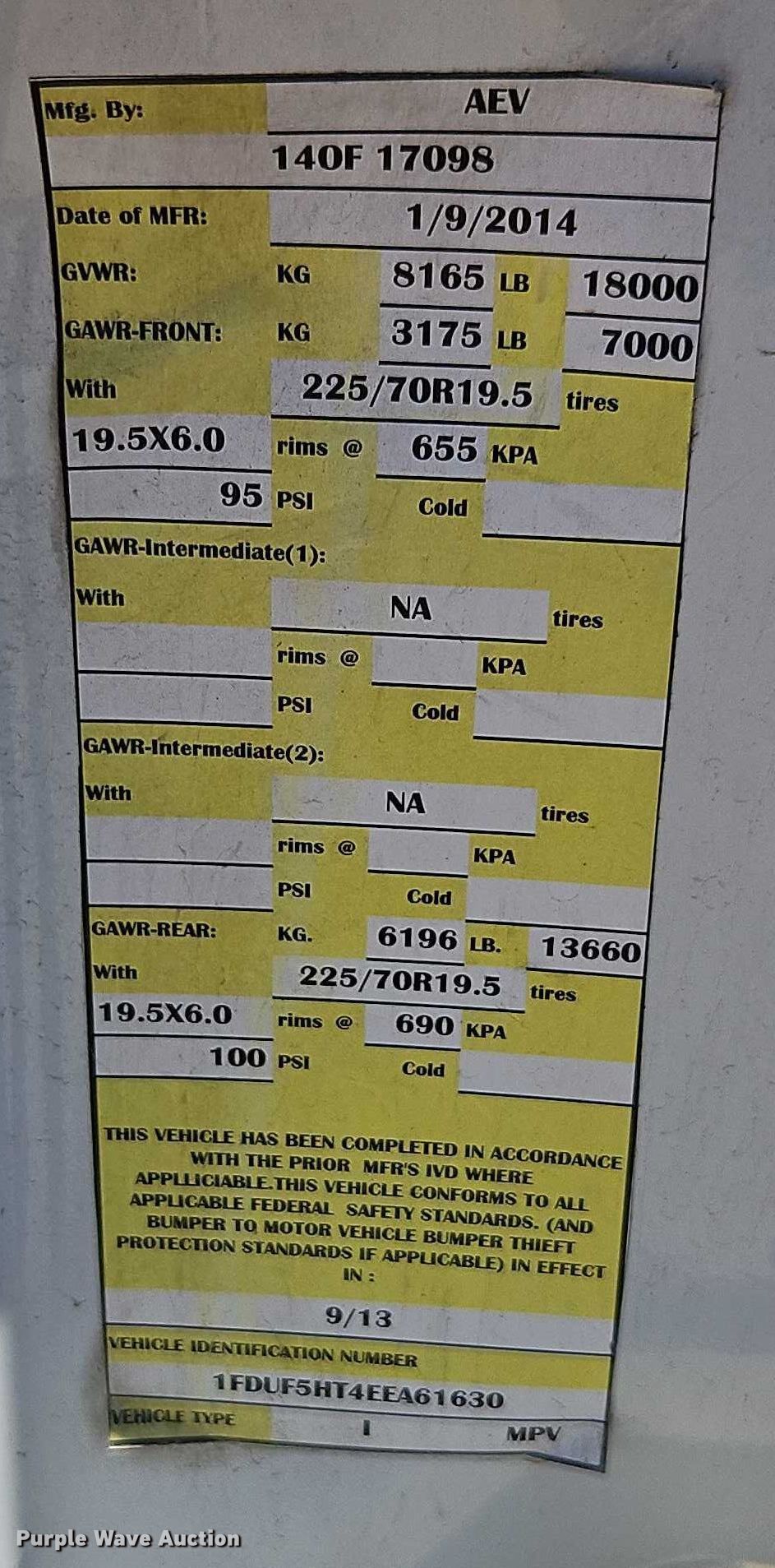 - VIN: 1FDUF5HT4EEA61630