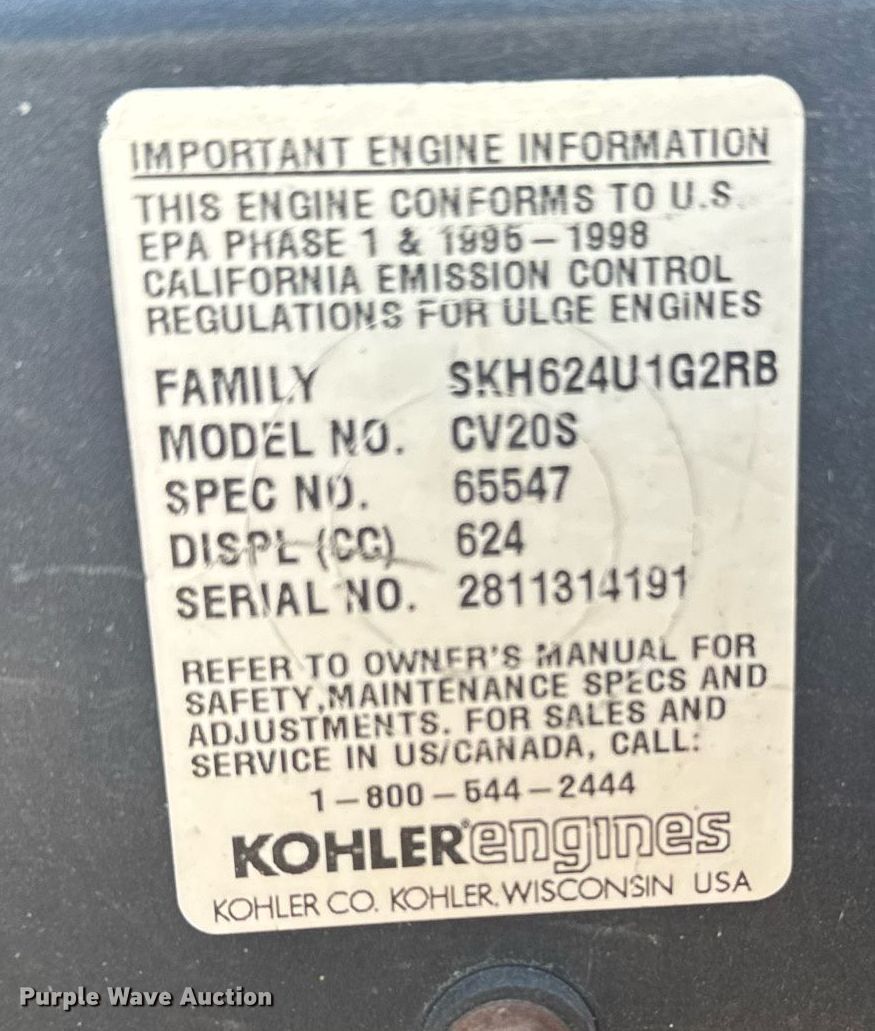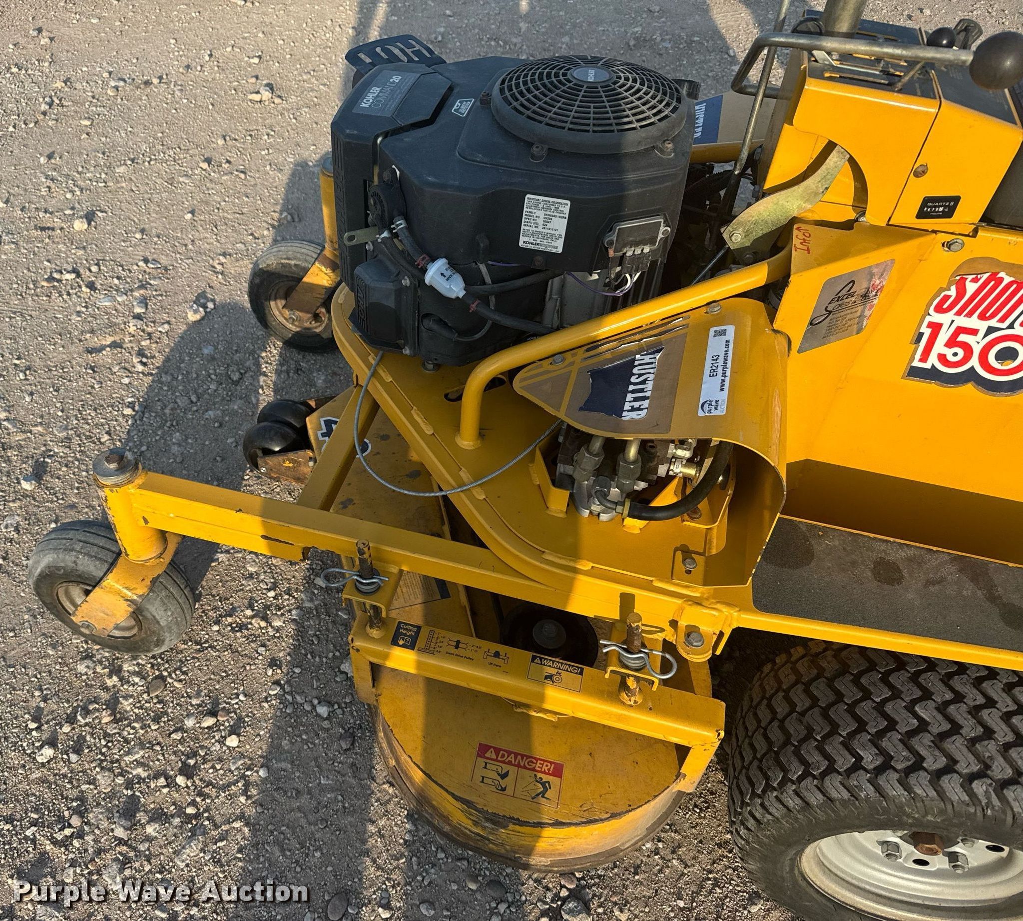 Hustler ShortCut 1500 ZTR lawn mower. Hours: 675 on meter, Cutting width: 48", Serial: 8090329. Engine Kohler CV20S, Serial: 2811314191, Displacement: 624 cc, Cylinders: 2, Fuel type: Gas. Transmission Hydrostatic. Tires Front: 11x4.5-5, Rear: 18x10.5-10. Hays Recreation Commission. Hays, KS 67601