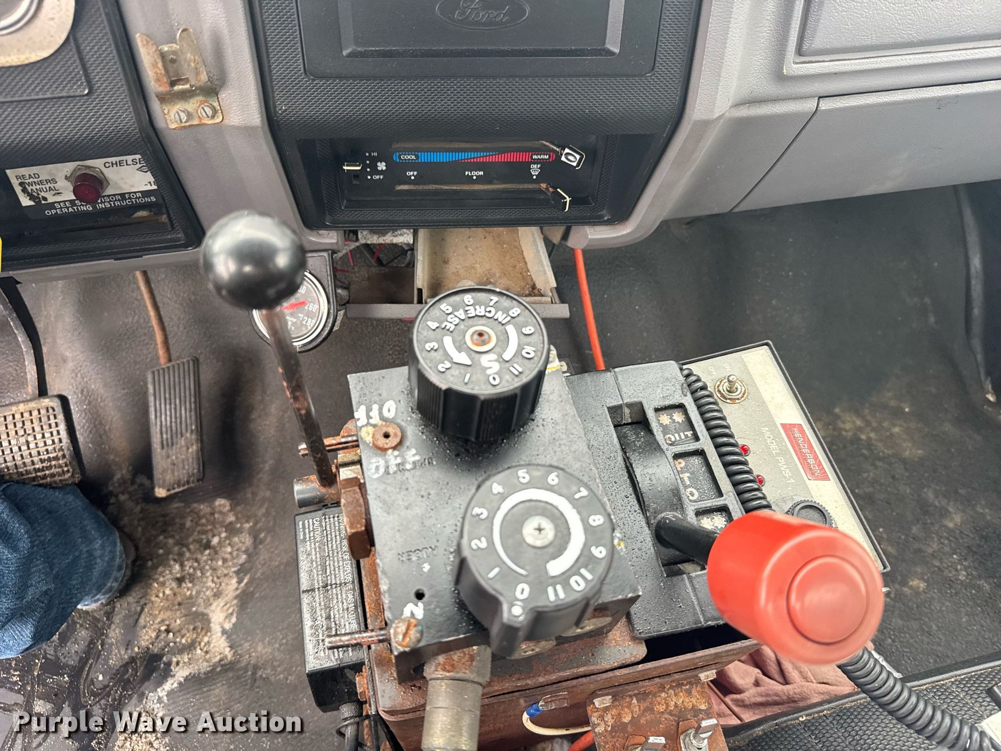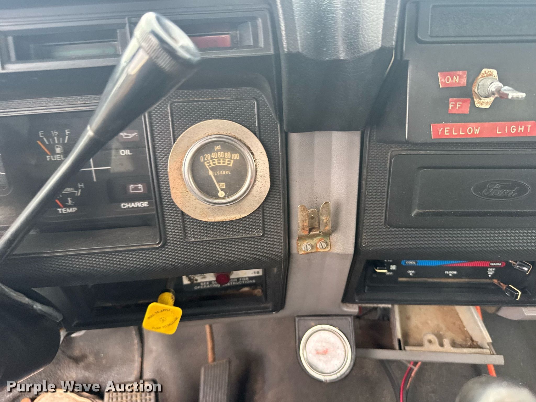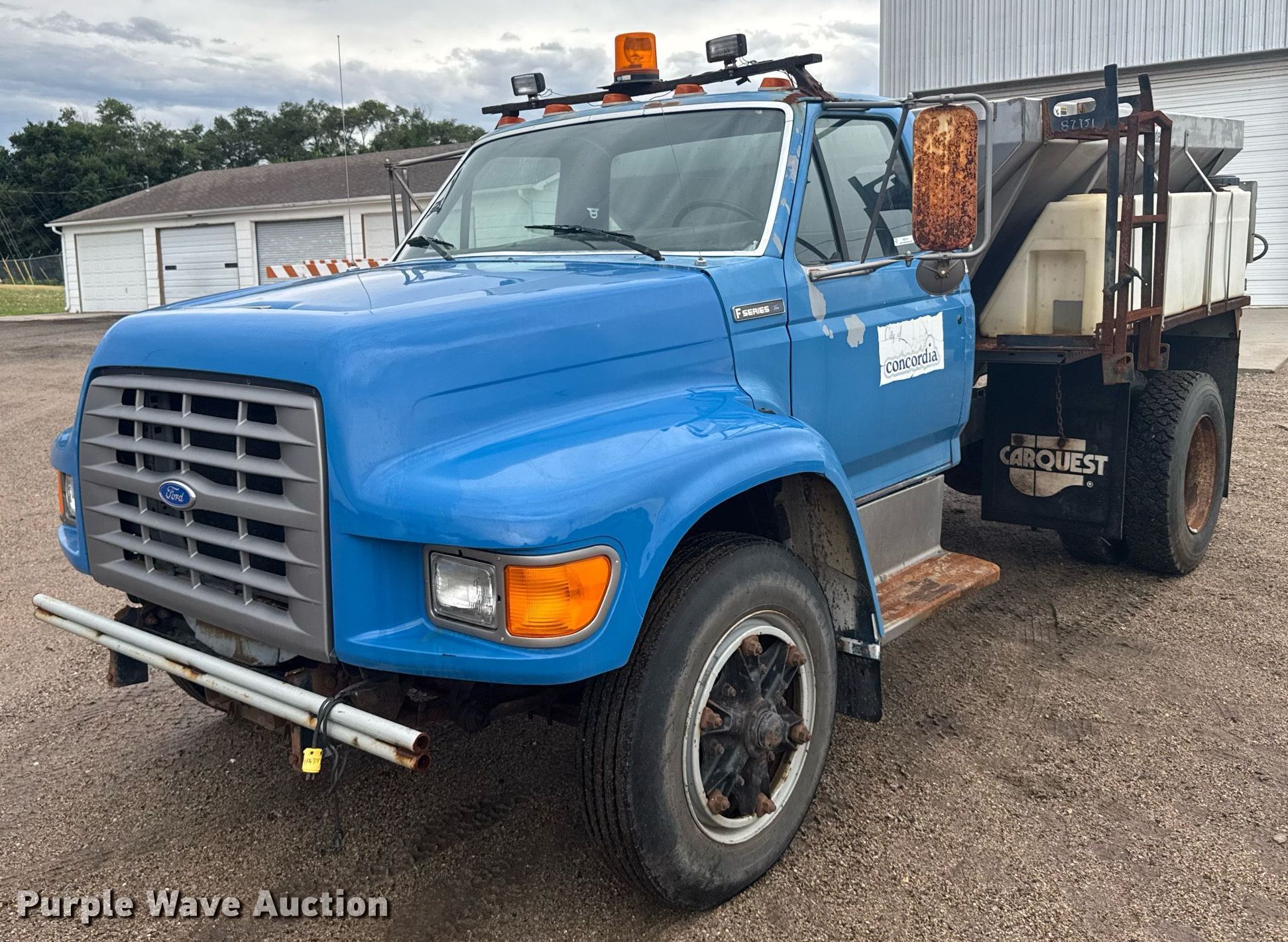 1995 Ford F700 flatbed truck. Miles: 43,065 on odometer, VIN: 1FDPF70J1SVA32388. Engine Ford, Displacement: 7.0L, Cylinders: 8, Fuel type: Gas. Transmission Automatic. Chassis Axles: Single, Suspension: Spring, Brakes: Hydraulic, PTO. Interior AC, Heat, Auxiliary controls. Features Bed Henderson WSHX70X50X304SS, Serial: WSH-24584, Length: 11' 2", Width: 84", Spreader Henderson.. Tires Front: 9R22.5, Rear: 10R22.5. Notes Brake issues. Kansas title. Title distribution may be delayed up to 14 days from verification of funds. City of Concordia, KS. Concordia, KS 66901