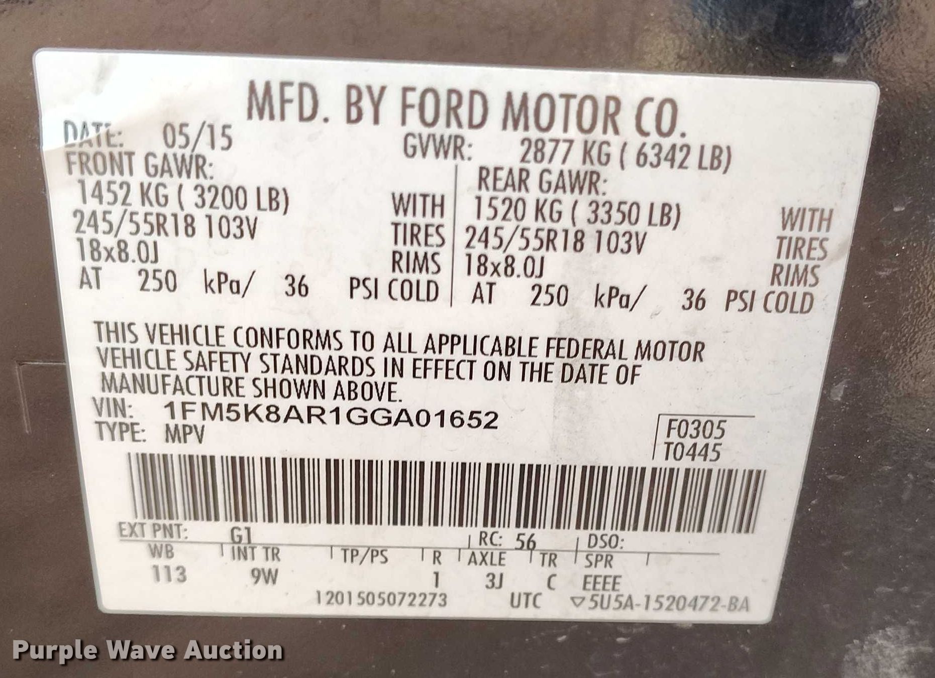 2016 Ford Explorer Police Interceptor SUV. Miles: 121,251 on odometer, Hours: 15,222 on meter, VIN: 1FM5K8AR1GGA01652. Engine Displacement: 3.7L V6 DOHC, Fuel type: Gas. Transmission Automatic, All wheel drive. Interior AC, Heat, Seat: Power driver, Heated mirrors, Power windows, Power locks, Cruise control, Backup camera. Tires Size: 245/55R18. Notes Dash warning indicator: Check engine, TPMS, Hail damage. Colorado title. Title distribution may be delayed up to 14 days from verification of funds. City of Manitou. Manitou Springs, CO 80829