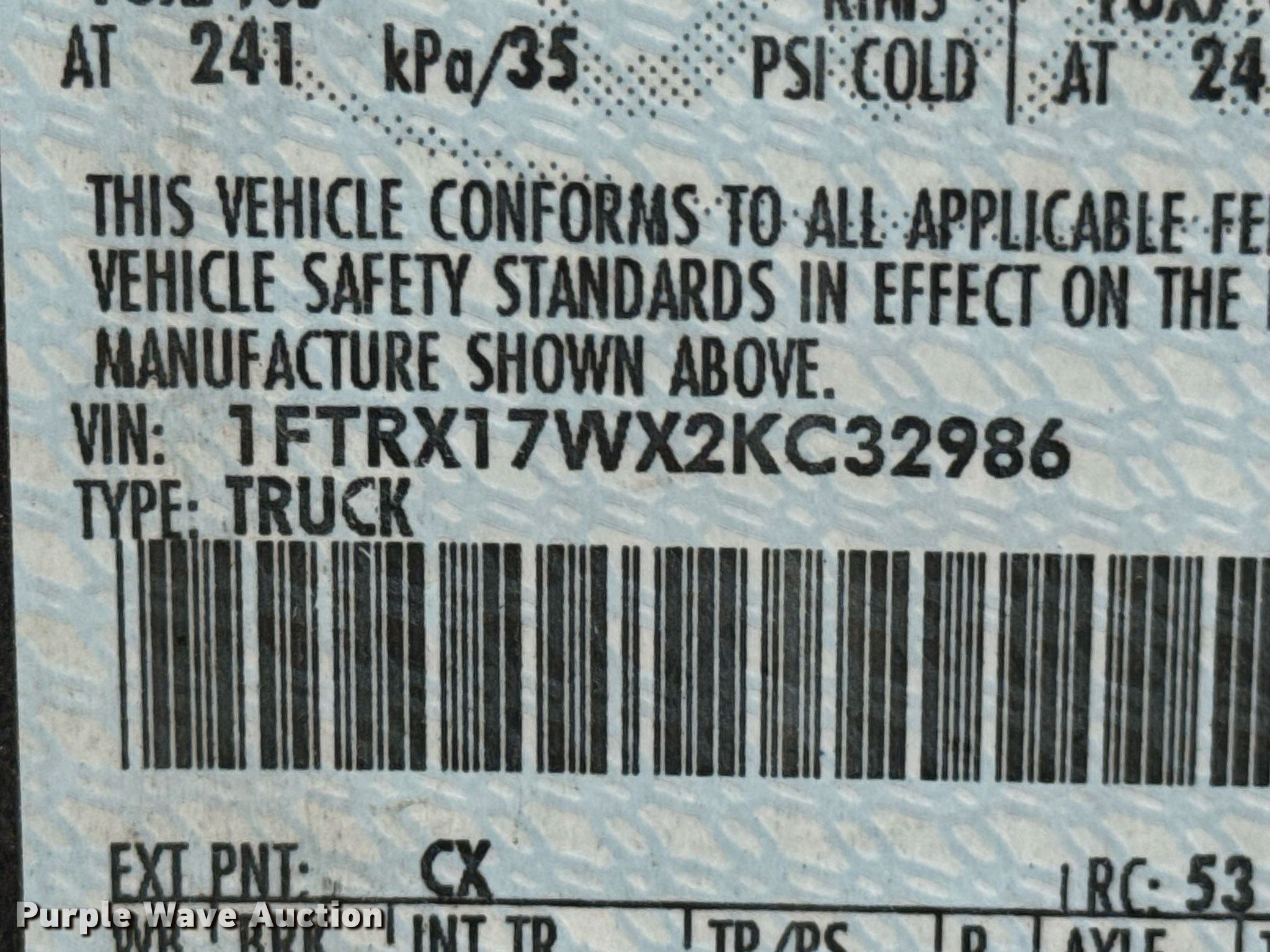 2002 Ford F150 SuperCab pickup truck. Miles: Unknown, VIN: 1FTRX17WX2KC32986. Engine Displacement: 4.6L V8 SOHC, Cylinders: 8, Fuel type: Gas. Transmission Automatic. Interior AC, Heat, Power windows, Power locks, Cruise control. Tires Size: 235/70R16. Notes Additional tires and wheels included, Dead battery, Oil leak, Non-operational odometer. Kansas title. Title distribution may be delayed up to 14 days from verification of funds. City of Pittsburg. Pittsburg, KS 66762
