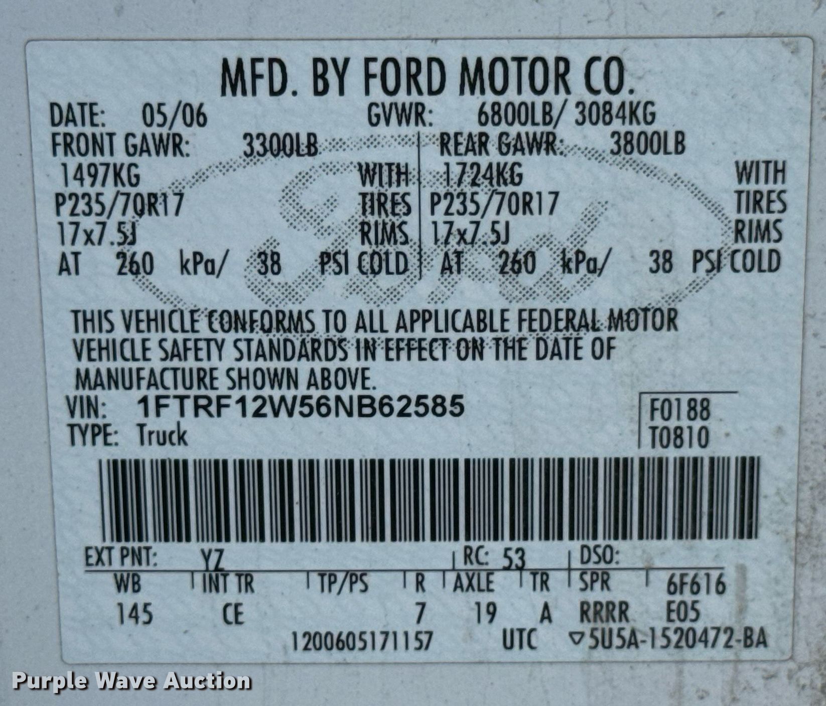 Purple Wave is selling a used 1/2 Ton Pickup or Van in Kansas. This item is a 2006 Ford F150 pickup truck with the following: Miles: 156,627 on odometer, VIN: 1FTRF12W56NB62585