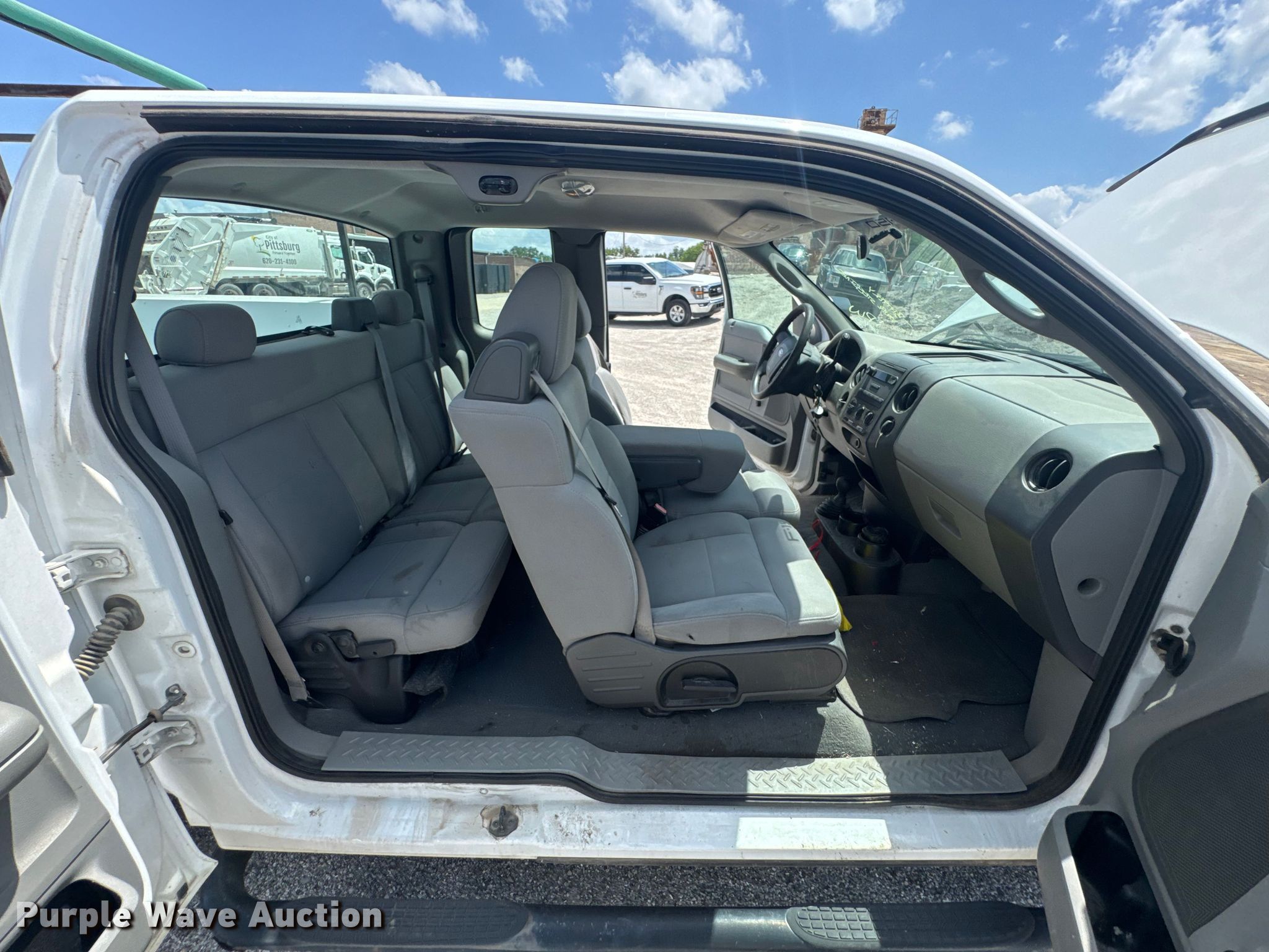 2006 Ford F150 SuperCab utility bed pickup truck. Miles: 113,927 on odometer, VIN: 1FTRX14W26KD05729. Engine Displacement: 4.6L V8 SOHC, Cylinders: 8, Fuel type: Gas. Transmission Automatic, Four wheel drive. Interior AC, Heat, Cruise control. Features Bed Utility bed, Length: 7' 6", Width: 80". Tires Size: 235/75R17. Notes Dead battery. Kansas title. Title distribution may be delayed up to 14 days from verification of funds. City of Pittsburg. Pittsburg, KS 66762
