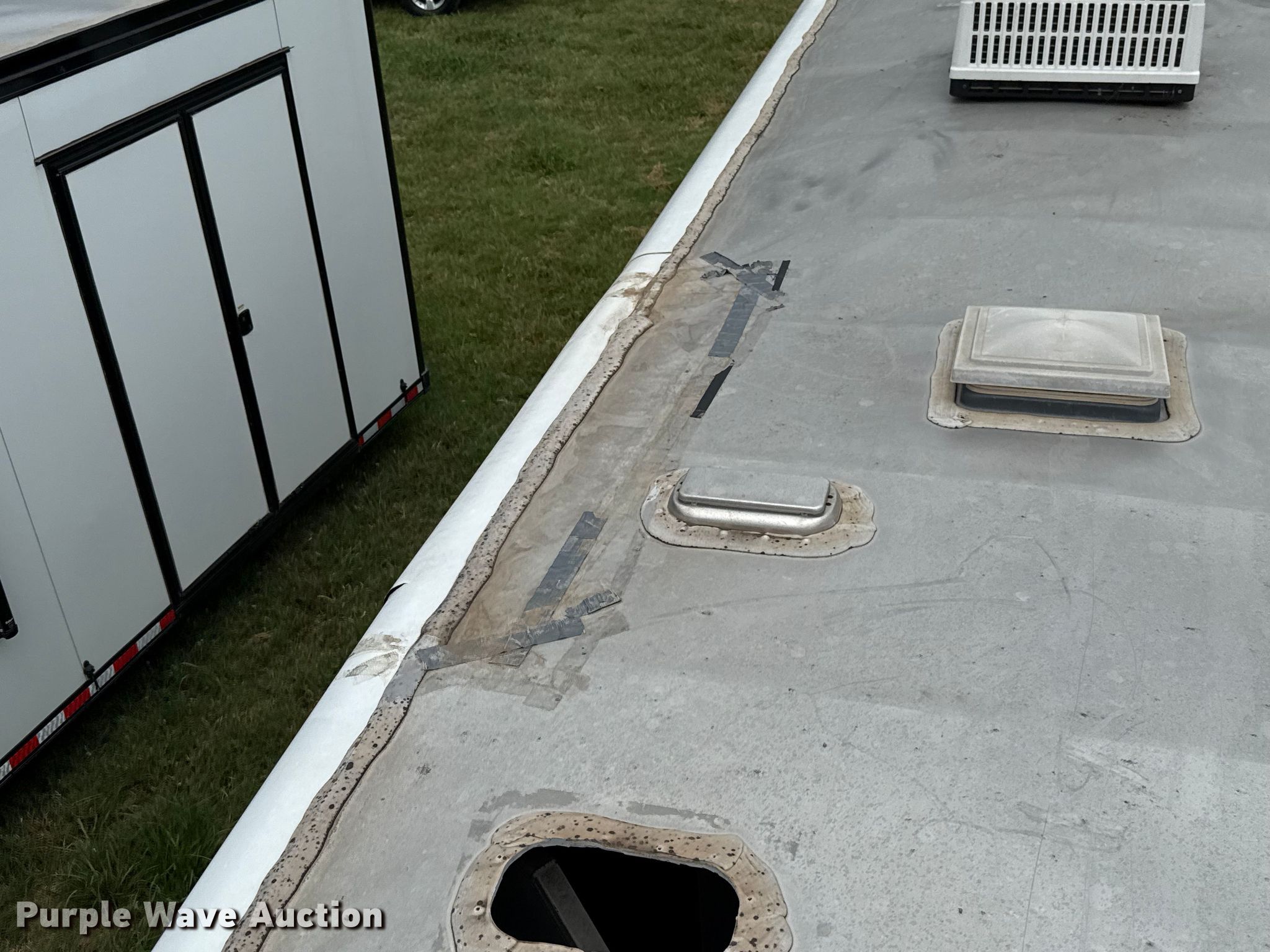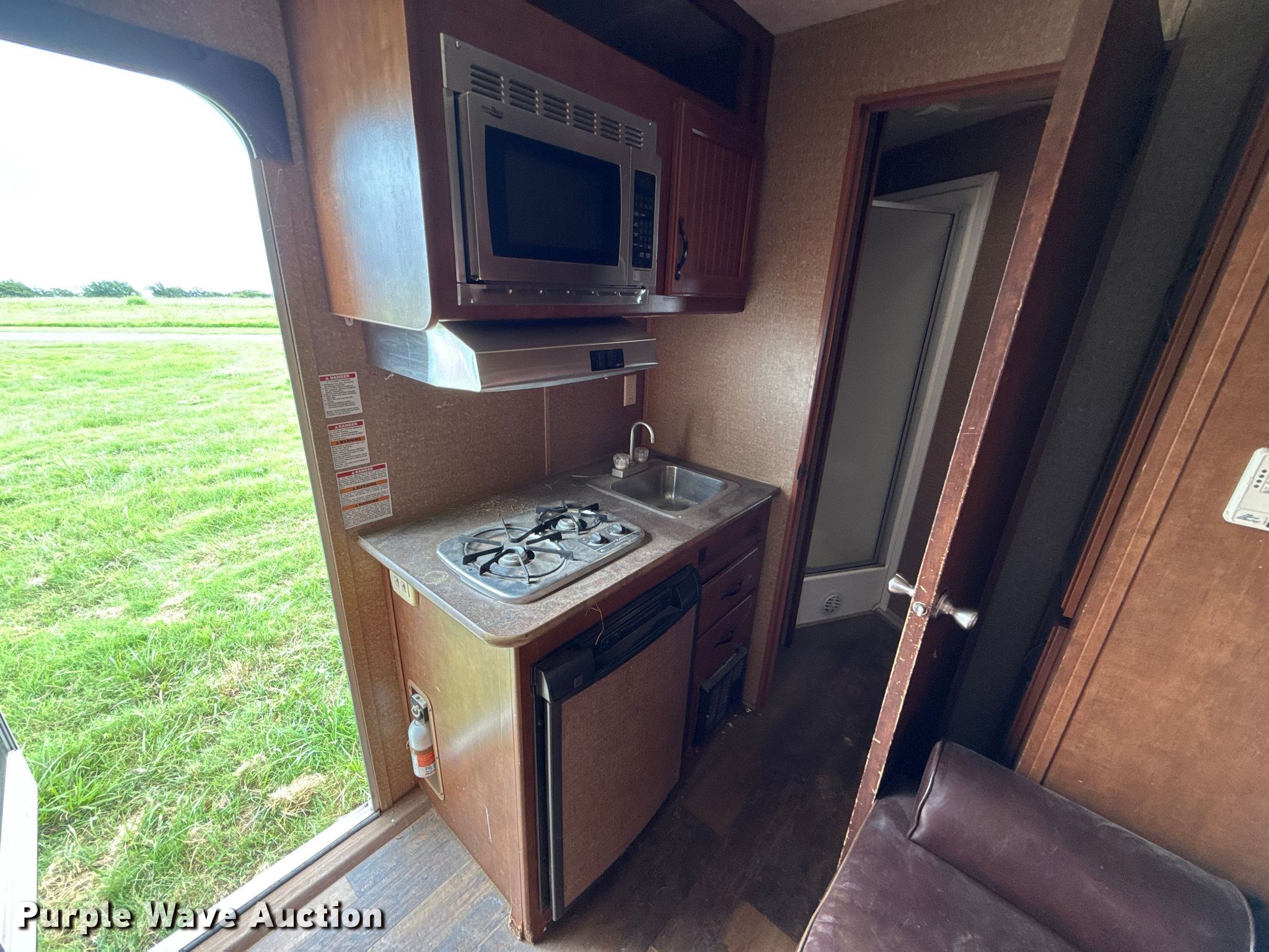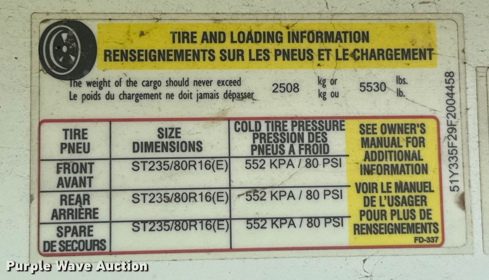 2015 Bison Coach Trail Hand livestock trailer. VIN: 51Y335F29F2004458, Insurance salvage unit claim #: 5-809490. Dimensions Overall Length: 34', Width: 102", Side height: 94". Interior Kitchen: Sink, Refrigerator, Microwave, Oven, Stove: Propane, Living room: Pull out couch, Bathroom, Beds: 1, Sound system, AC units: 1. Features Horse capacity: 4, Center gates: 3. Chassis Landing gear: Single, Suspension: Torsion, Axles: Tandem, GVWR: 14,013 lbs, GAWR: 6,000 lbs. Tires Size: ST235/80R16. Notes Collision damage. Oklahoma title. Title distribution may be delayed up to 14 days from verification of funds. Oklahoma Farm Bureau Insurance. Seminole, OK 74868