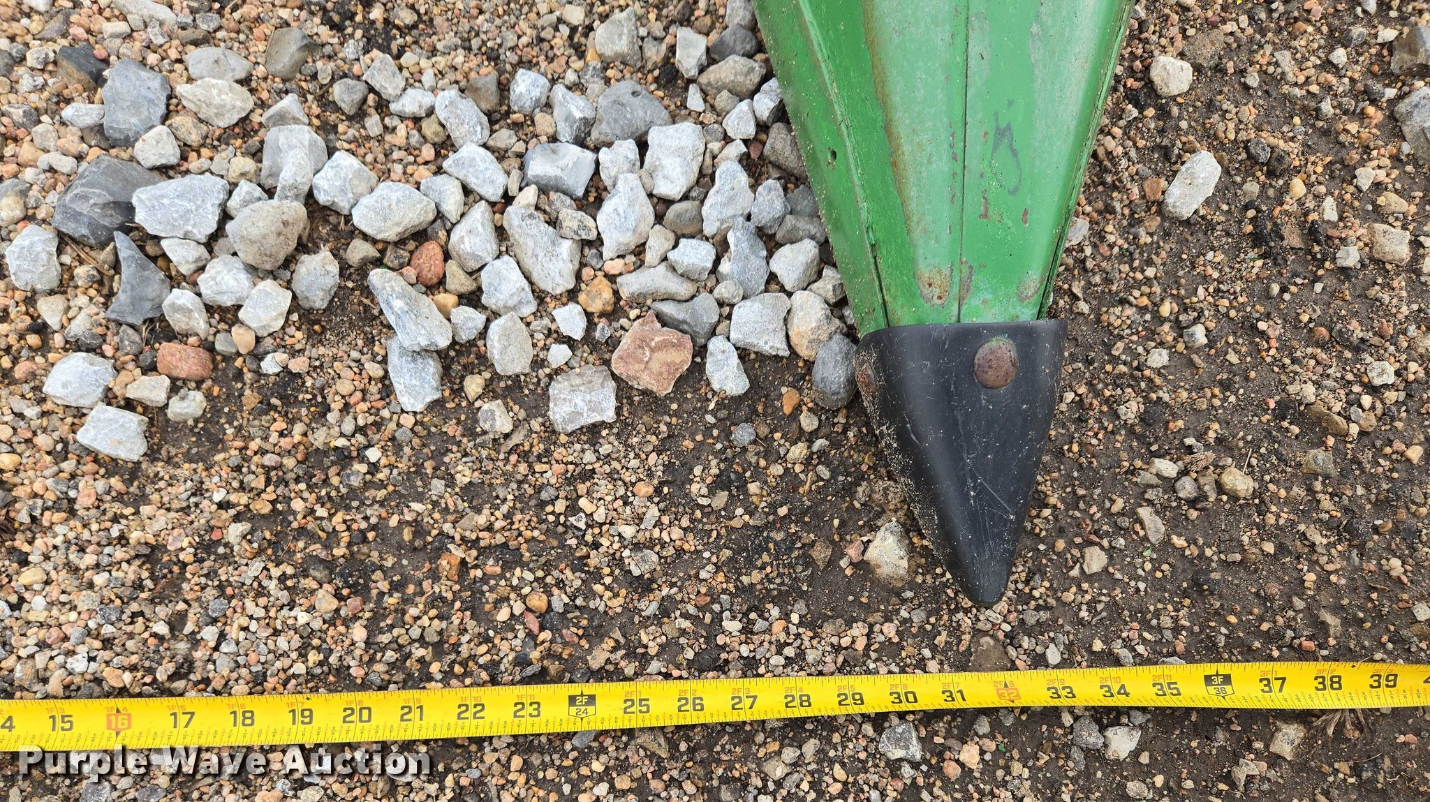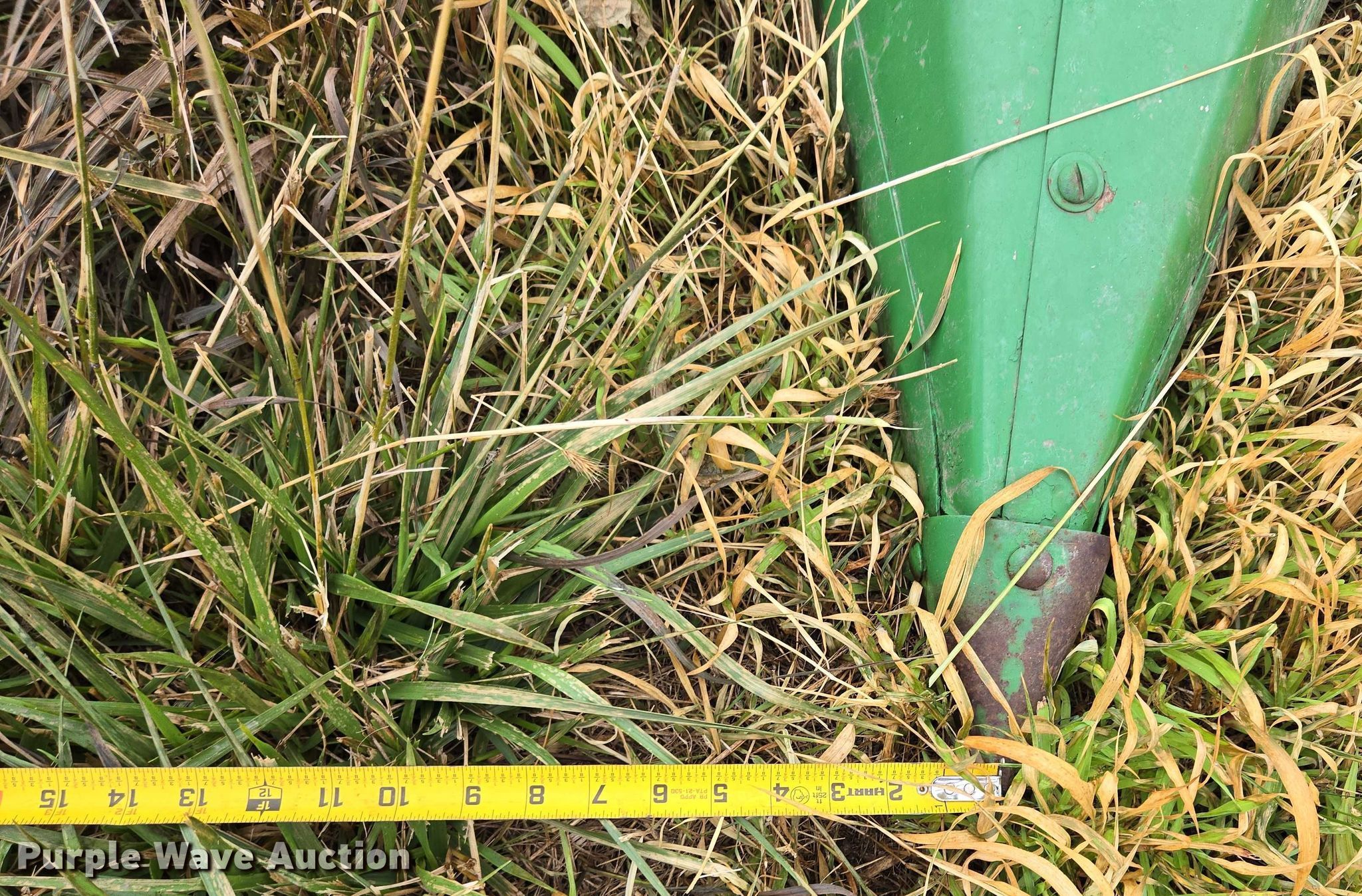 (2) John Deere corn heads. John Deere 843. Serial: 386843. Features Rows: 8, Row spacing: 30", Deck plates Calmer beveled, Drivelines: Dual. Notes Calmer slow down gathering chain kit, Wedge Kit. John Deere 643 Features Rows: 6, Row spacing: 30", Width: 15'. Notes Parts may be missing. Crouse Farms. Chester, NE 68327