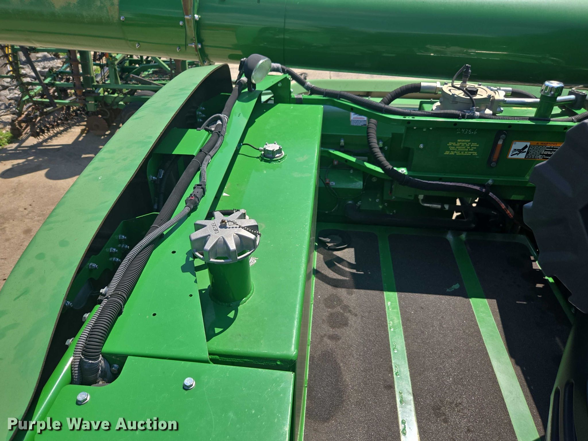 2019 John Deere S780 RWA combine. Engine hours: 2,946 on meter, Separator hours: 2,076 on meter, Serial: 1H0S780SHKT805783. Engine John Deere, Displacement: 13.5L, Cylinders: 6, Fuel type: Diesel. Transmission Hydrostatic. Chassis Differential lock. Operators station AC, Heat. Features Single point header coupler, Feederhouse: Lateral tilt, Variable speed, Reverser, Concaves: Round, Small wire, Chaff spreader, Straw chopper, Power tailboard, Bin: Power folding bin, Unloading auger length: 25'. Tires Front: 520/80R42, Rear: 750/65R26, Duals. Notes Additional concaves included, Front left tire leaks. TriGreen Equipment. Hendersonville, TN 37075