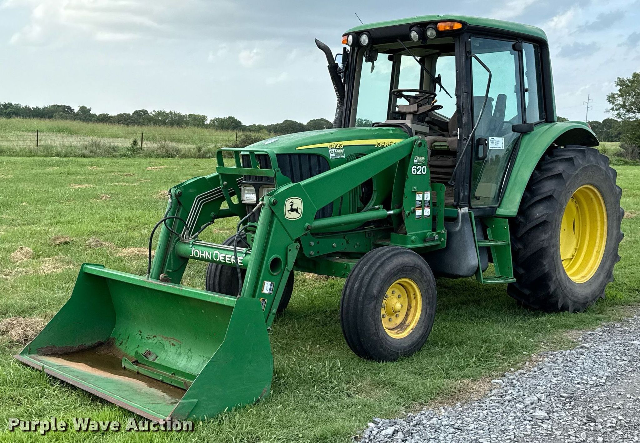 Purple Wave is selling a used Tractor in Oklahoma. This item is a 2005 John Deere 6420 tractor with the following: Hours: 3,632 on meter, Serial: L06420H469621, Insurance salvage unit claim #: 5-809742