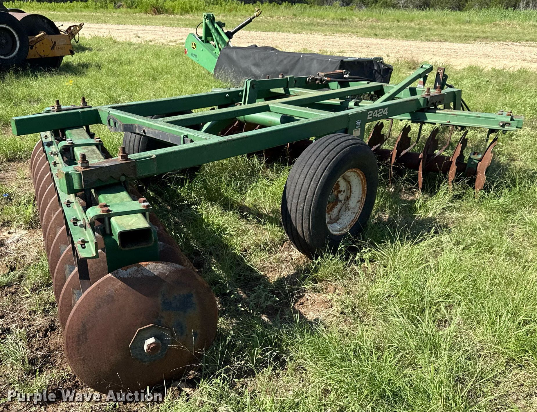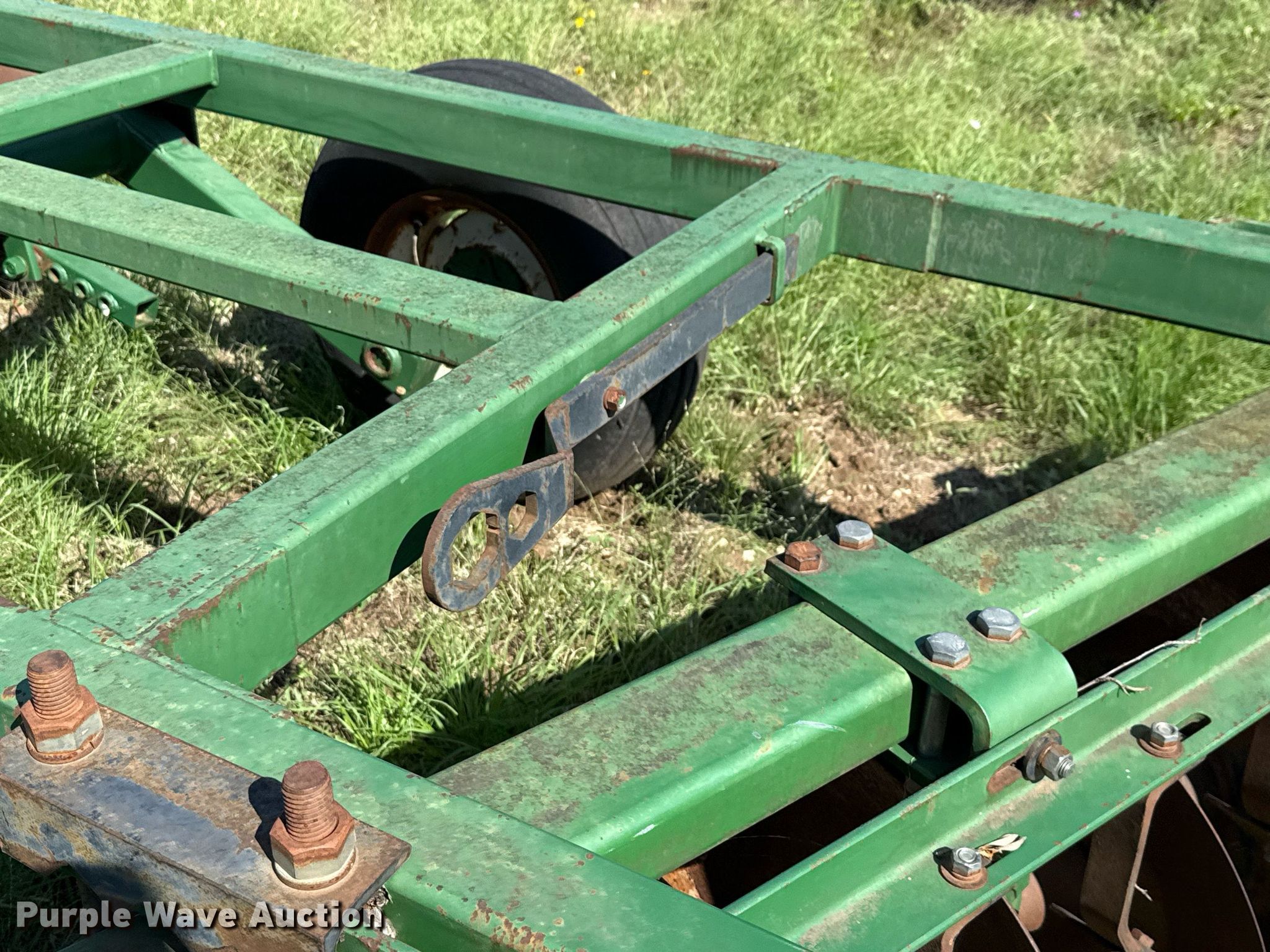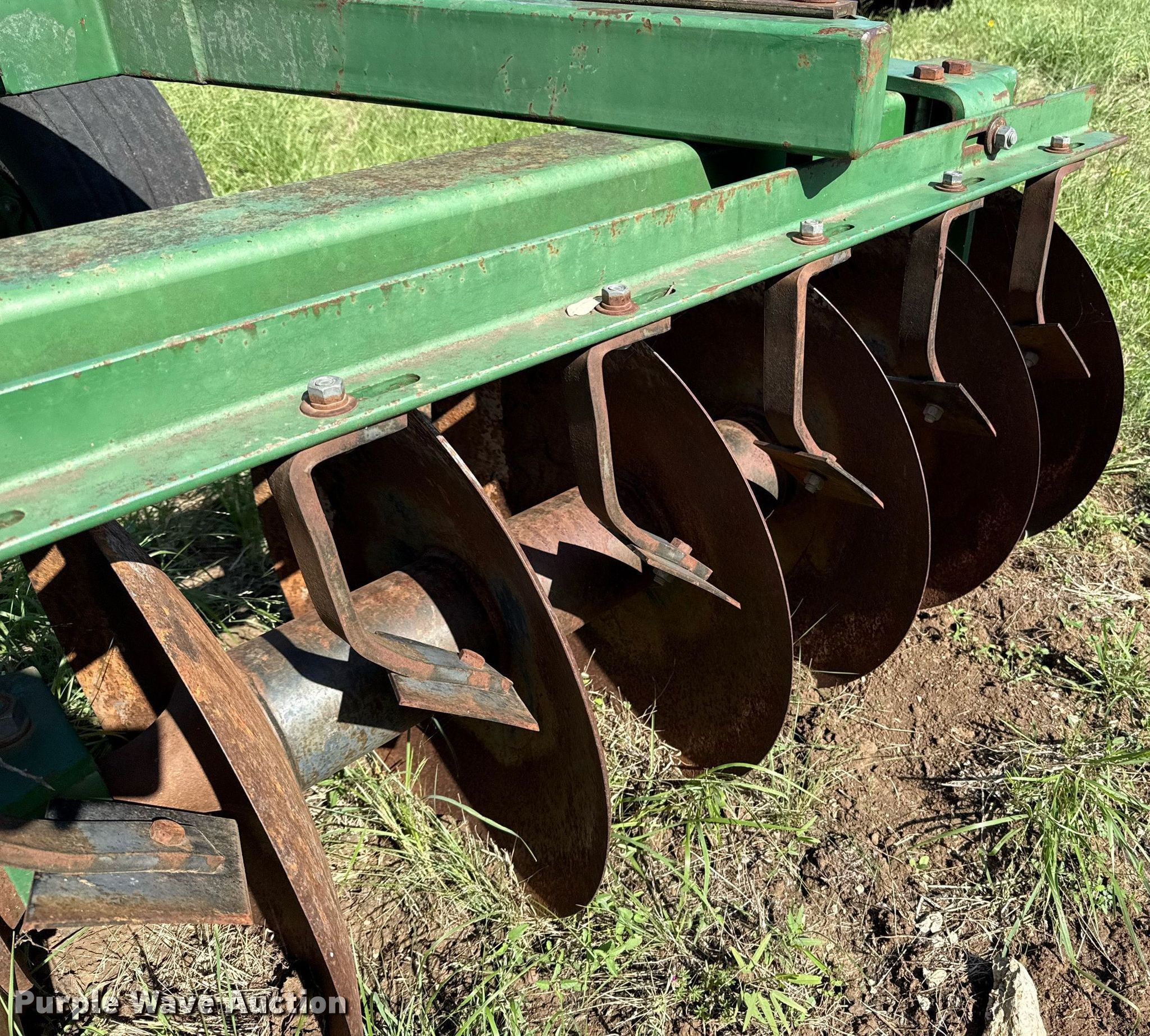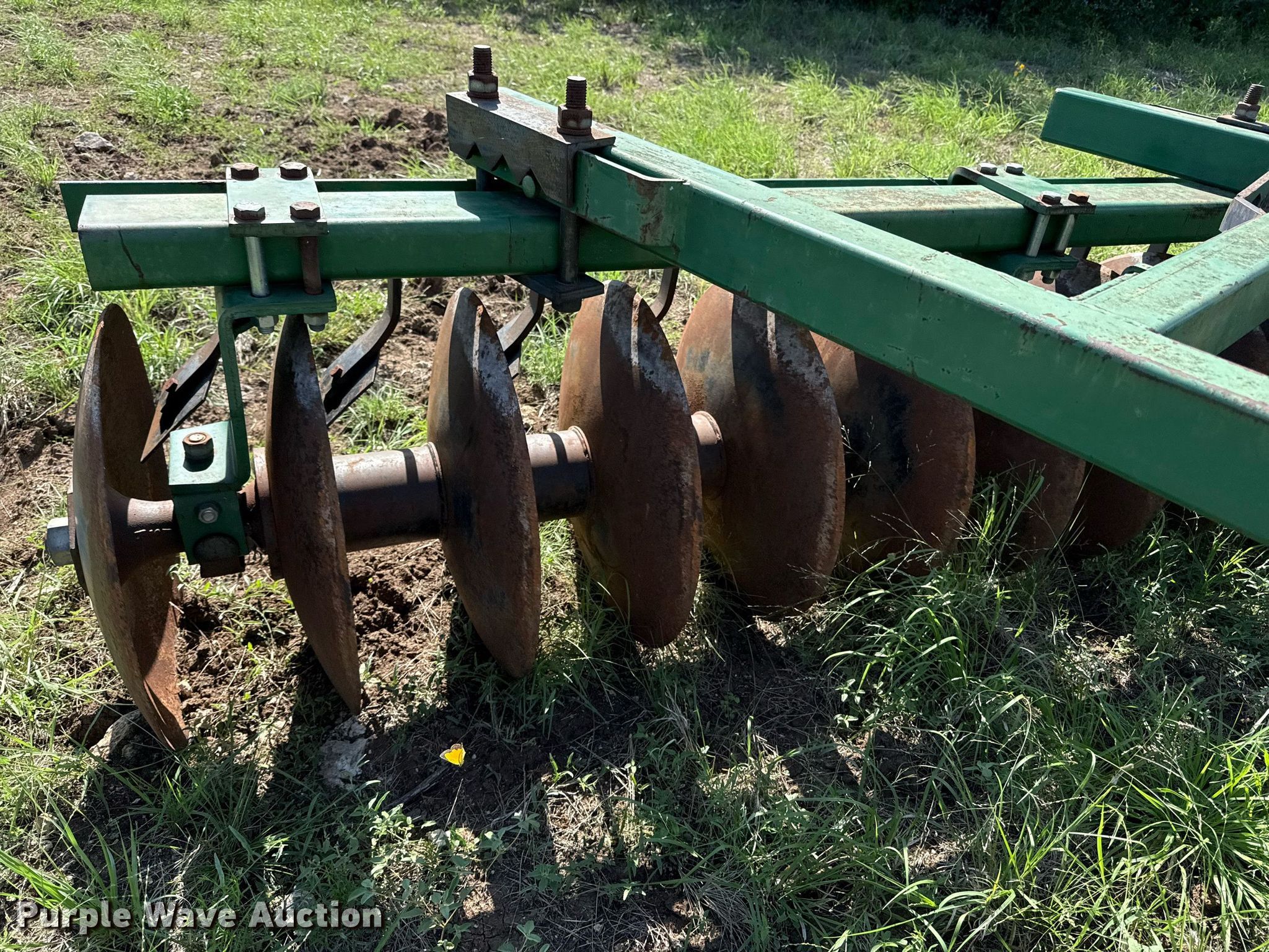 off-set disk. Overall width: 9'. Features Front blades Diameter: 23", Spacing: 8", Rear blades Diameter: 24", Spacing: 9", Disk scrapers, Operation Hydraulic lift. Tires Tire size: 11L-15.5L. Notes Spring broken, Non-operational unit. Hico, TX 76457