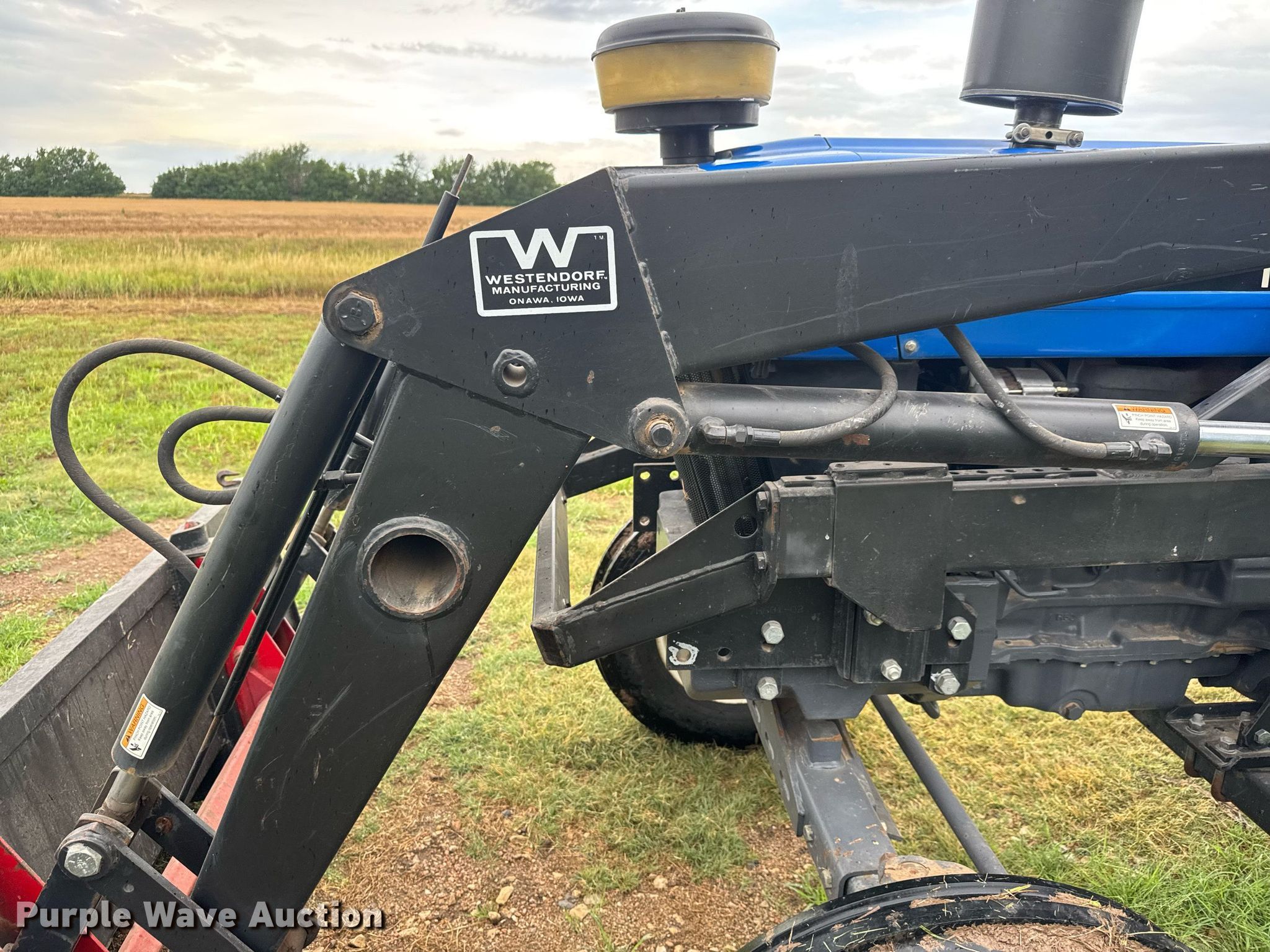 2000 New Holland 5610S tractor. Hours: 1,113 on meter, Serial: 313324M. Engine New Holland 450/NE, Serial: 917486, Displacement: 5.0L, Cylinders: 4, Fuel type: Diesel. Transmission Manual, 8F - 2R, Differential lock. Features PTO: 540, Three point Top link, Hydraulic remote sets Rear: 2, Loader Westendorf, Controls: Two-lever, Bucket Width: 85".. Tires Front: 7.50-16, Rear: 16.9-30, Calcium filled. Geneseo, KS 67444