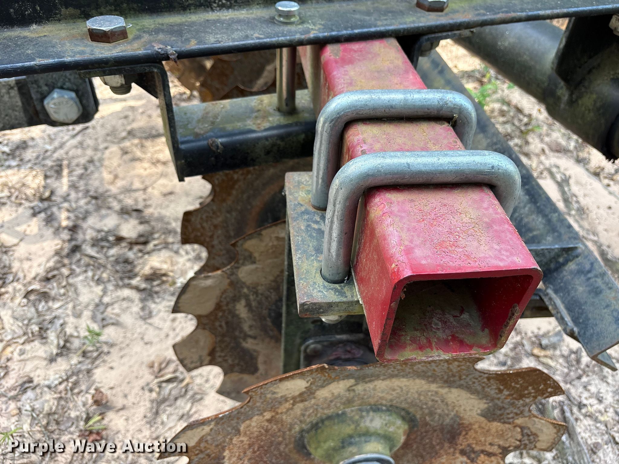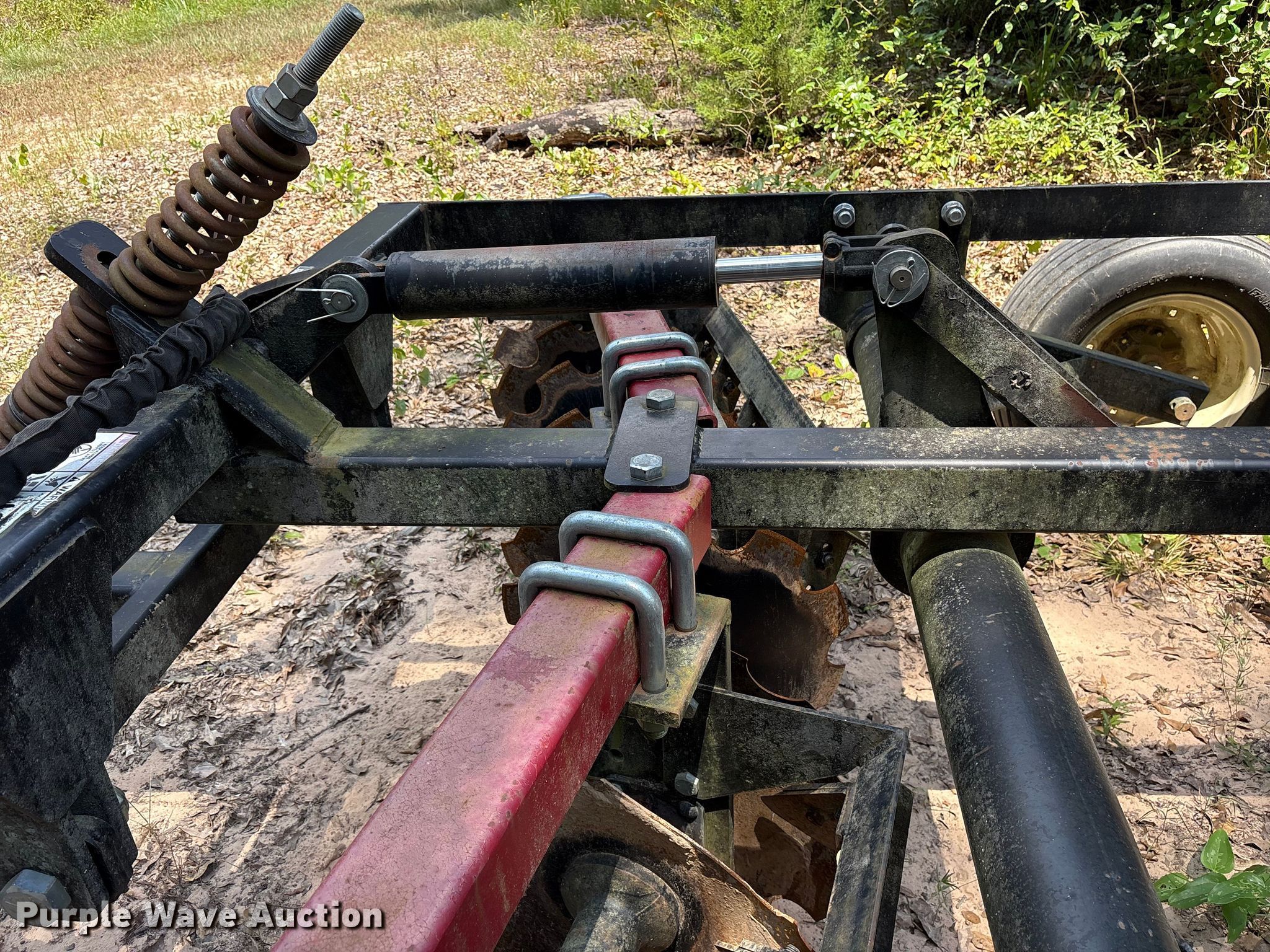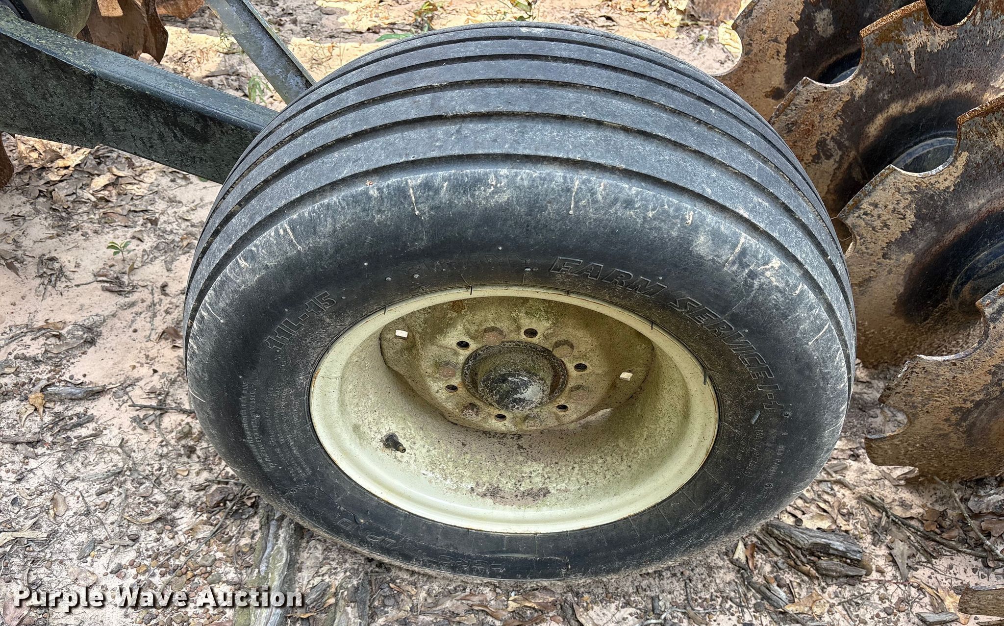Armstrong Ag tandem disk. Overall width: 10' 6", Serial: 09499. Features Front blades Diameter: 22", Spacing: 9", Rear blades Diameter: 22", Spacing: 9", Disk scrapers, Operation Hydraulic lift, Hitch: Pin. Tires Tire size: 11L-15, Gauge wheels Size: 11L-15. Daingerfield, TX 75638
