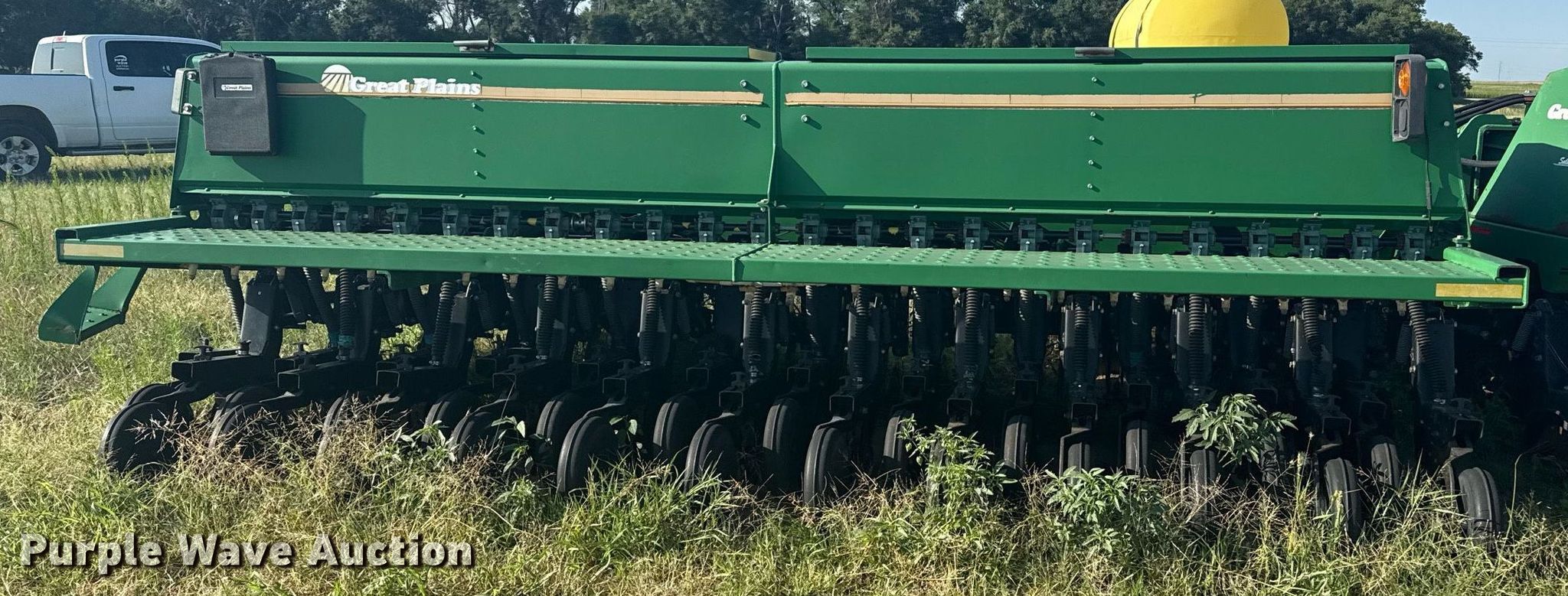 Purple Wave is selling a used Grain Drill or Seeder in Oklahoma. This item is a 2006 Great Plains 2N-3010 grain drill with the following: Width: 30', Row units: 48, Row spacing: 7", Serial: GP-D2263, Insurance salvage unit claim #: 5-801102