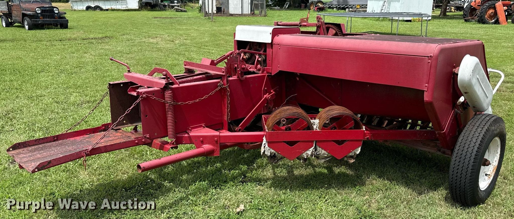 Purple Wave is selling a used Square Baler in Kansas. This item is a International Harvester 47 small square baler with the following: PTO: 540, Pickup width: 36", Small square bale size: 16" x 18", Wire tie