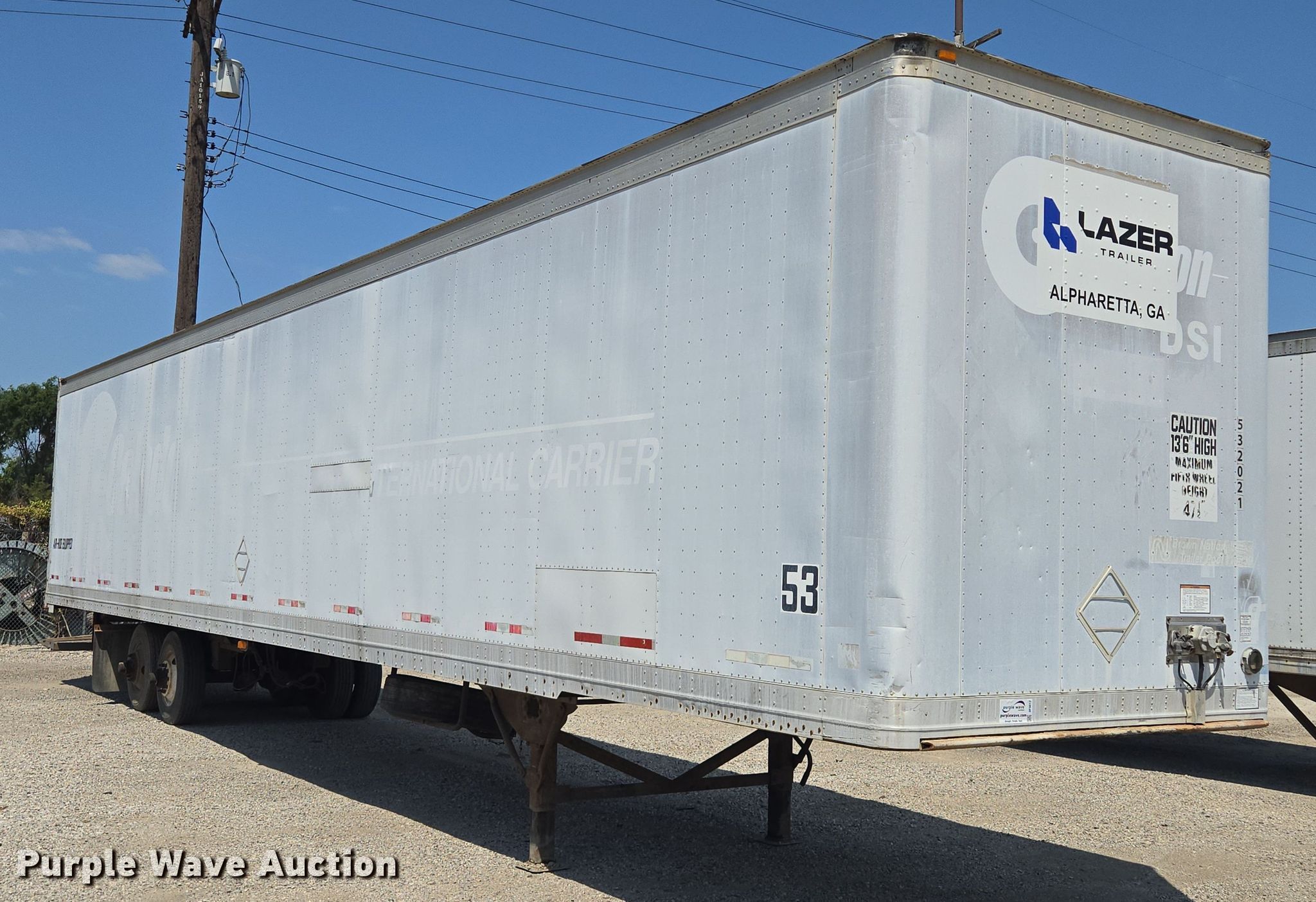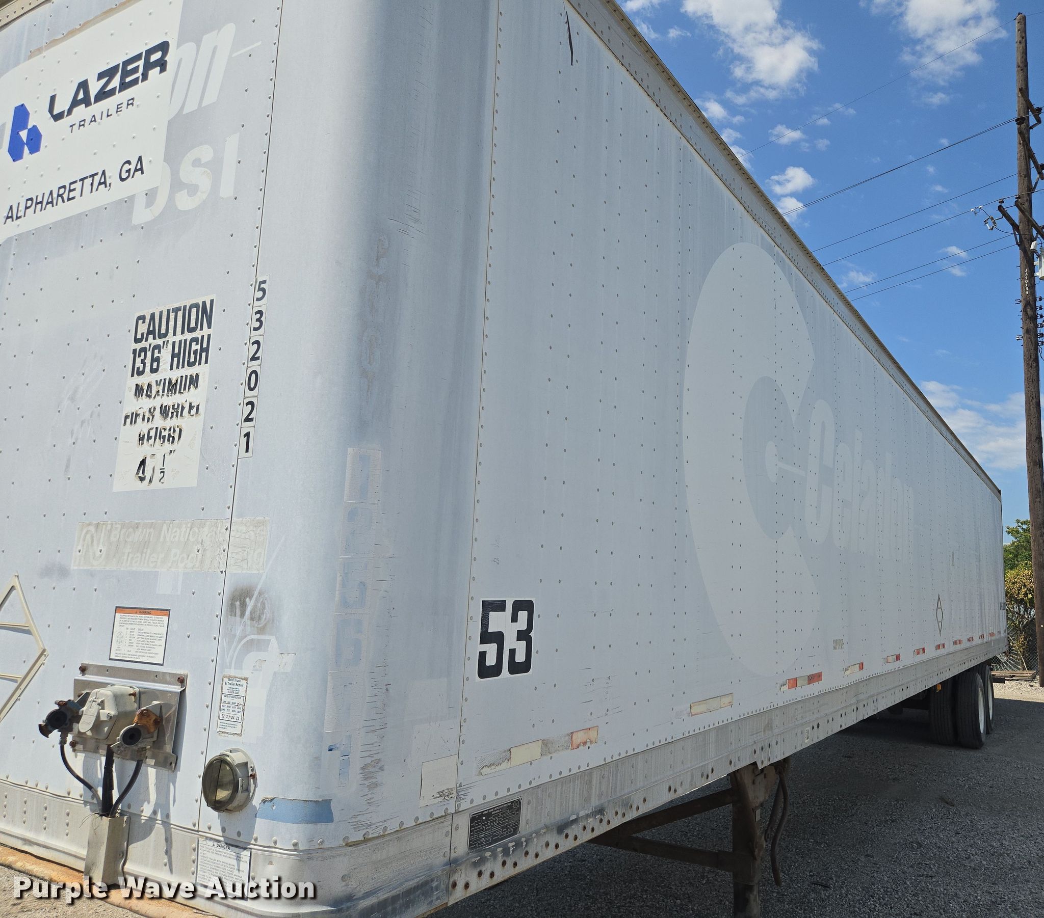 2000 Great Dane dry van trailer. VIN: 1PNV532B7YH227021, Unit #: 532021. Dimensions Overall Length: 53', Width: 102". Features Deck type: Wood, E-track rail system. Chassis Landing gear: Dual, Suspension: Air, Brakes: Air, Axles: Tandem Sliding, GVWR: 68,000 lbs. Tires Steel wheels, Size: 295/75R22.5. Notes Passenger outside duals missing. Georgia title. Title distribution may be delayed up to 14 days from verification of funds. Lazer Trailers. 3414 Gardner Avenue. Kansas City, MO 64120