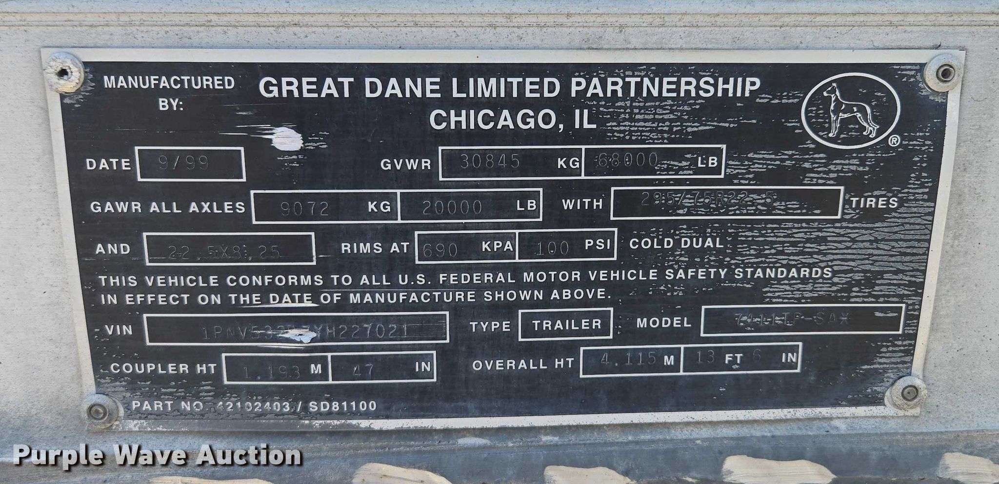 Purple Wave is selling a used Dry Van Trailer in Missouri. This item is a 2000 Great Dane dry van trailer with the following: VIN: 1PNV532B7YH227021, Unit #: 532021