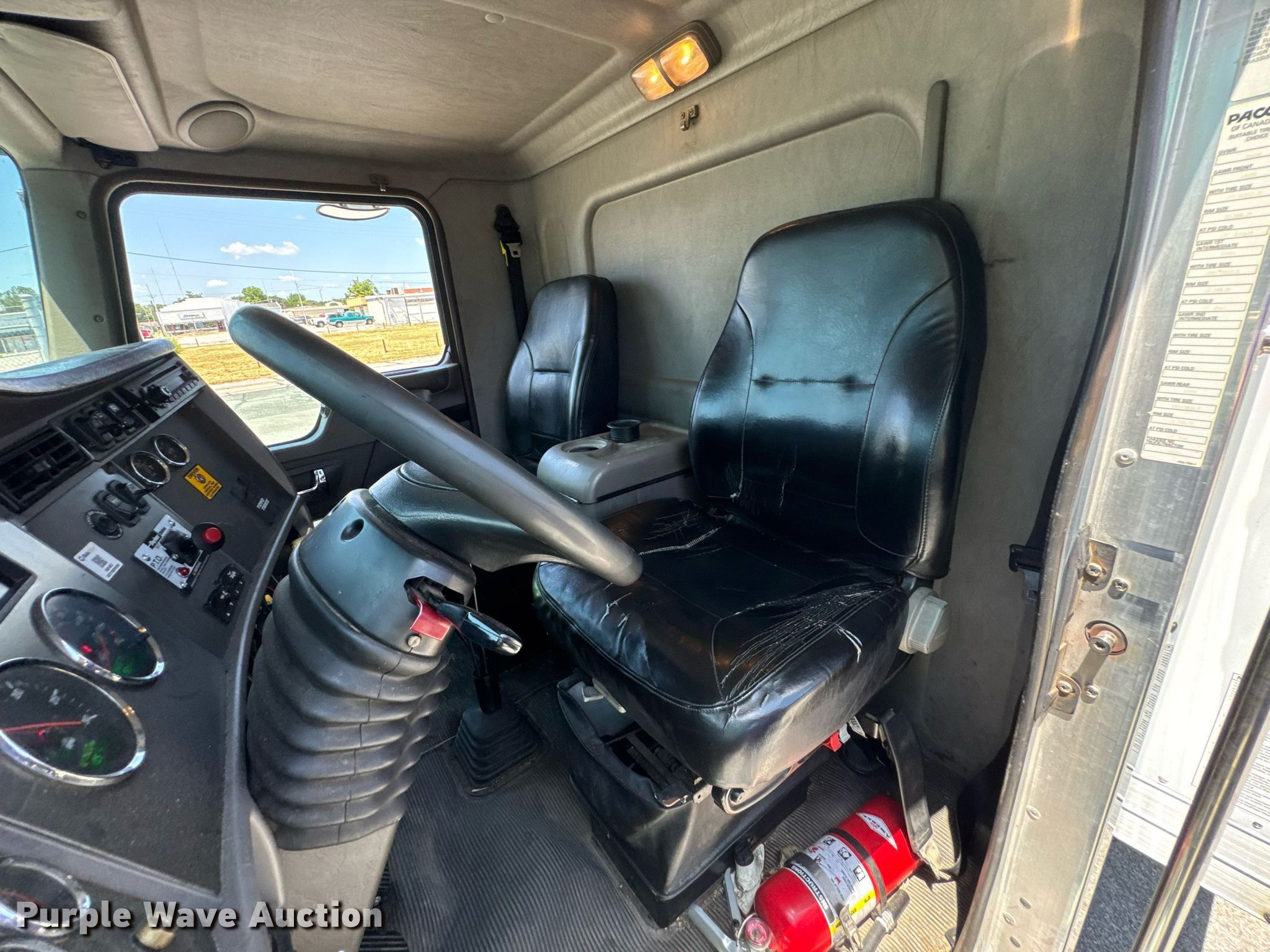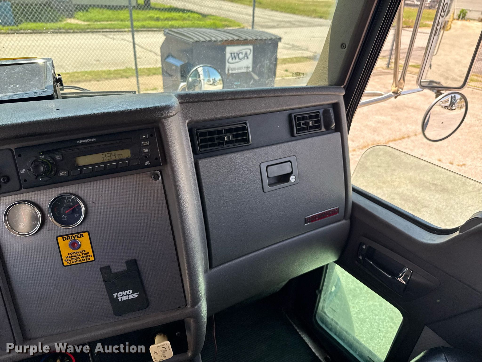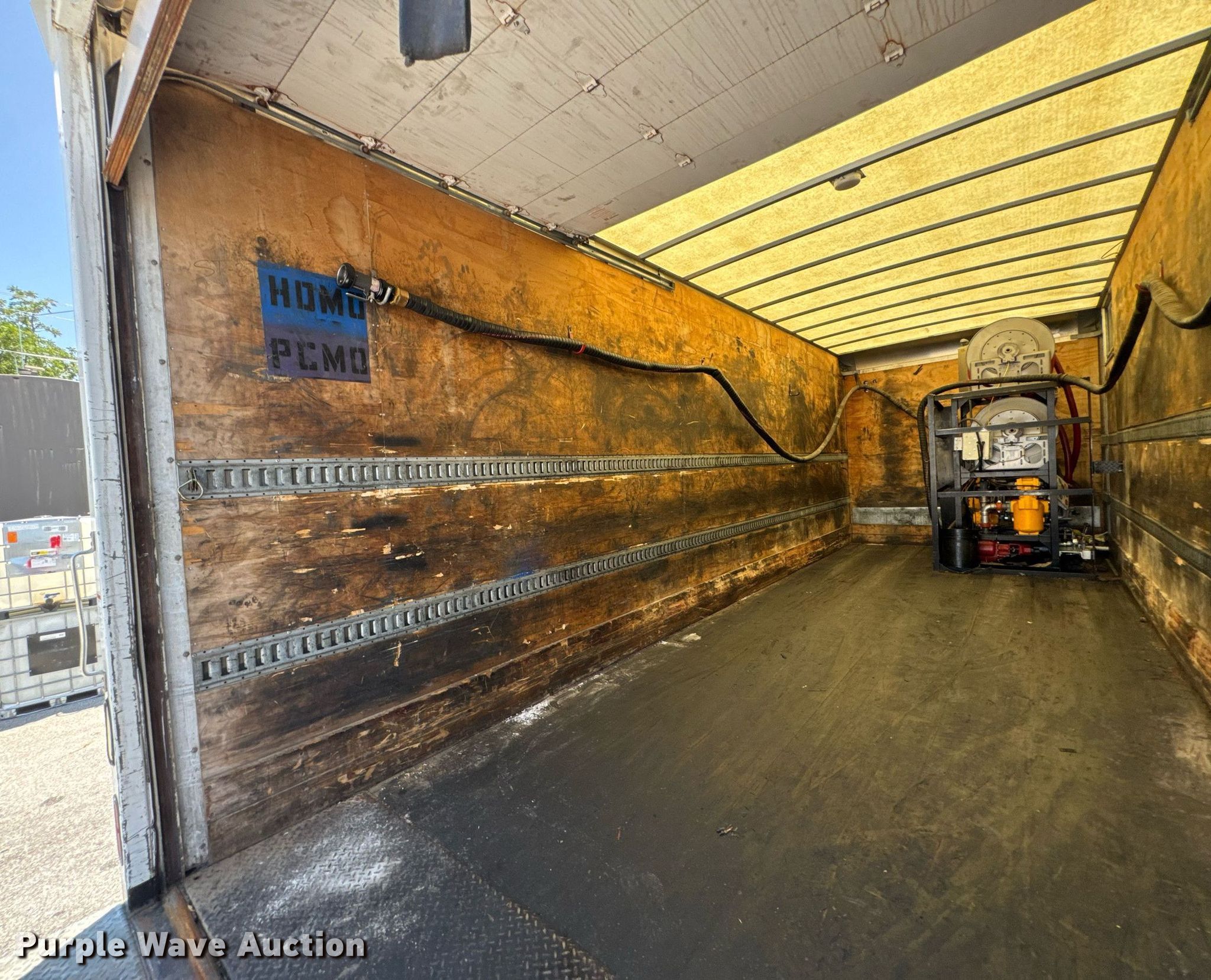 2013 Kenworth T370 box truck. Miles: 352,279 on odometer, Hours: 12,142 on meter, VIN: 2NKHLN9XXDM368555. Engine Paccar PX-8, Displacement: 8.3L, Cylinders: 6, Fuel type: Diesel. Transmission Eaton Fuller, Manual, Speed: 9. Chassis Axles: Tandem, Suspension: Air, Brakes: Air, GVWR: 54,600 lbs. Interior AC, Heat, Power windows, Power locks, Cruise control. Features Bed Box bed, Length: 26' 6", Width: 102", Height: 12' 9", E-track rail system, Floor: Wood, End gate lift Maxon, Capacity: 5,000 lbs, PTO, Pump GPM: 100, (2) Hannay hose reels Approx. 75' of 1 1/2" diameter hose, (2) Lectro Count LCR 600 monitors. Tires Front: 295/75R22.5, Rear: 275/80R22.5. Notes GPS and dashcam will be removed prior to auction, Non-operational backup camera, Engine issues Unit must be towed or hauled. Nebraska title. Title distribution may be delayed up to 30 days from verification of funds. Reladyne. Joplin, MO 64801