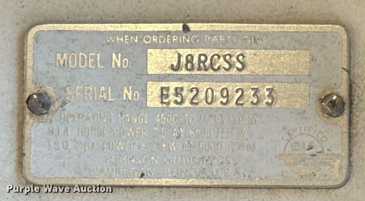 Purple Wave is selling a used Engine in Oklahoma. This item is a Johnson JSRCSS outboard engine with the following: Serial: E5209233