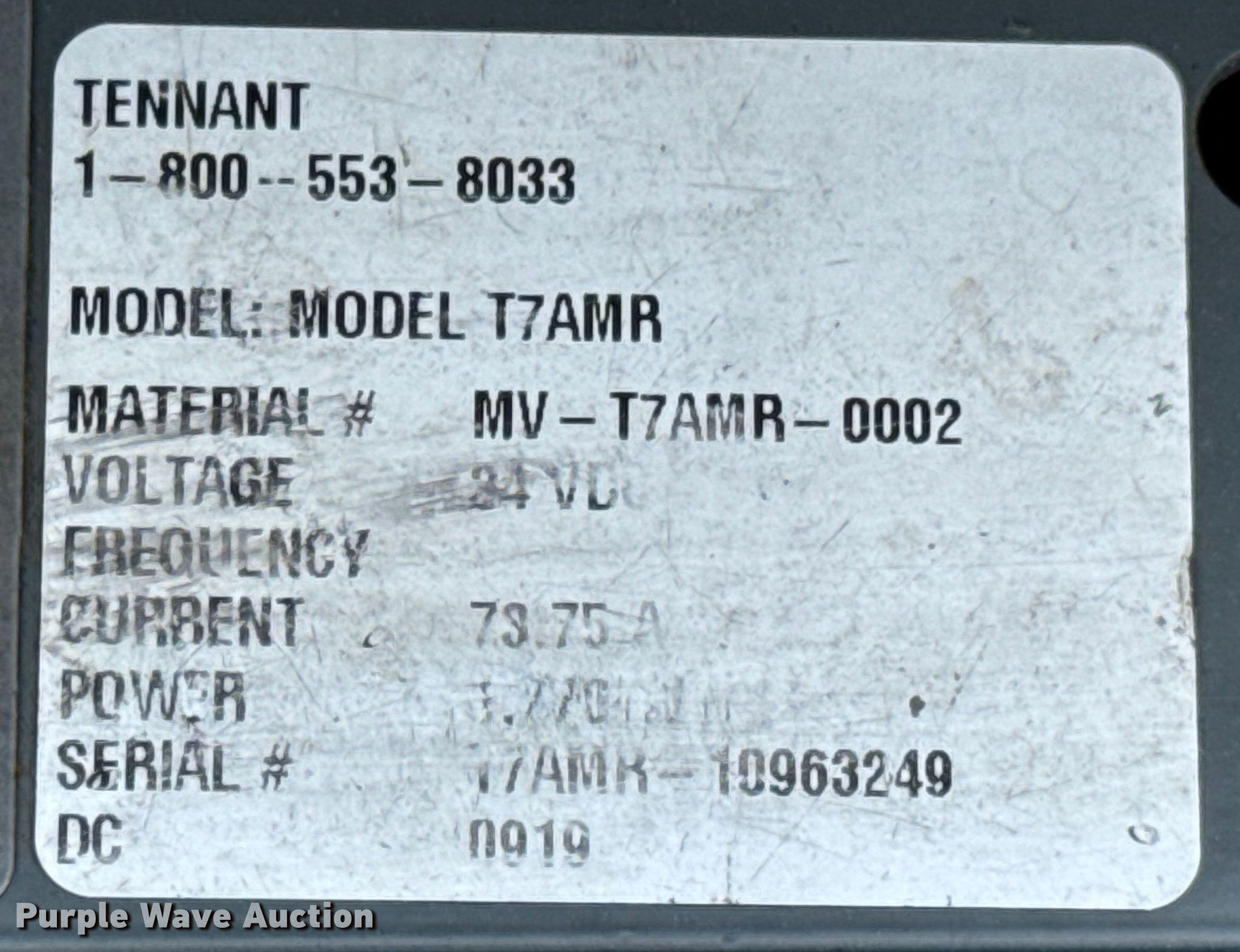 Purple Wave is selling a used All Other Household Items in Oklahoma. This item is a 2019 Tennant T7AMR floor scrubber with the following: Hours: 4,248 on meter, Serial: T7AMR-10963249